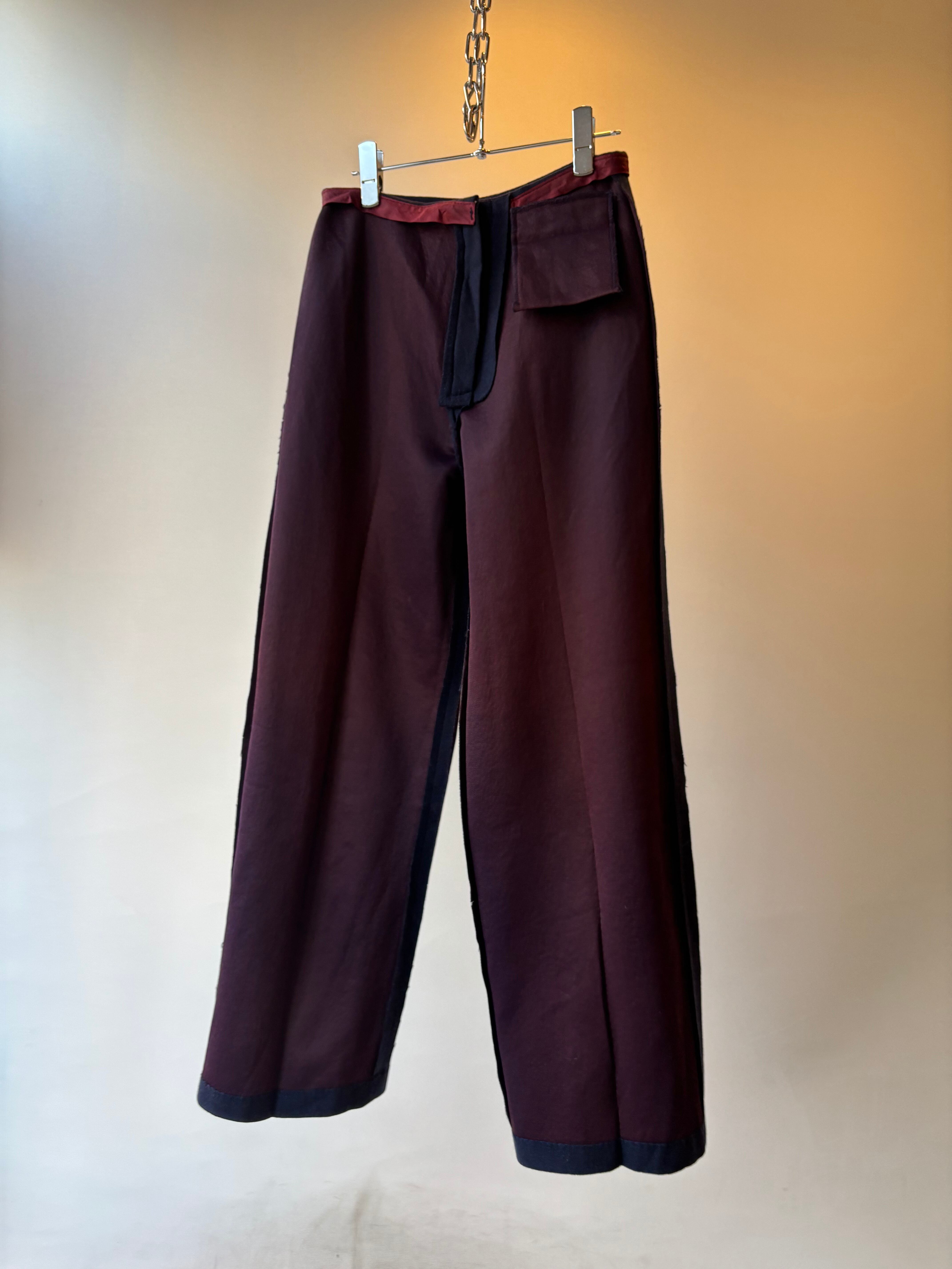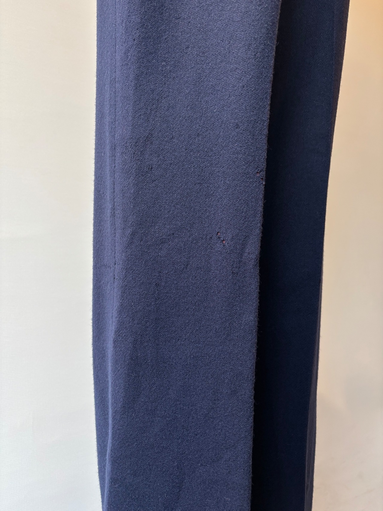 ウエスト・裾・ヒップ、膝裏部分に所々、穴がありますが、貫通までしておらず裏生地のボルドー生地が見えます。