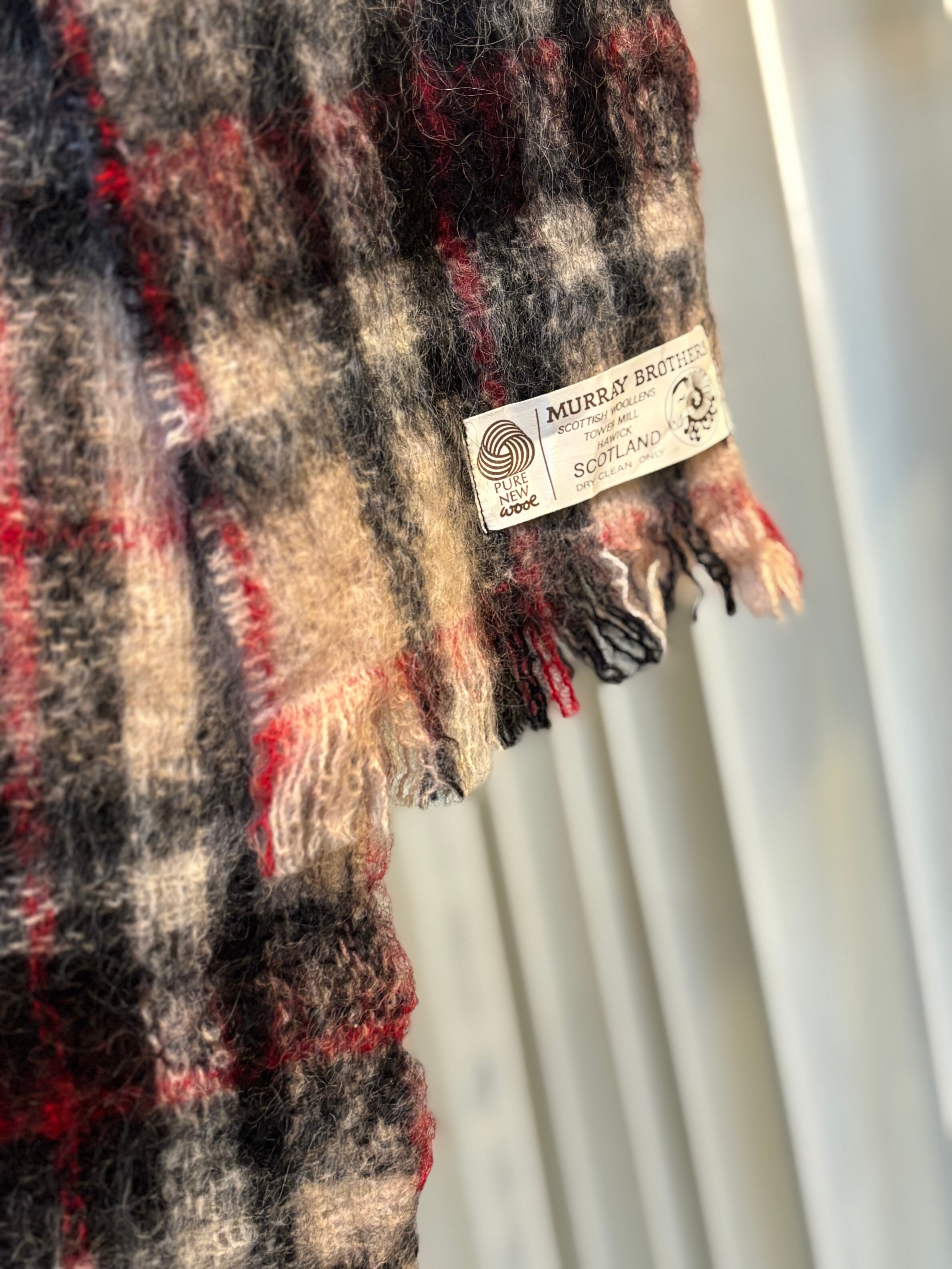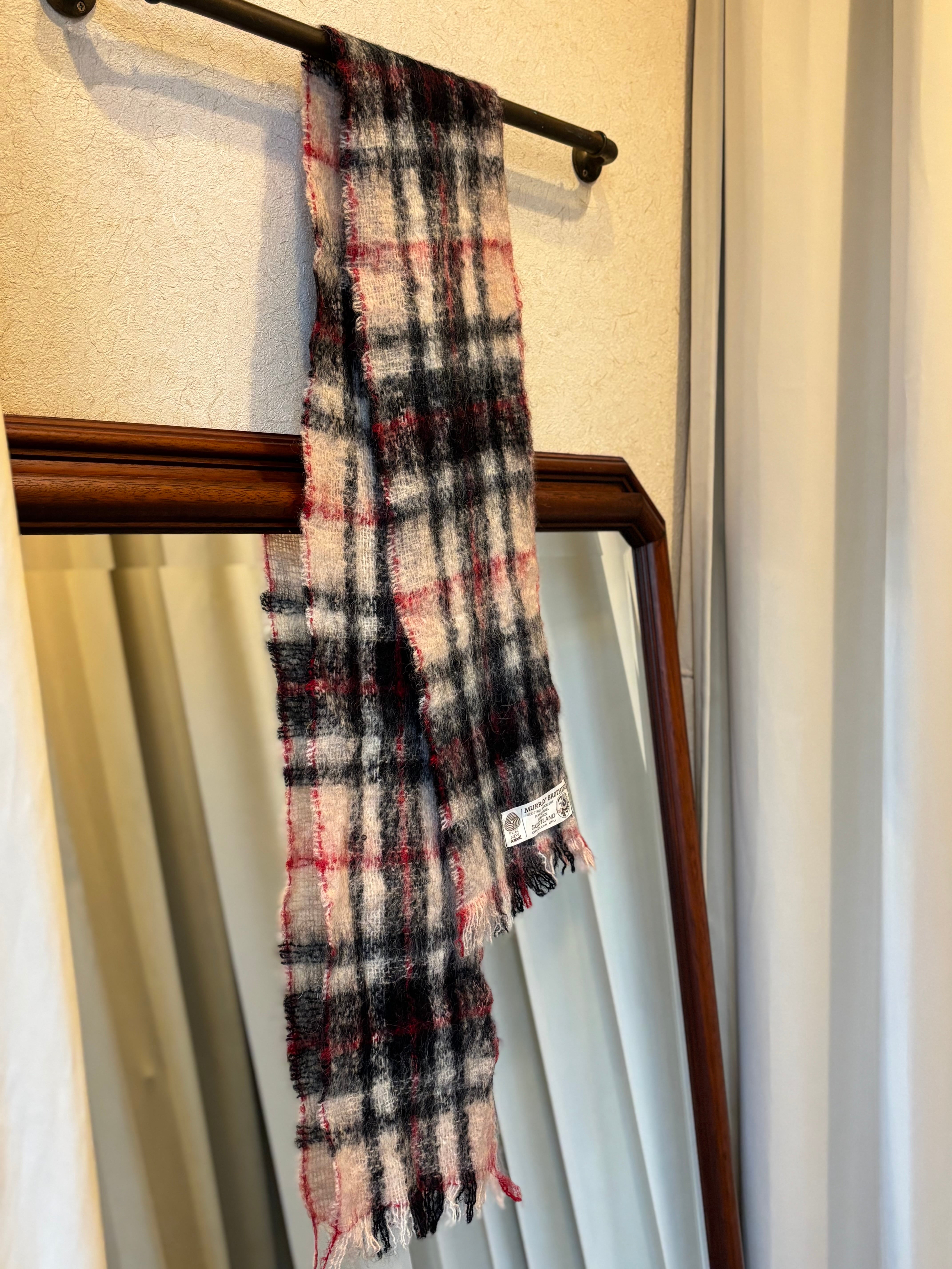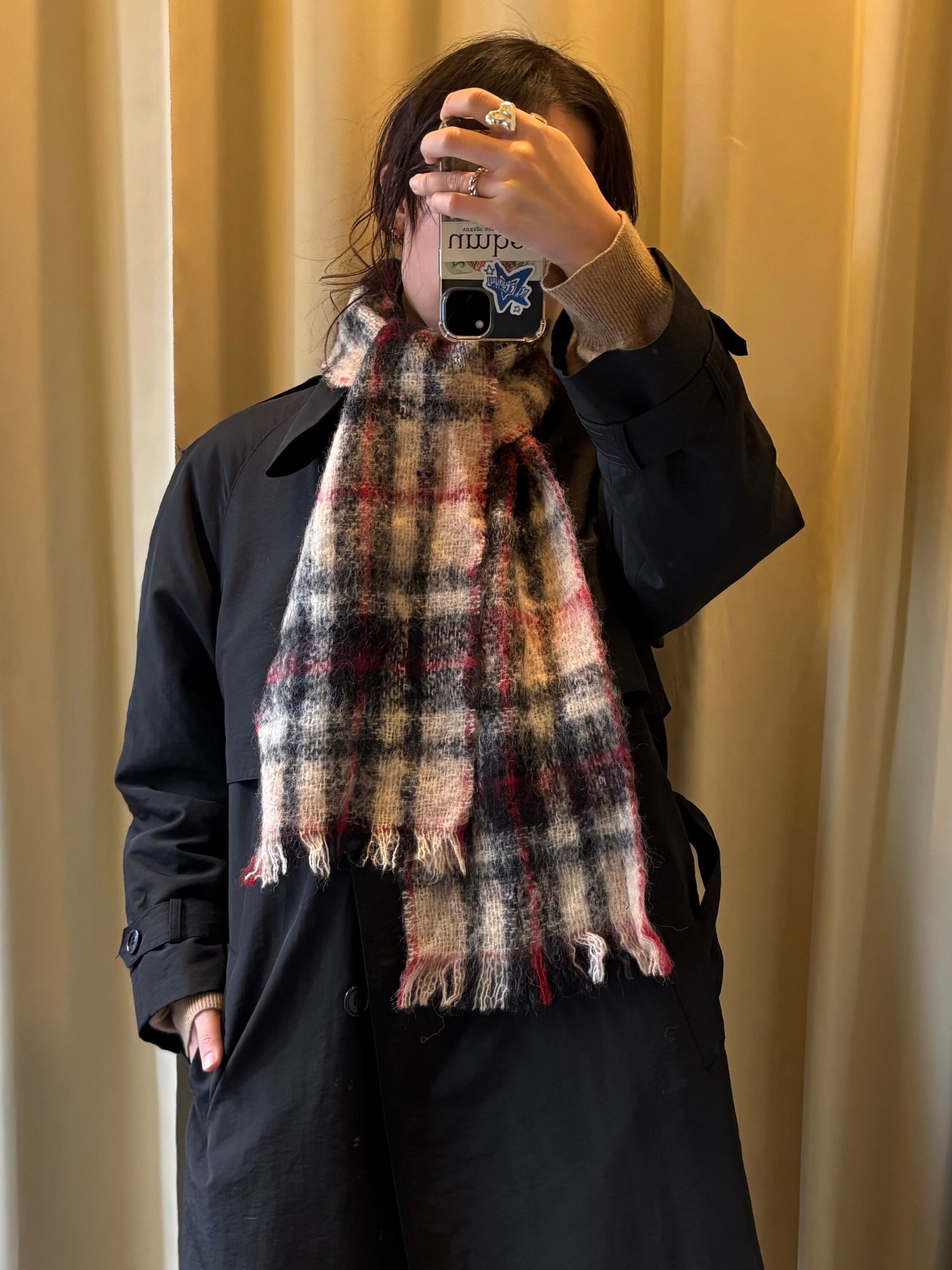 チェック柄×モヘアウールのふわふわとした質感が魅力的な、コンパクトサイズのストール。