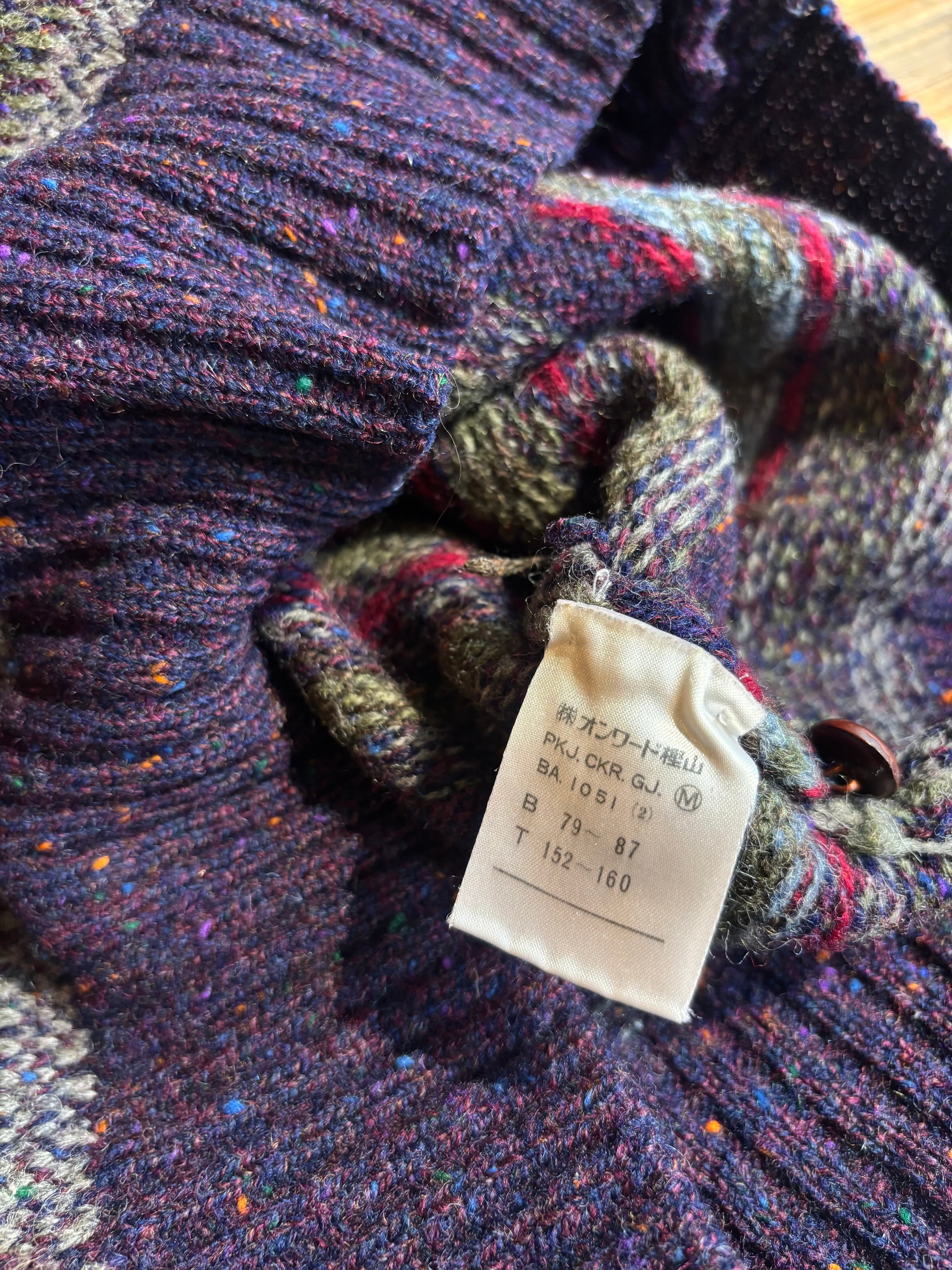 カラフルなネップ糸とマルチボーダーがヴィンテージらしい表情のある1着です。