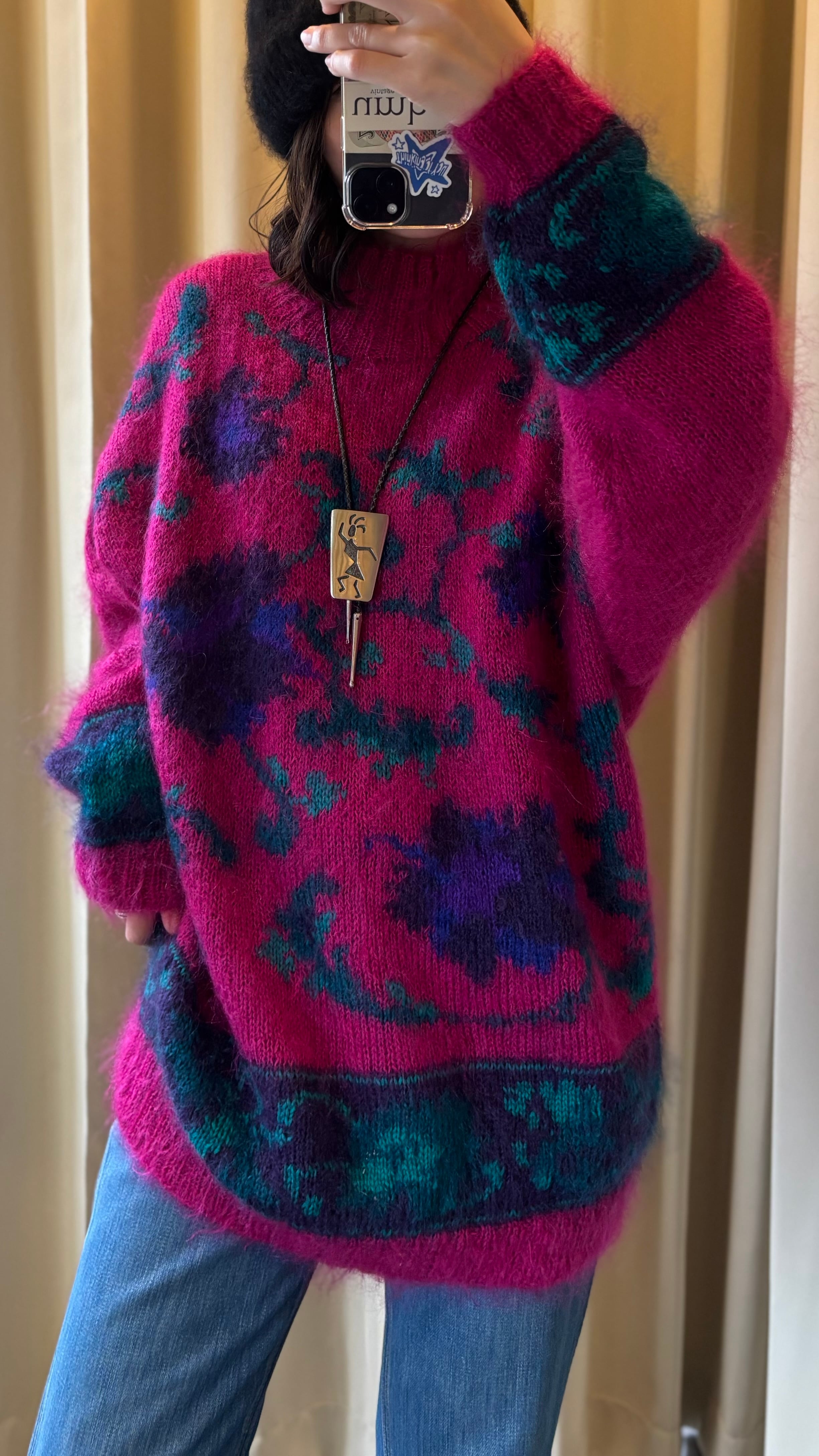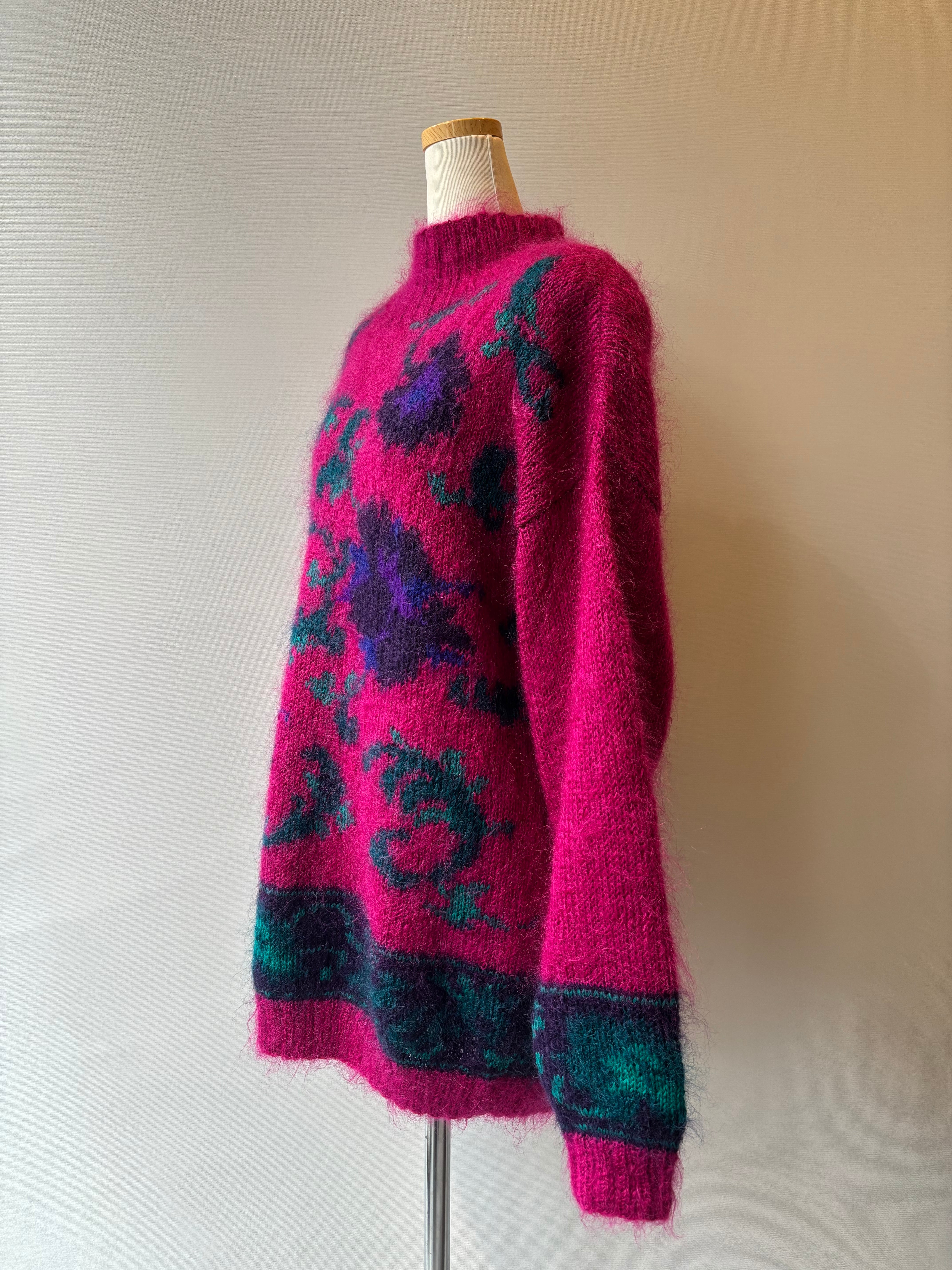 80-90s floral mohair wool knit sweater