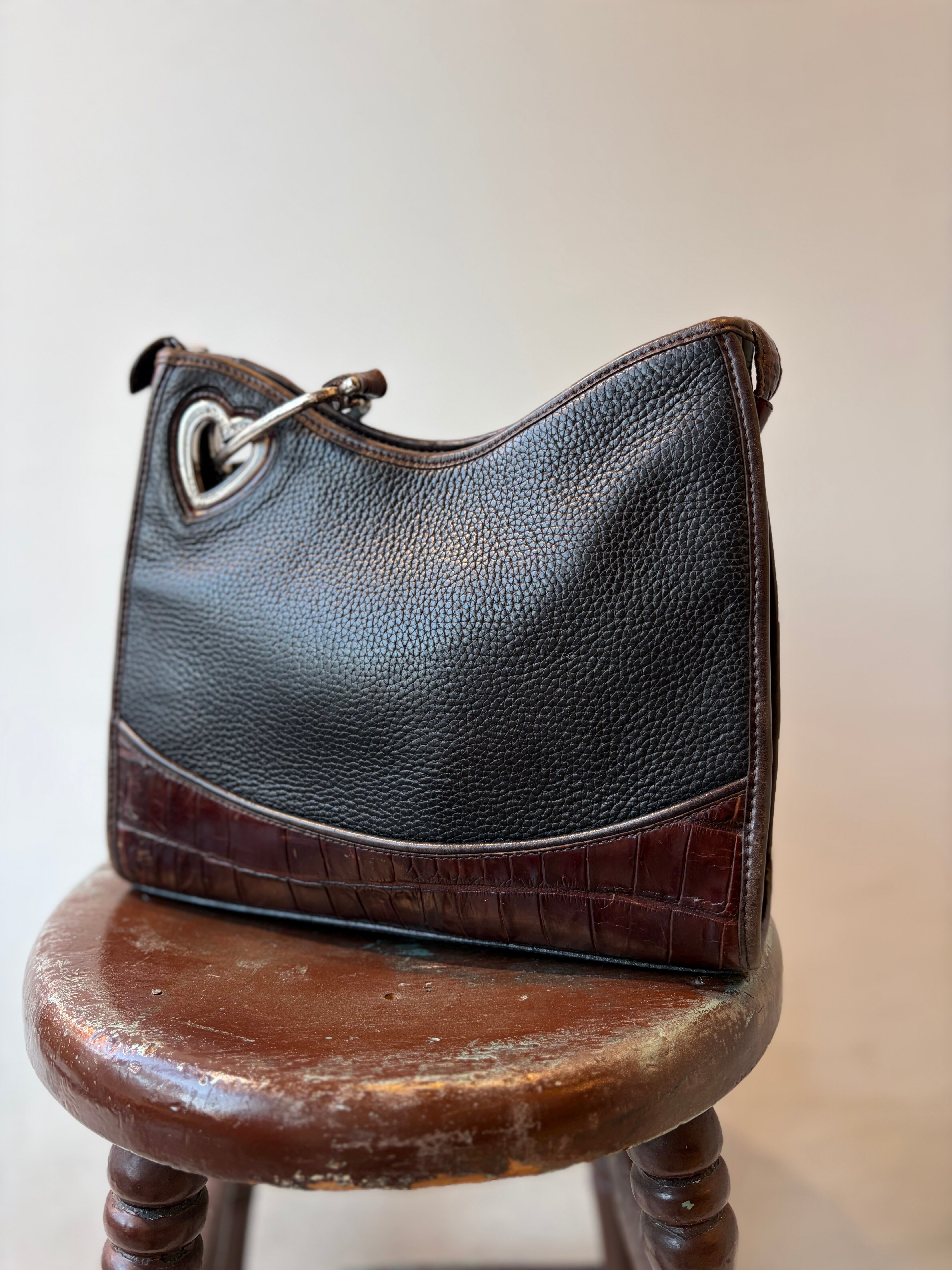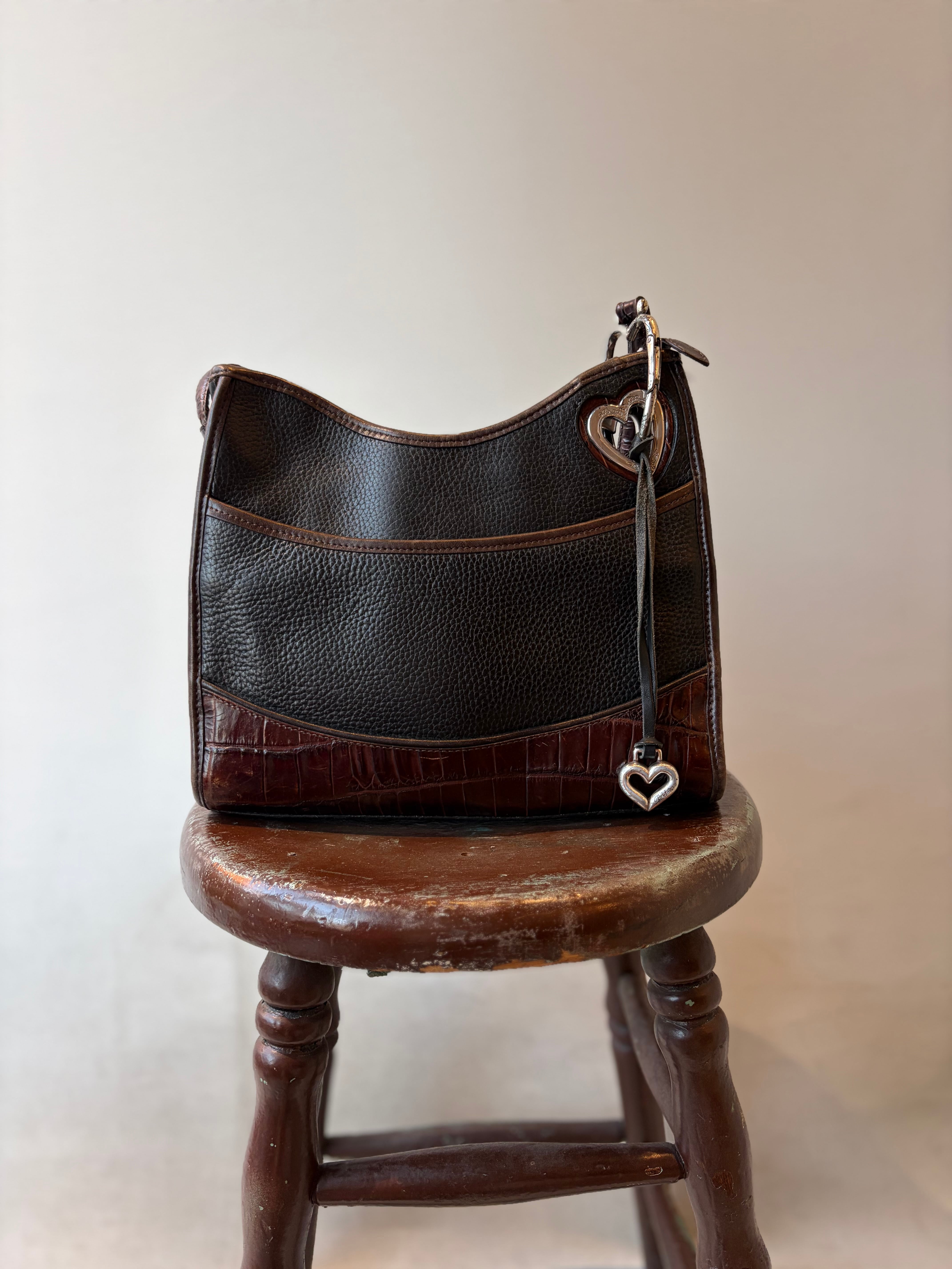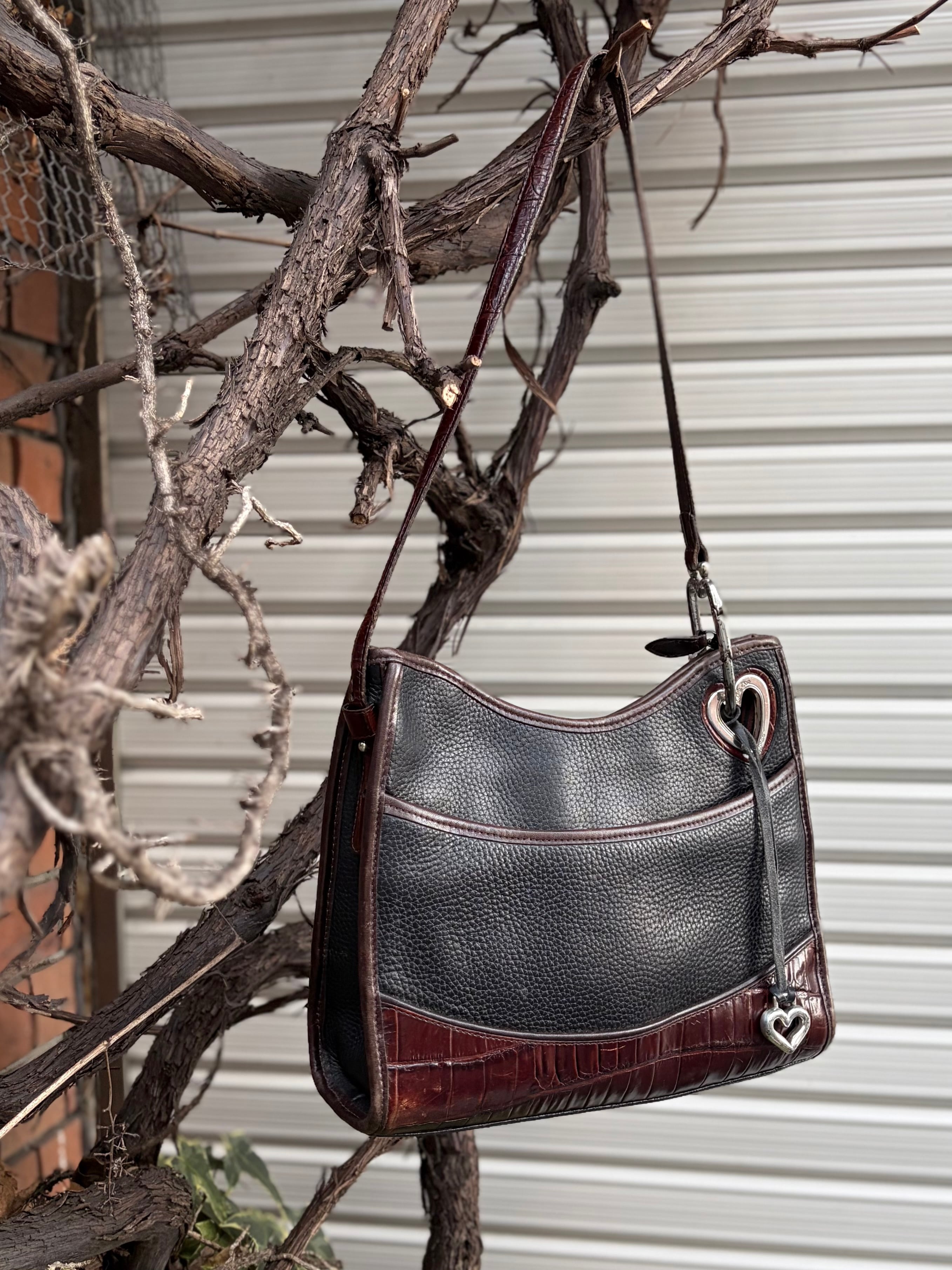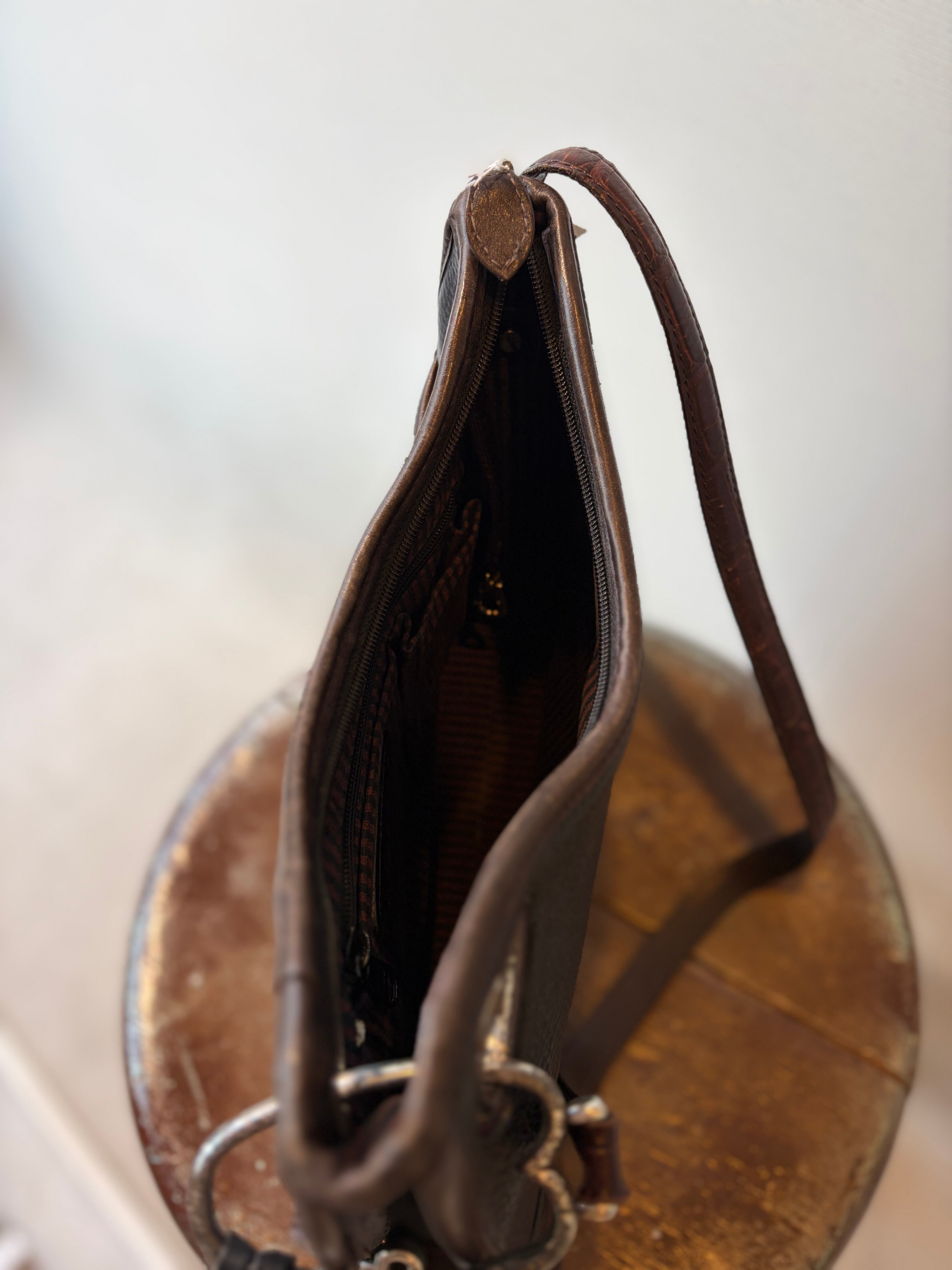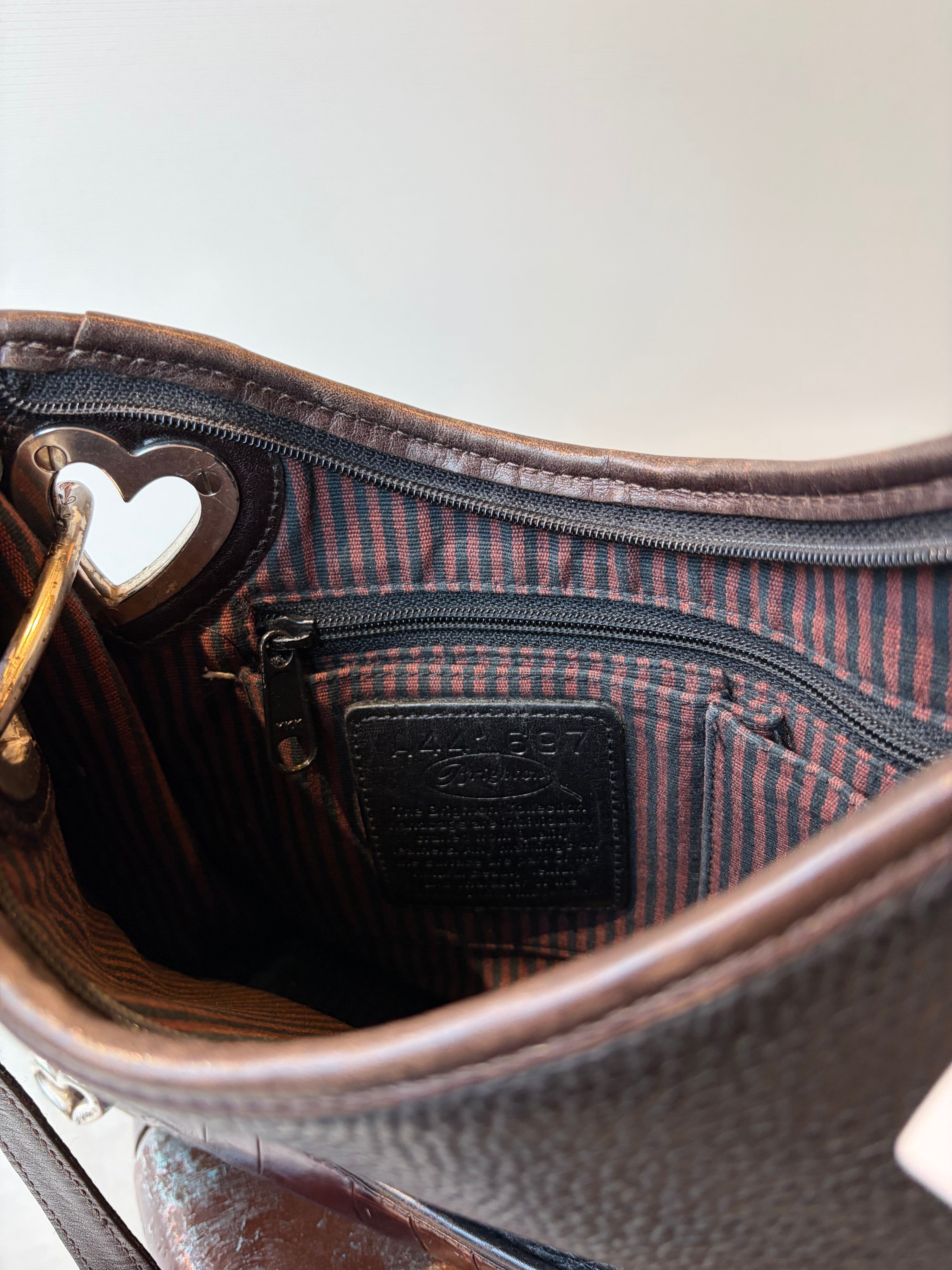 ハート型が3箇所に付いた愛らしいレザーバッグ。