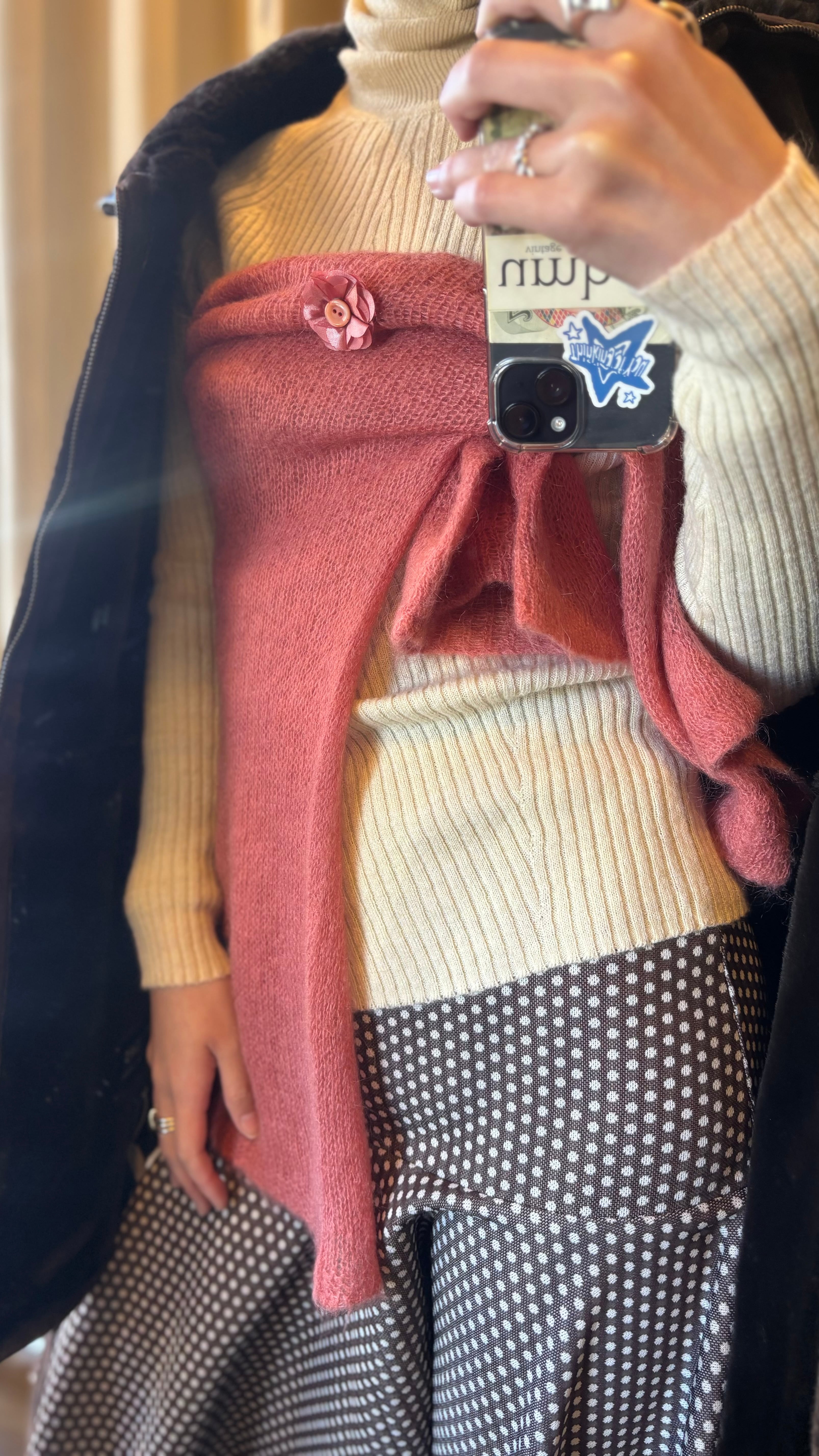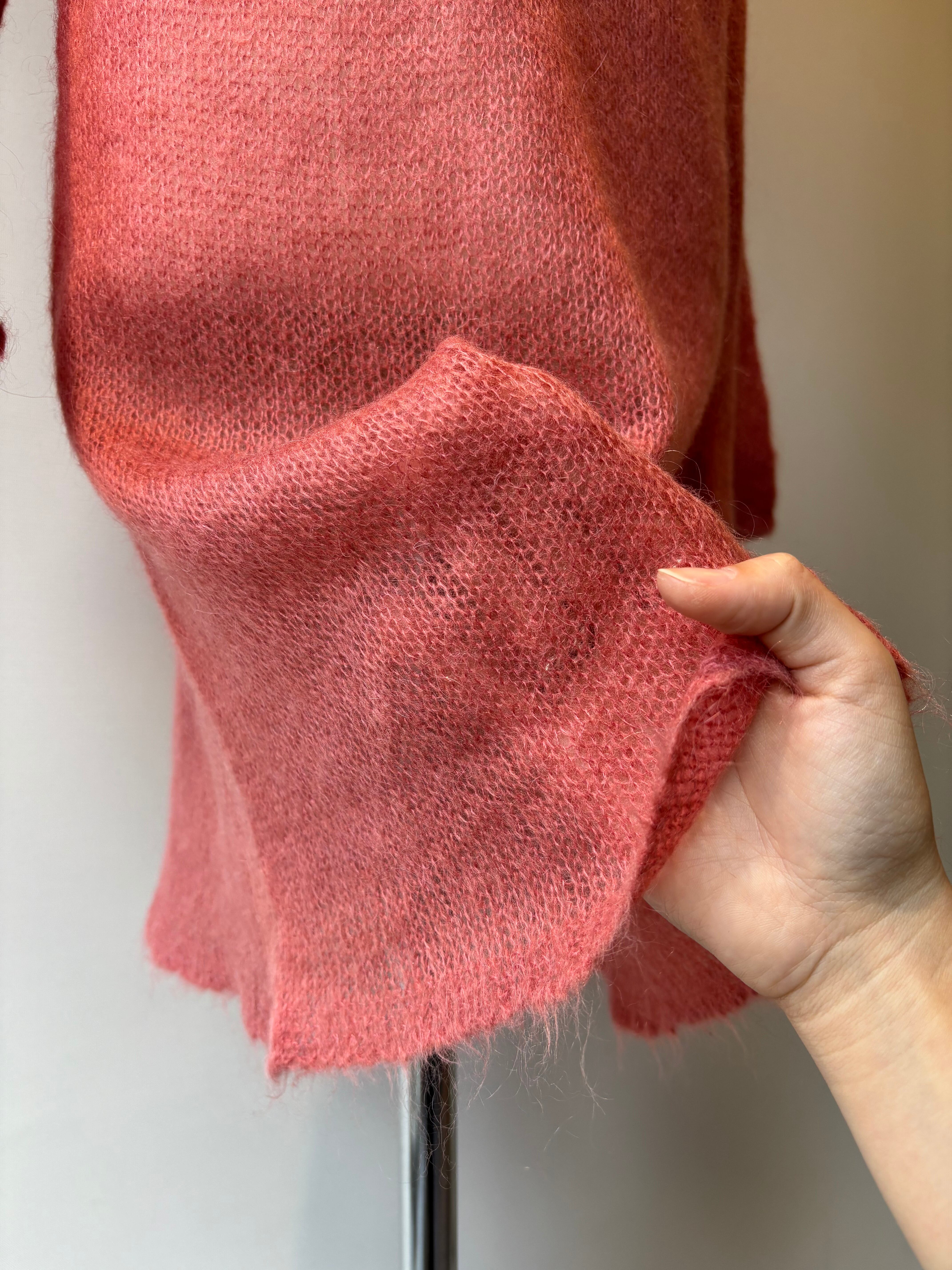 おそらくモヘアウールで柔らかく透け感があり、キャミソールやレイヤードのインナーとしてもおすすめです。