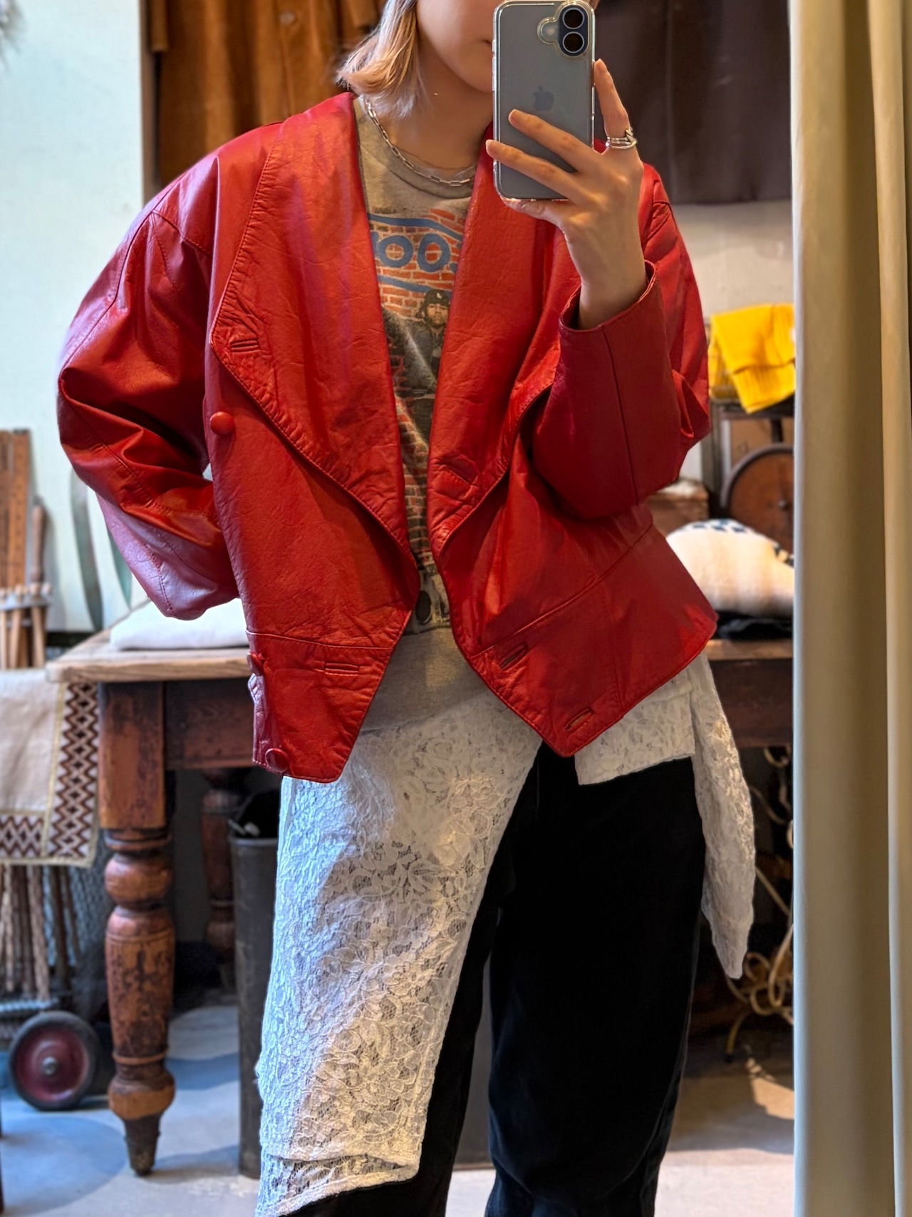 80s color leather jacket