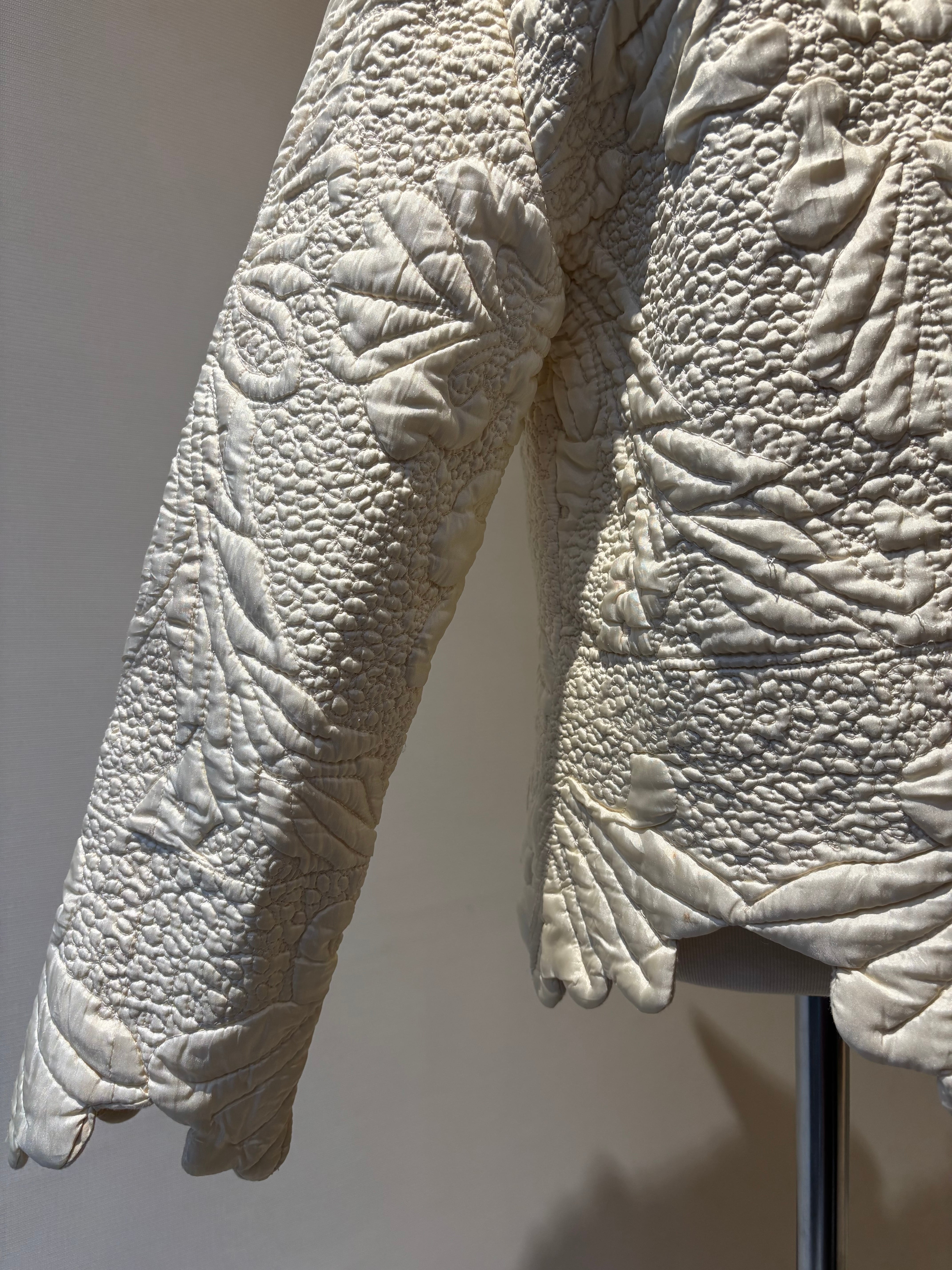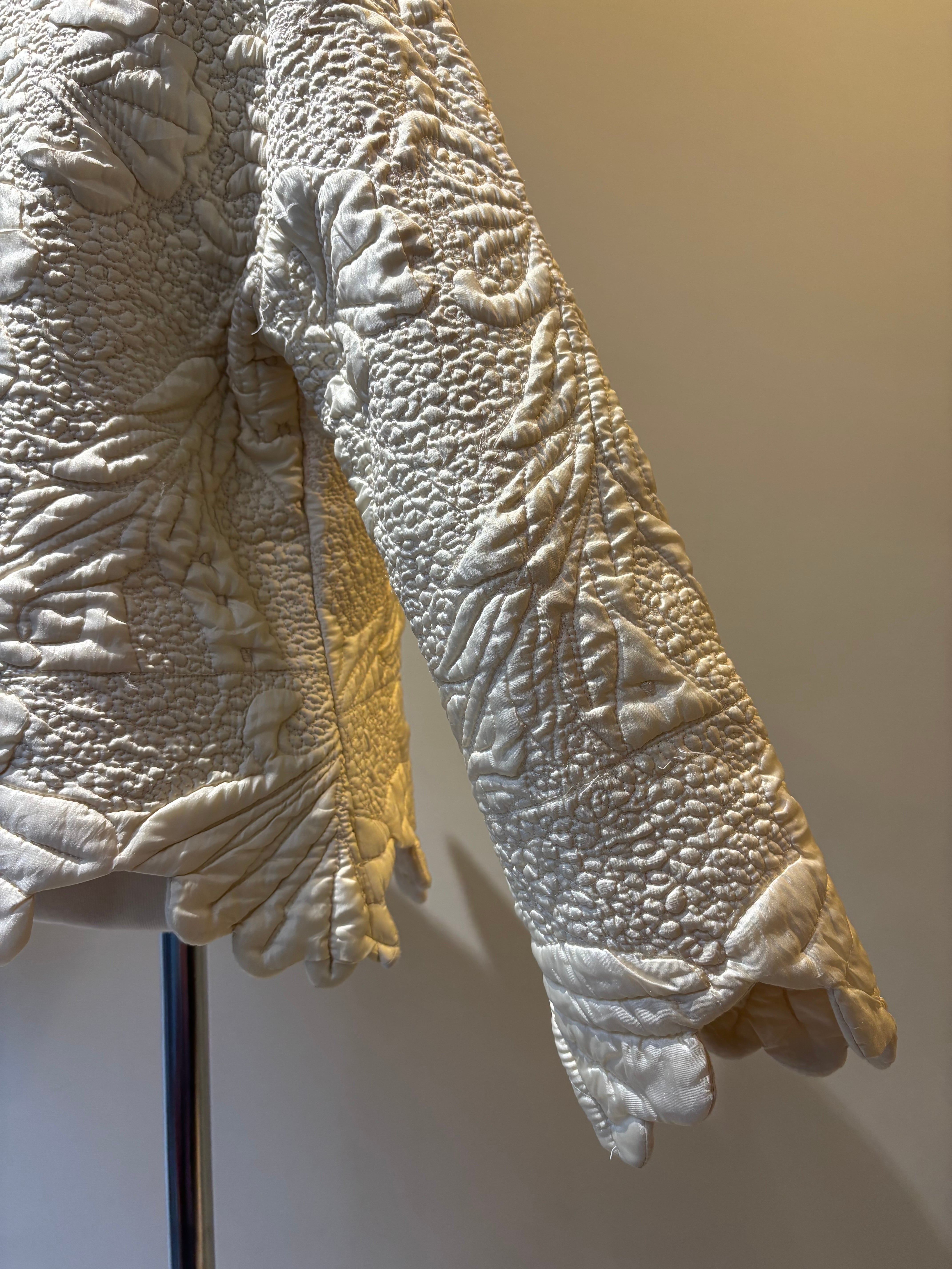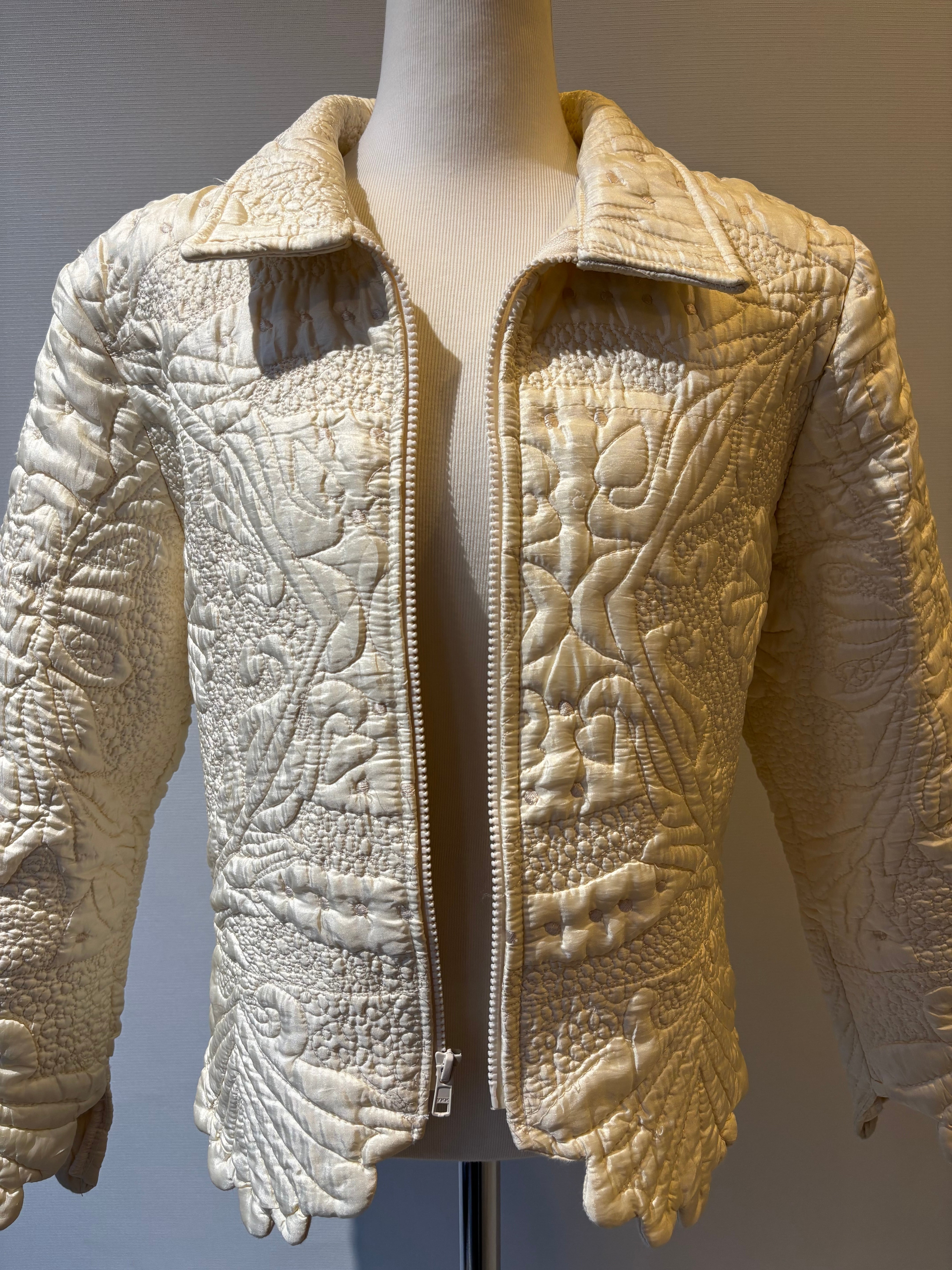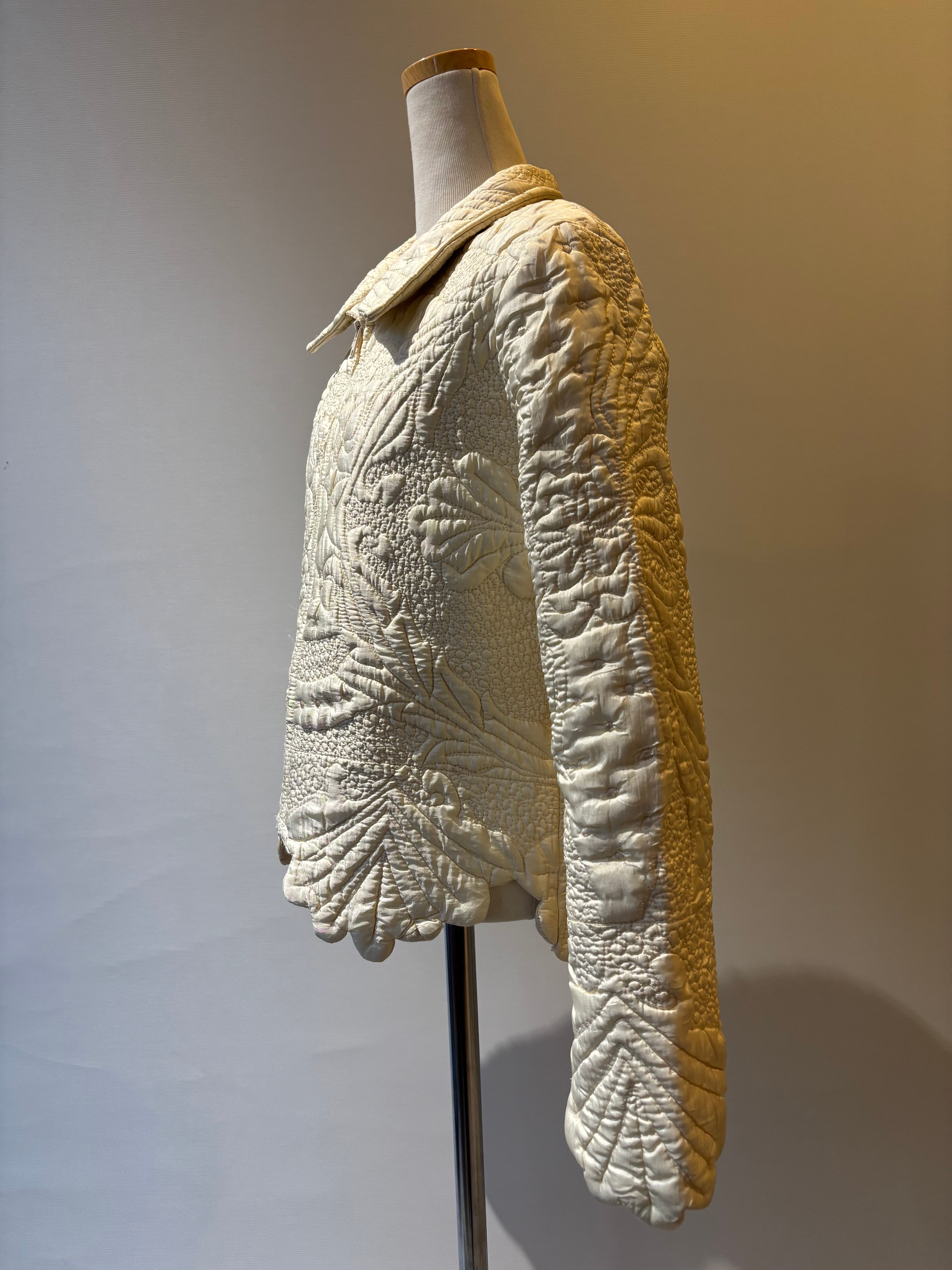 キルティングステッチデザインのジップアップジャケット。