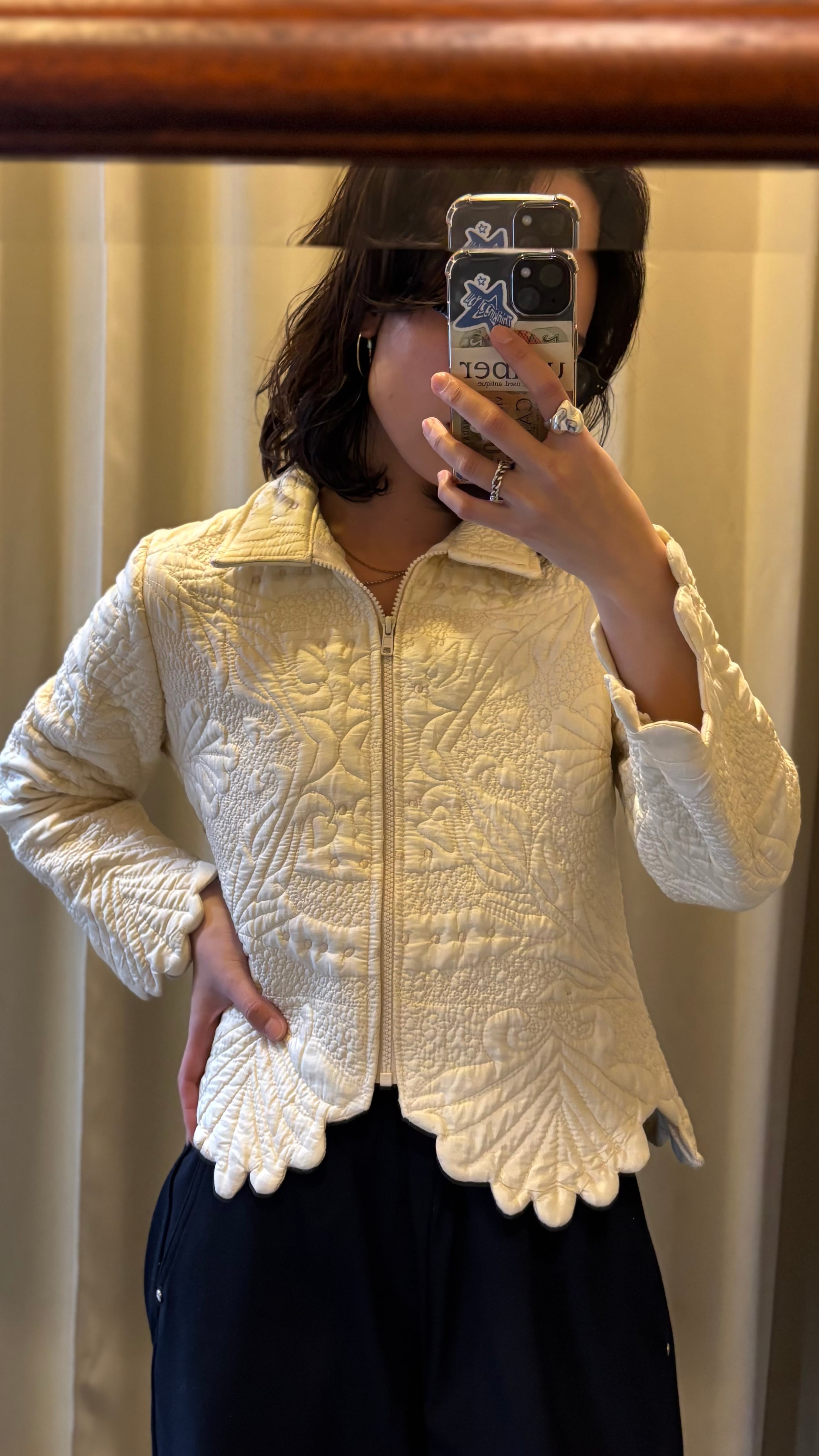 90s scalloped stitch zip-up jacket
