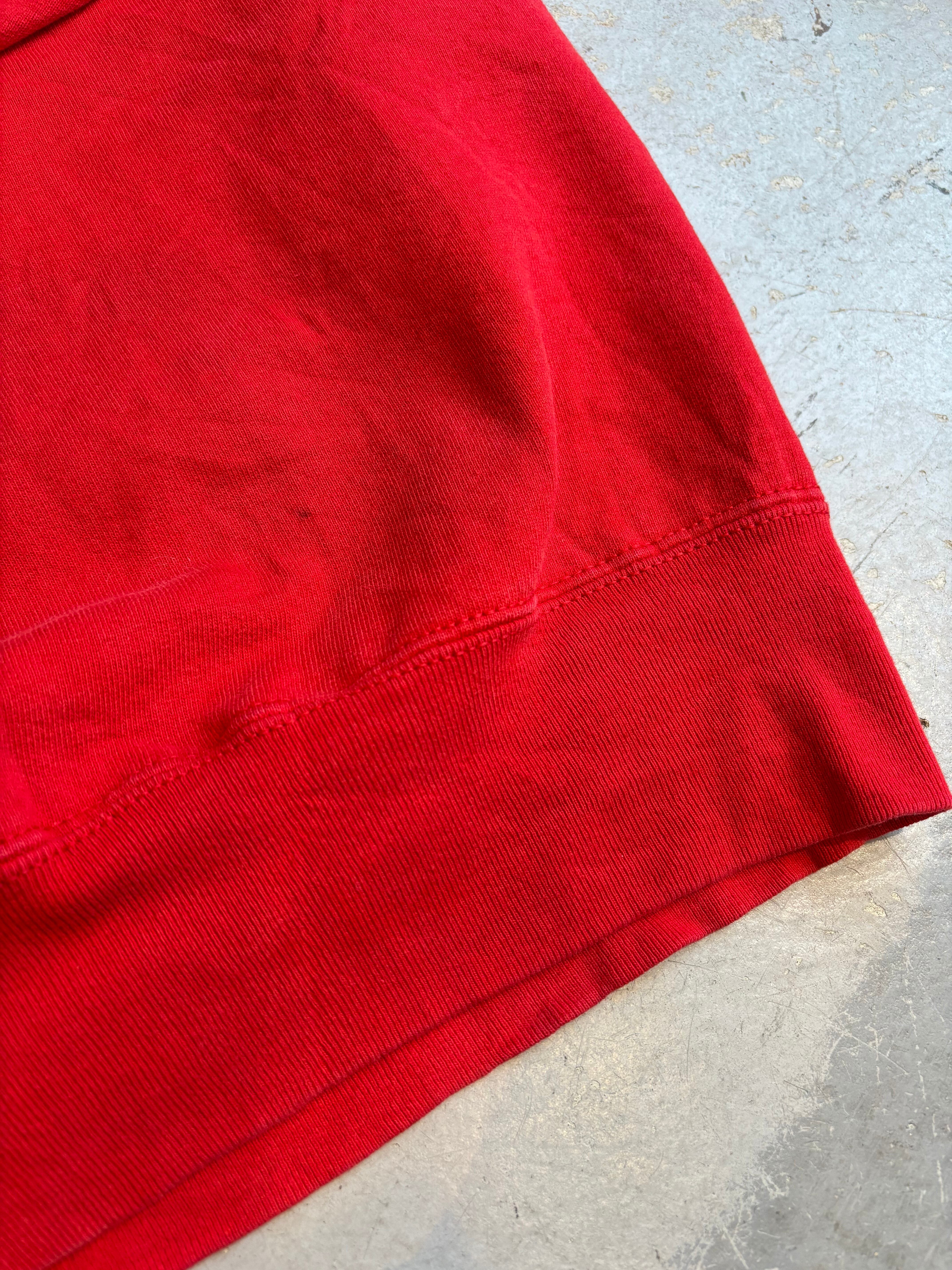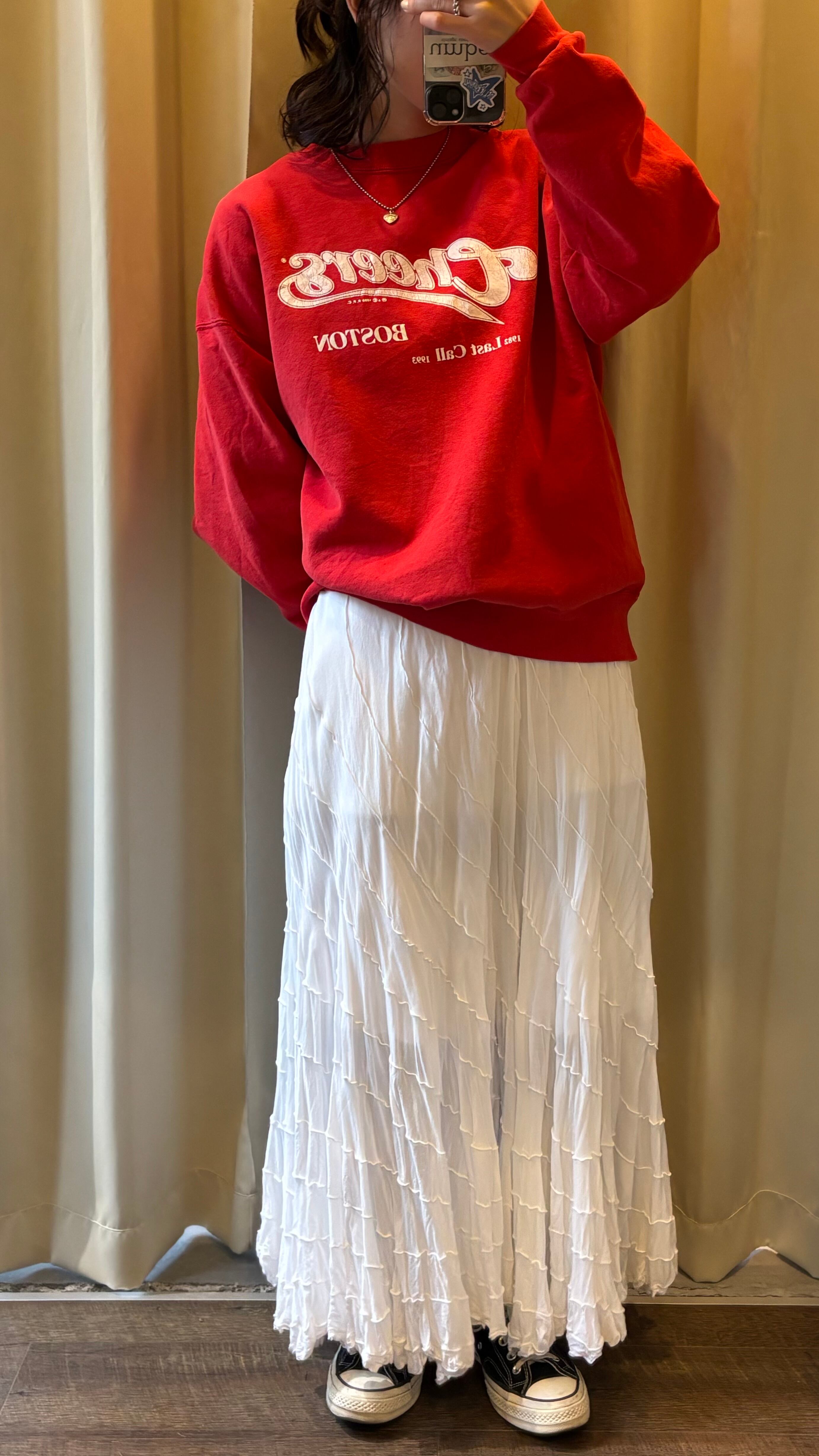 レッドボディにホワイトの配色で、スタイリングを選ばずさまざまなアイテムと相性の良い一着です。