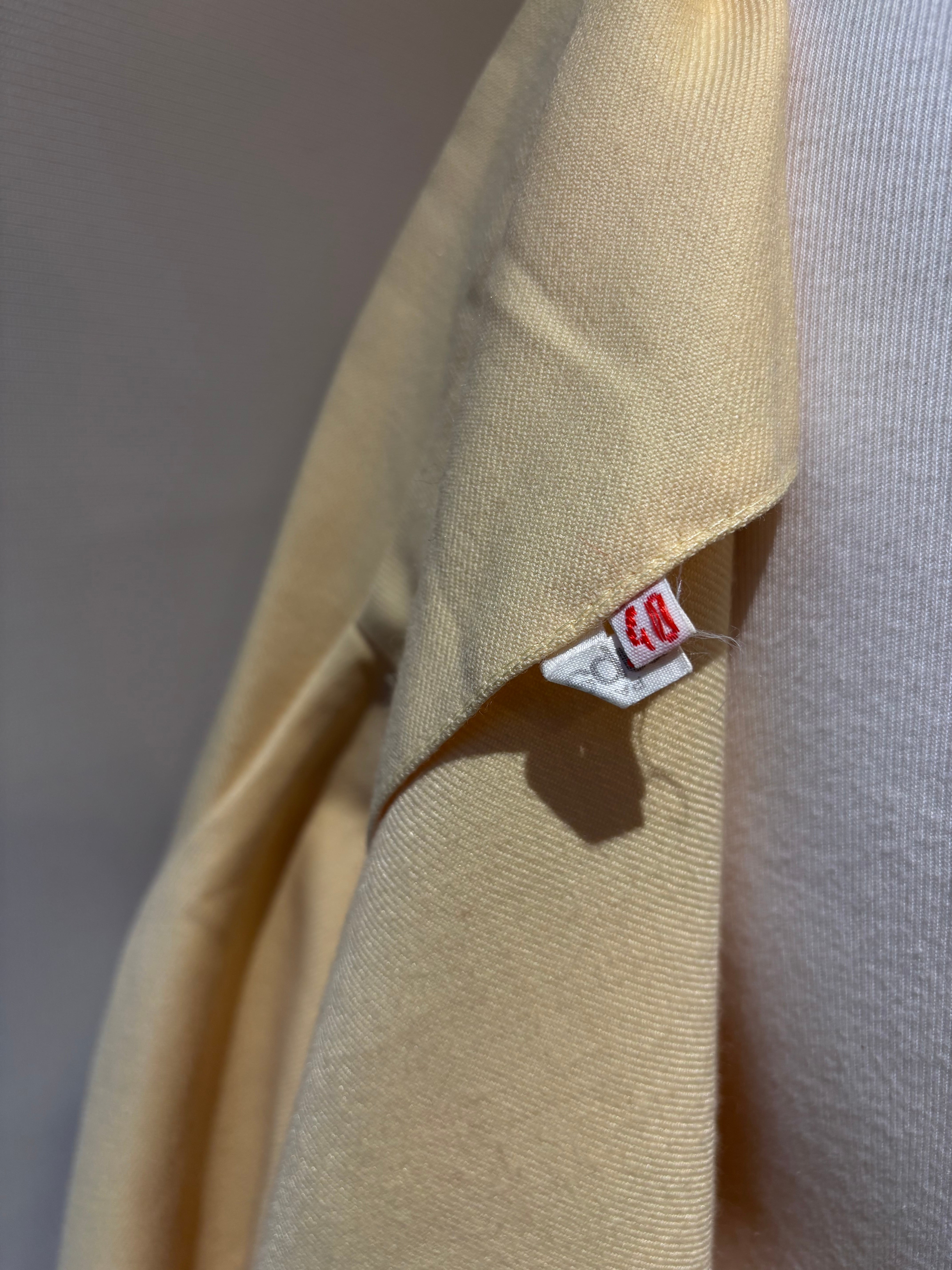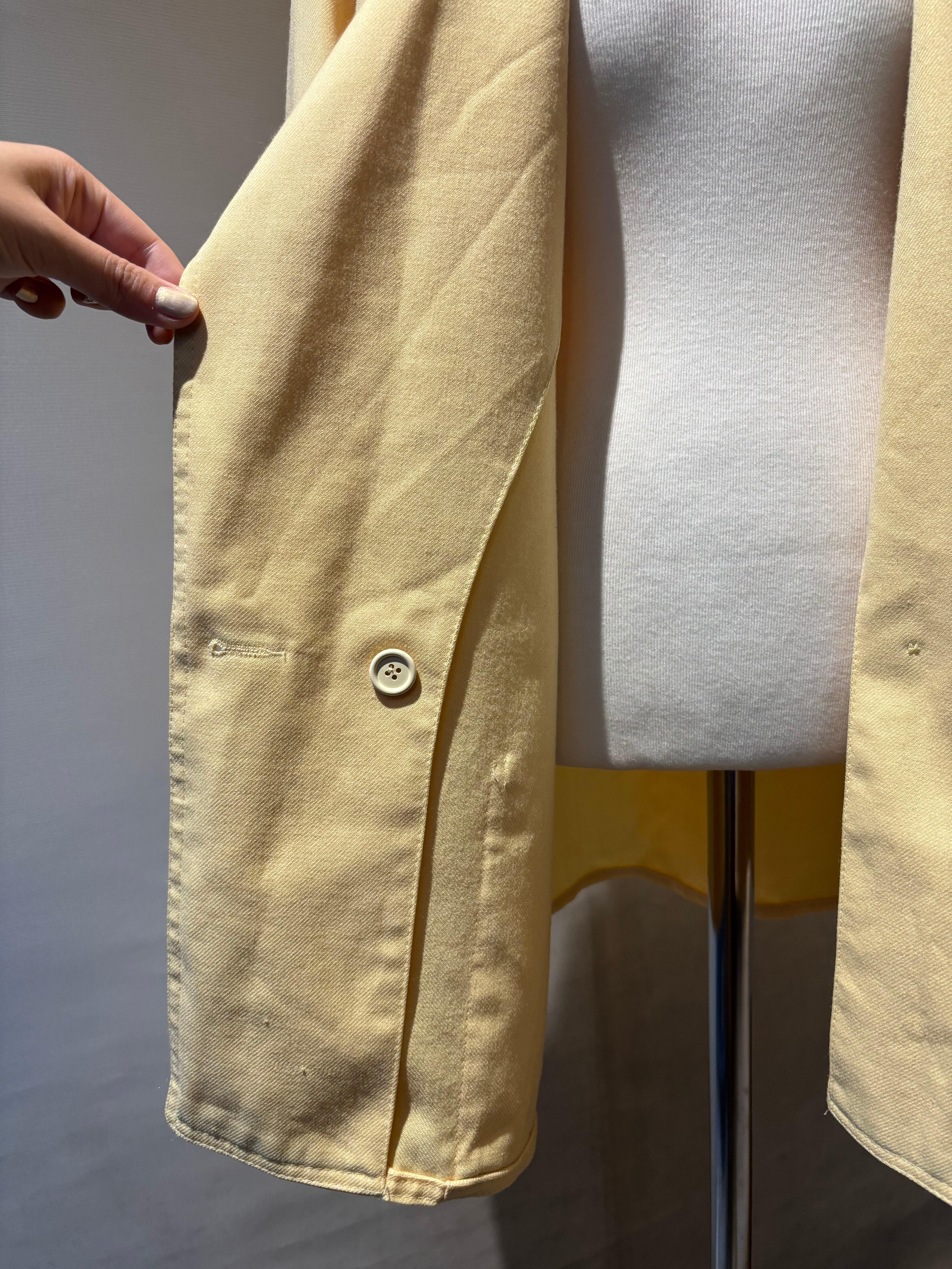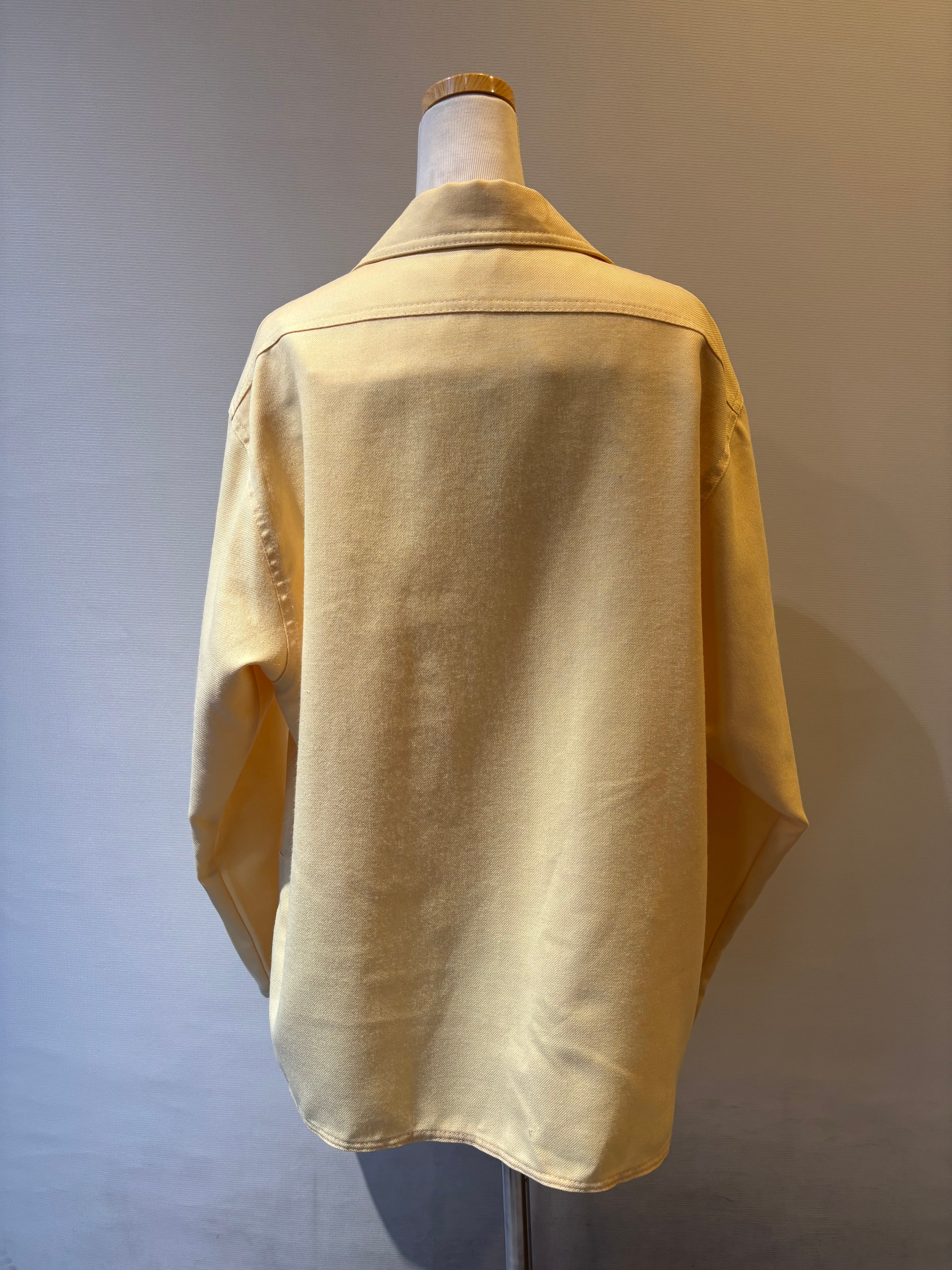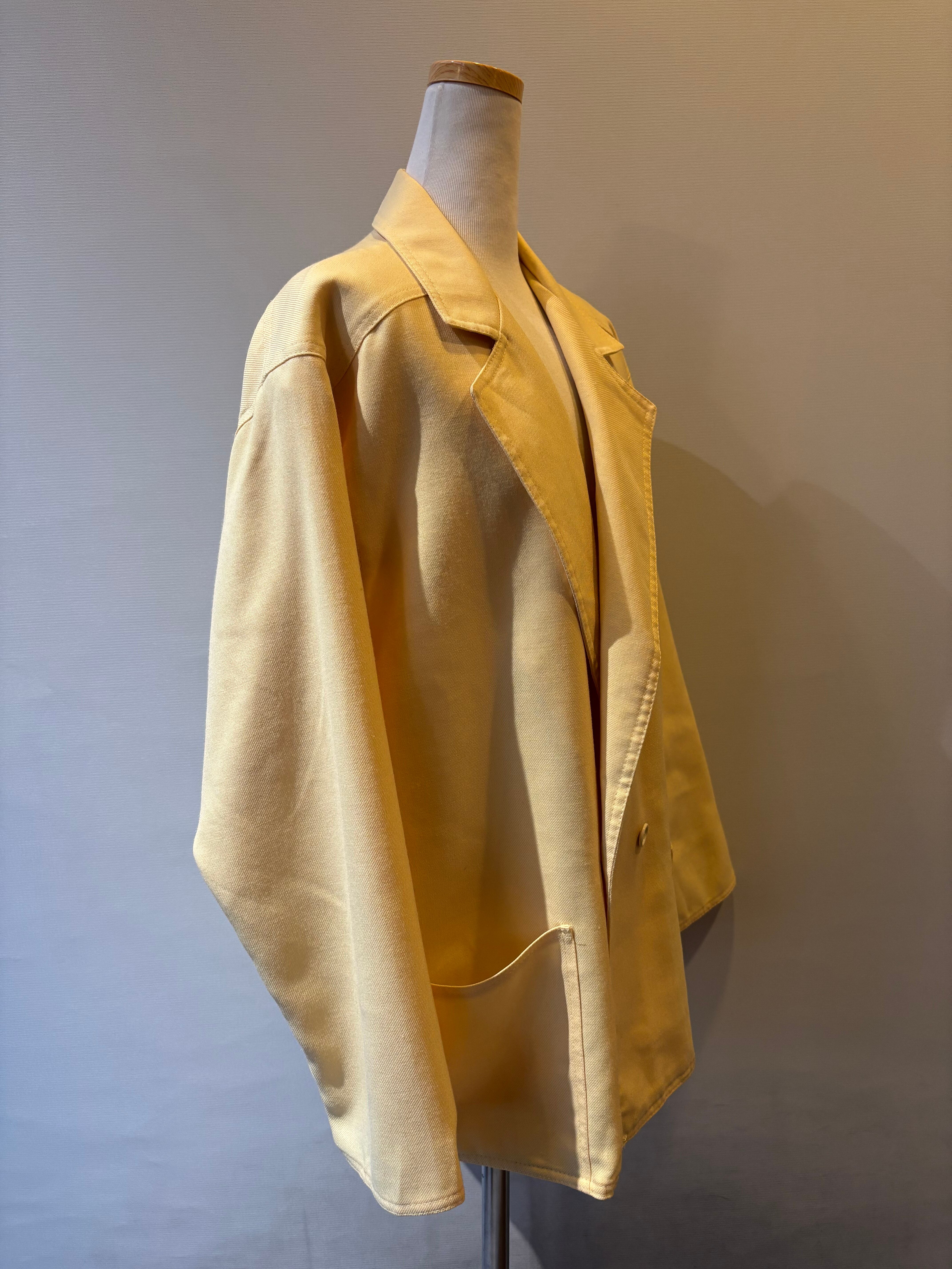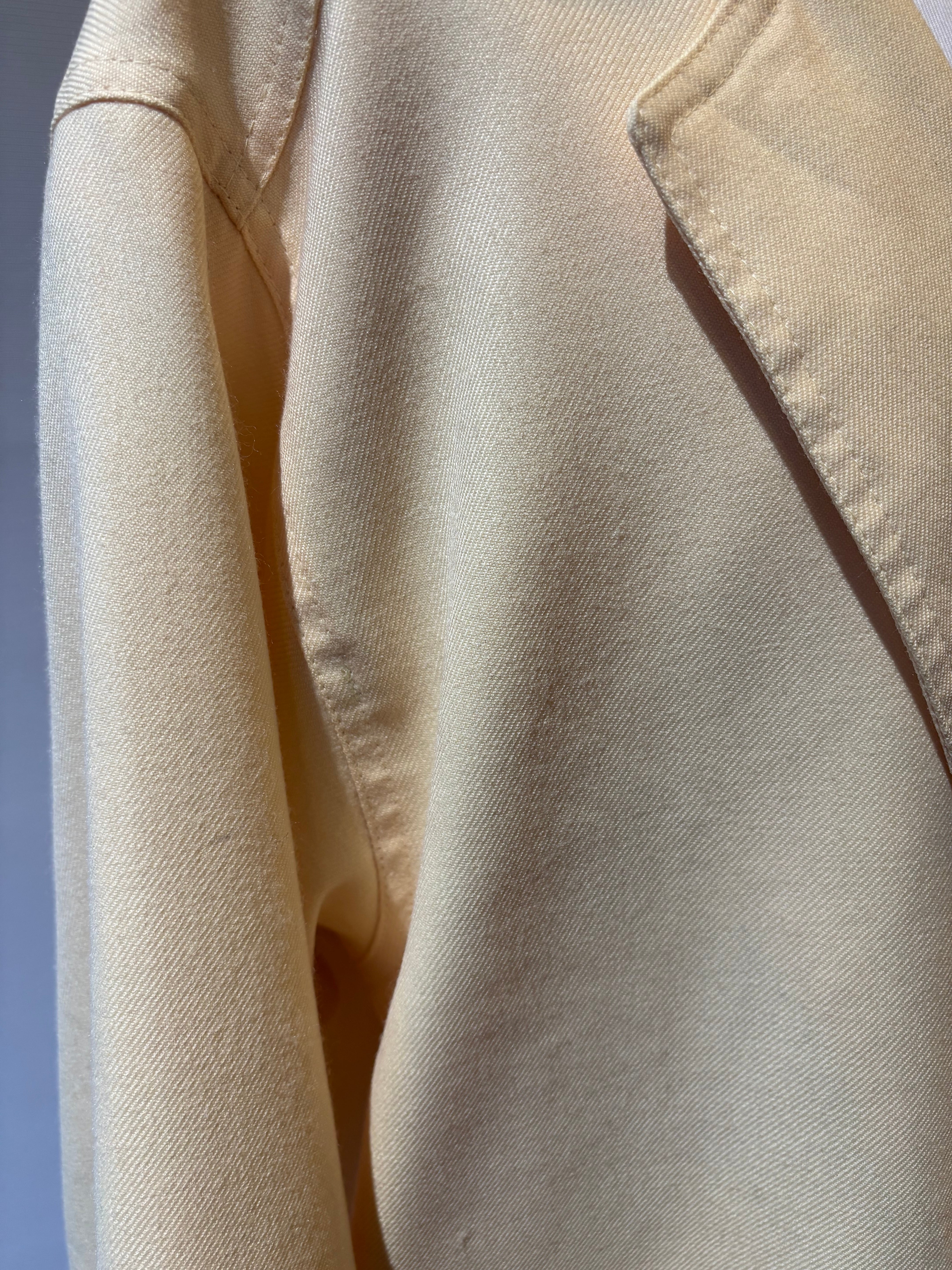 淡いペールイエローが春らしく、軽く羽織るだけでスタイリングが決まる一着。
