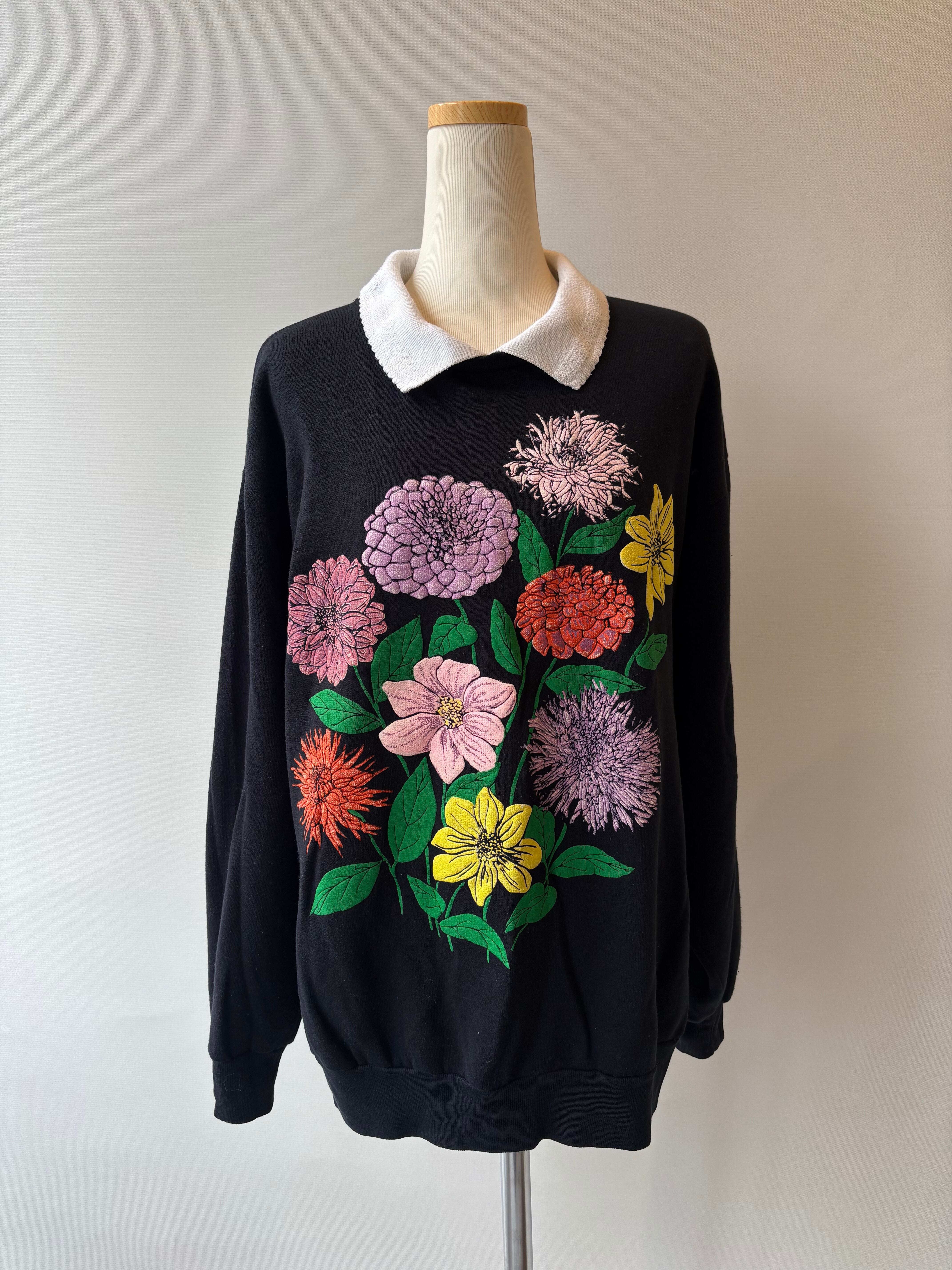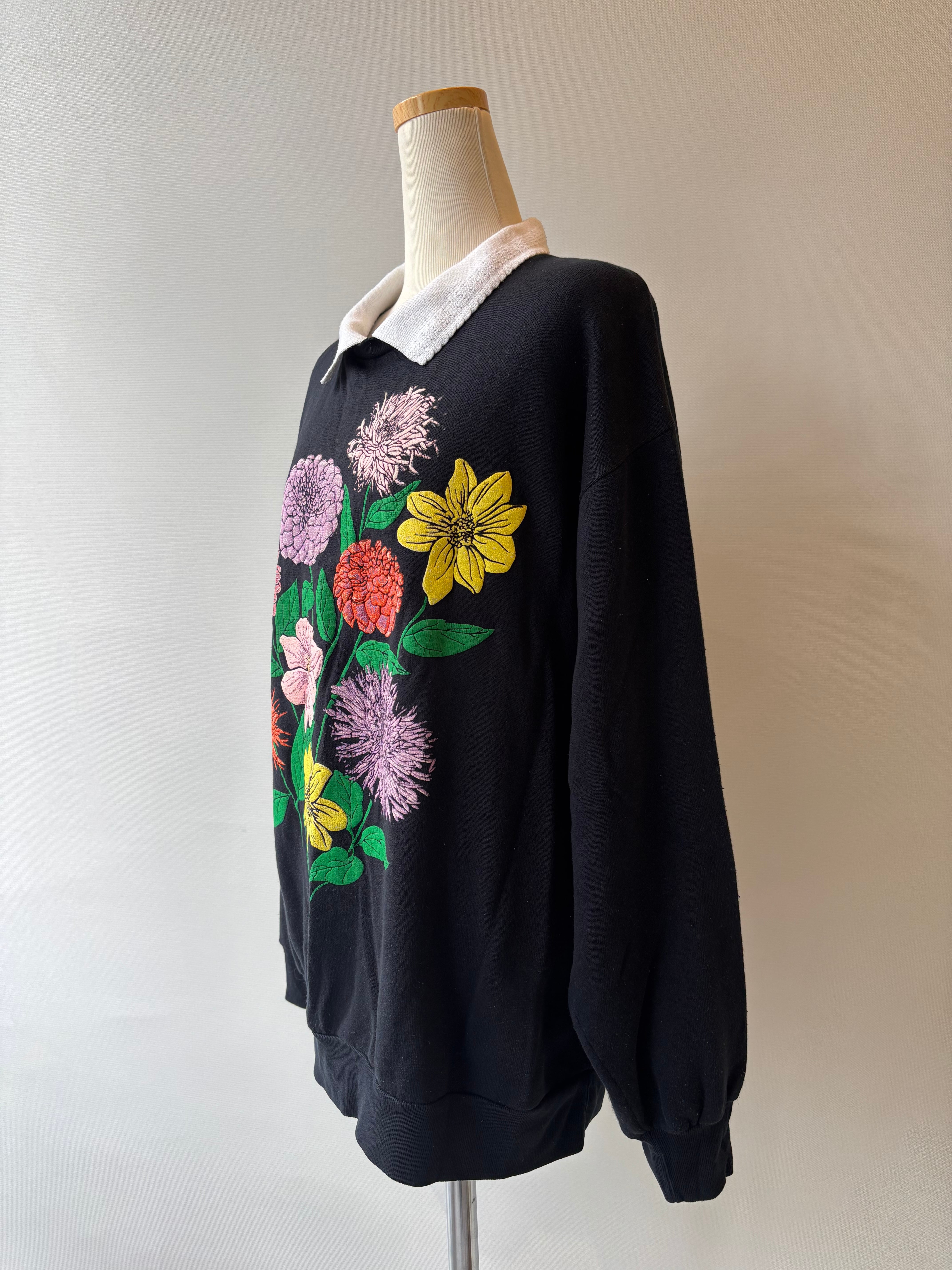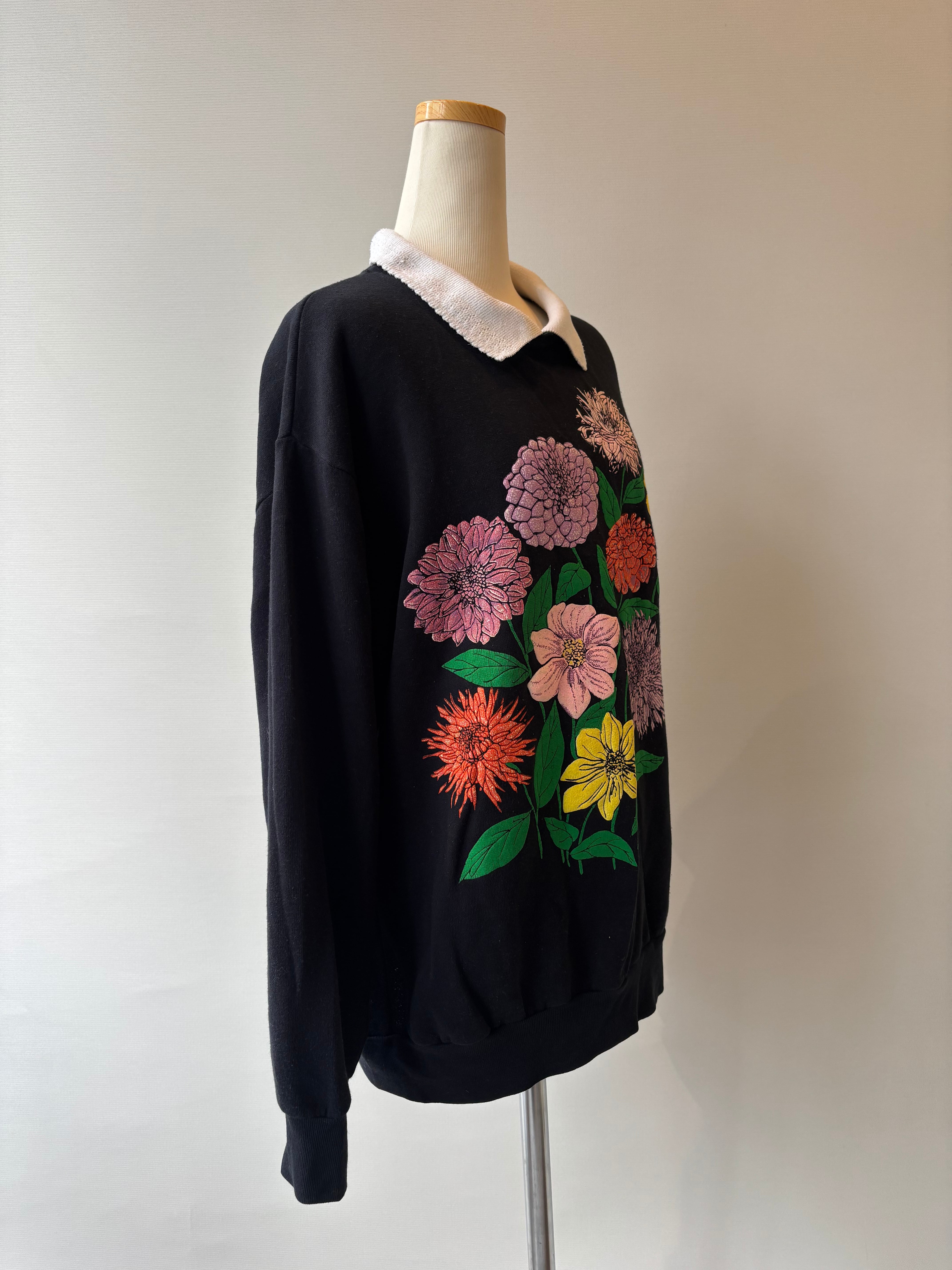 80-90s floral puff print collared sweatshirt