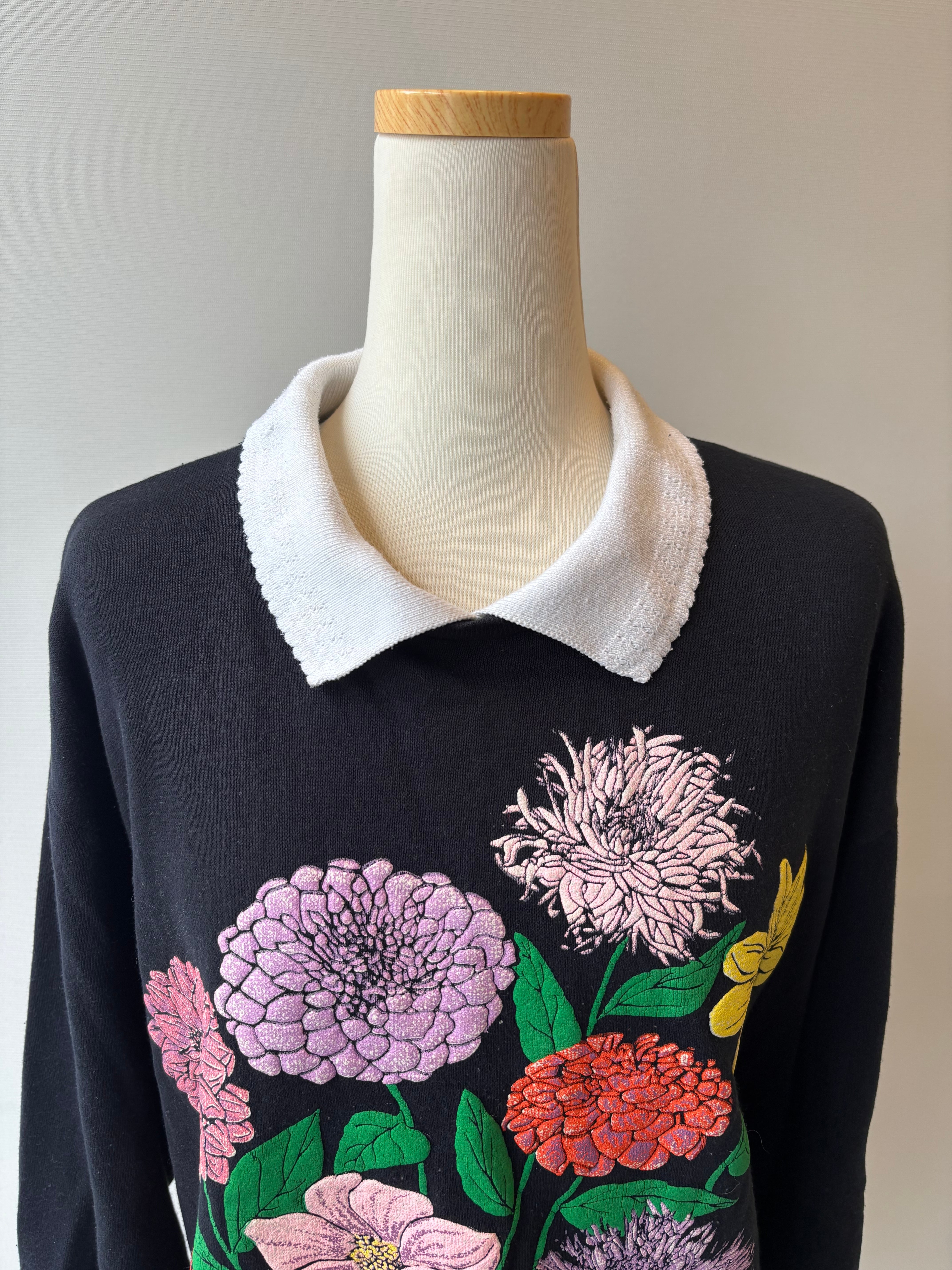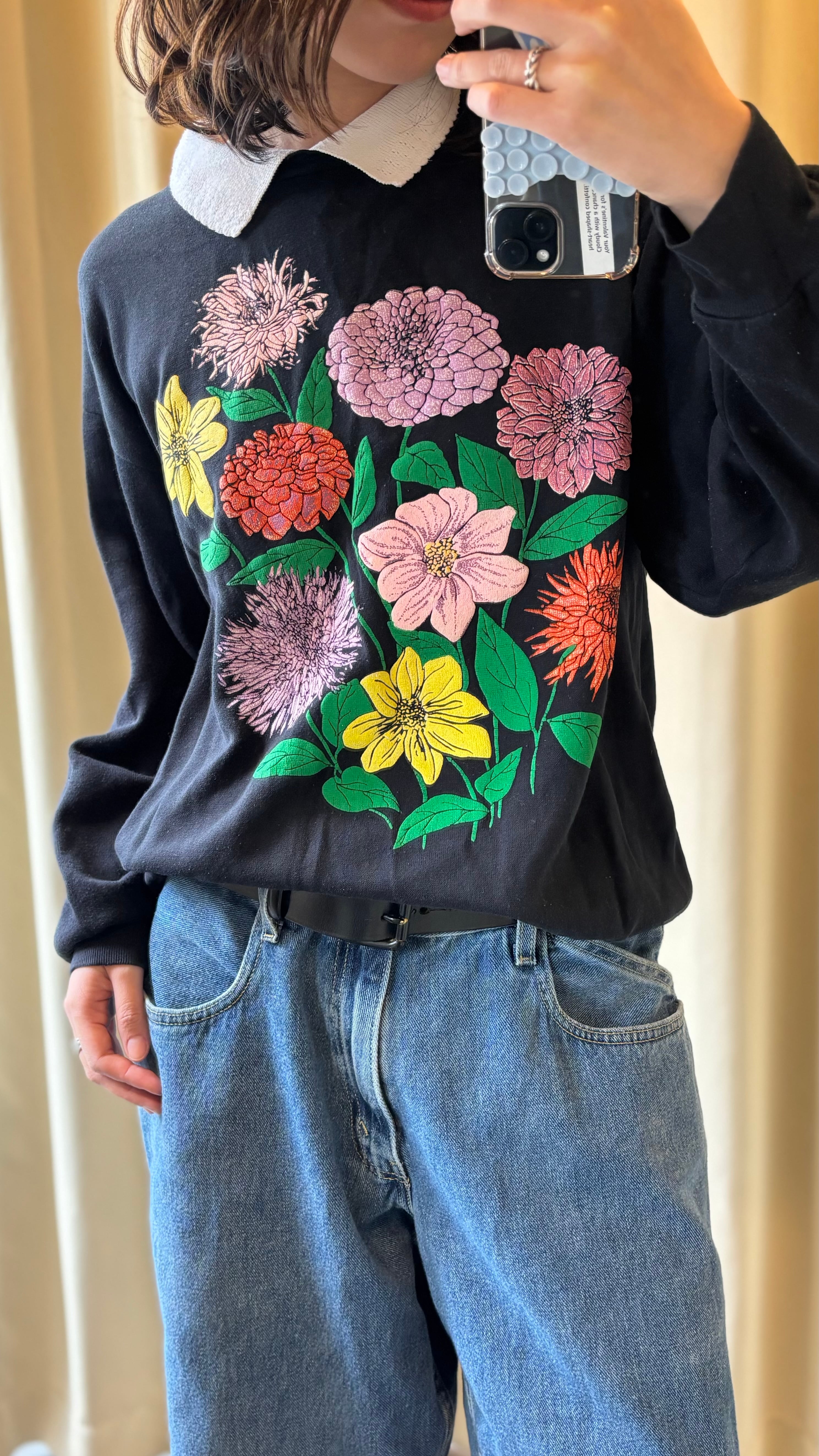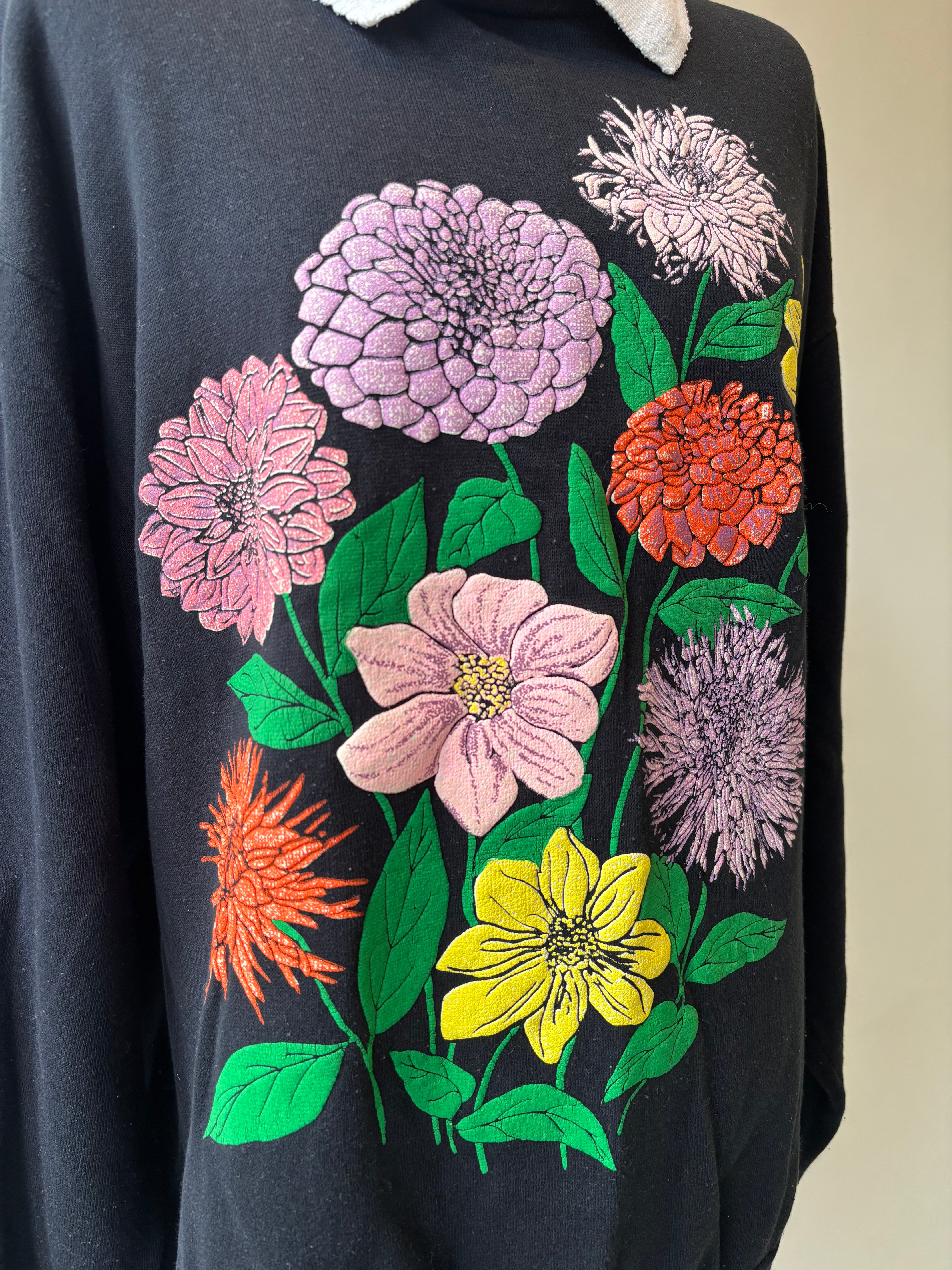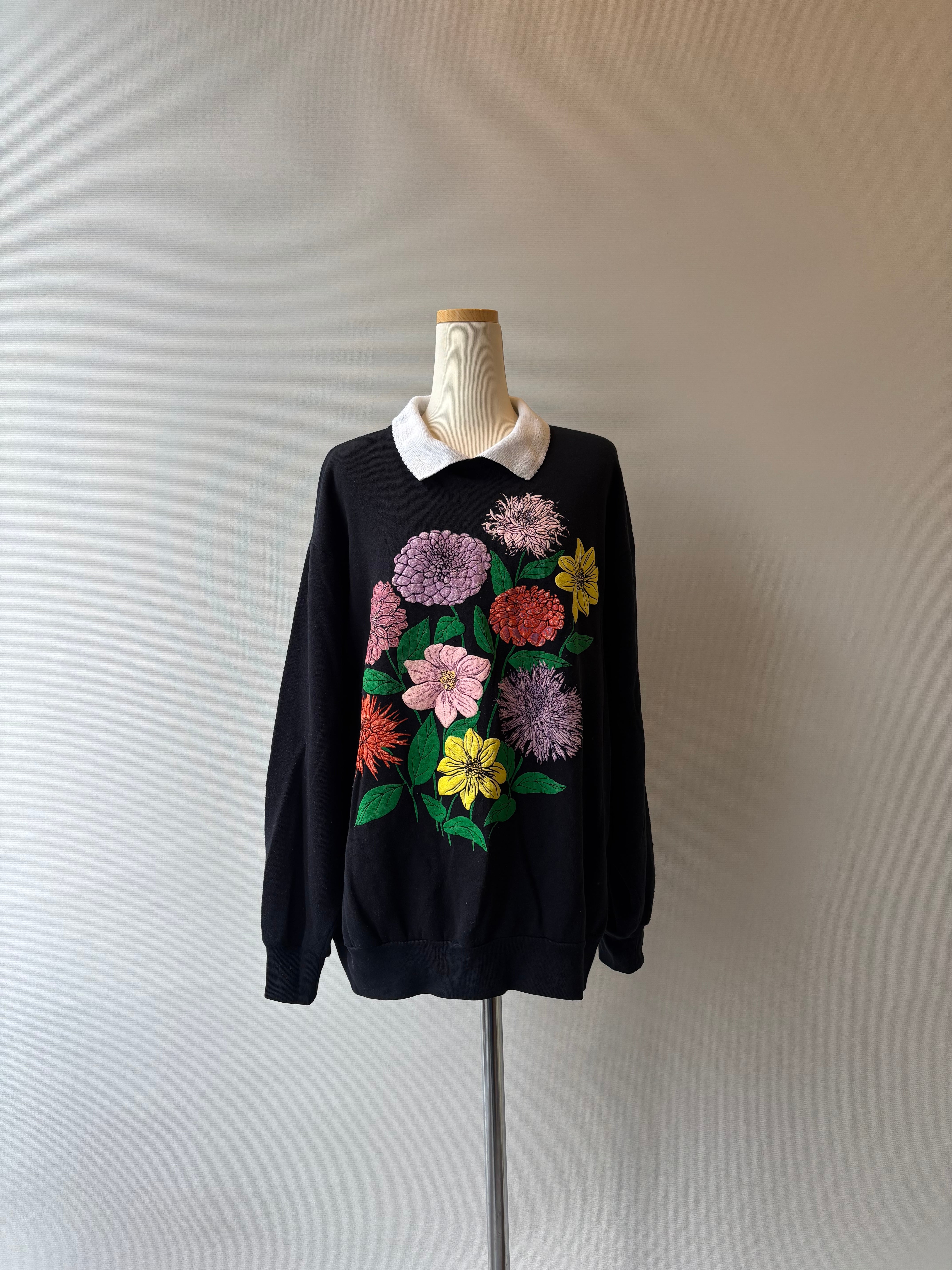 80-90s floral puff print collared sweatshirt