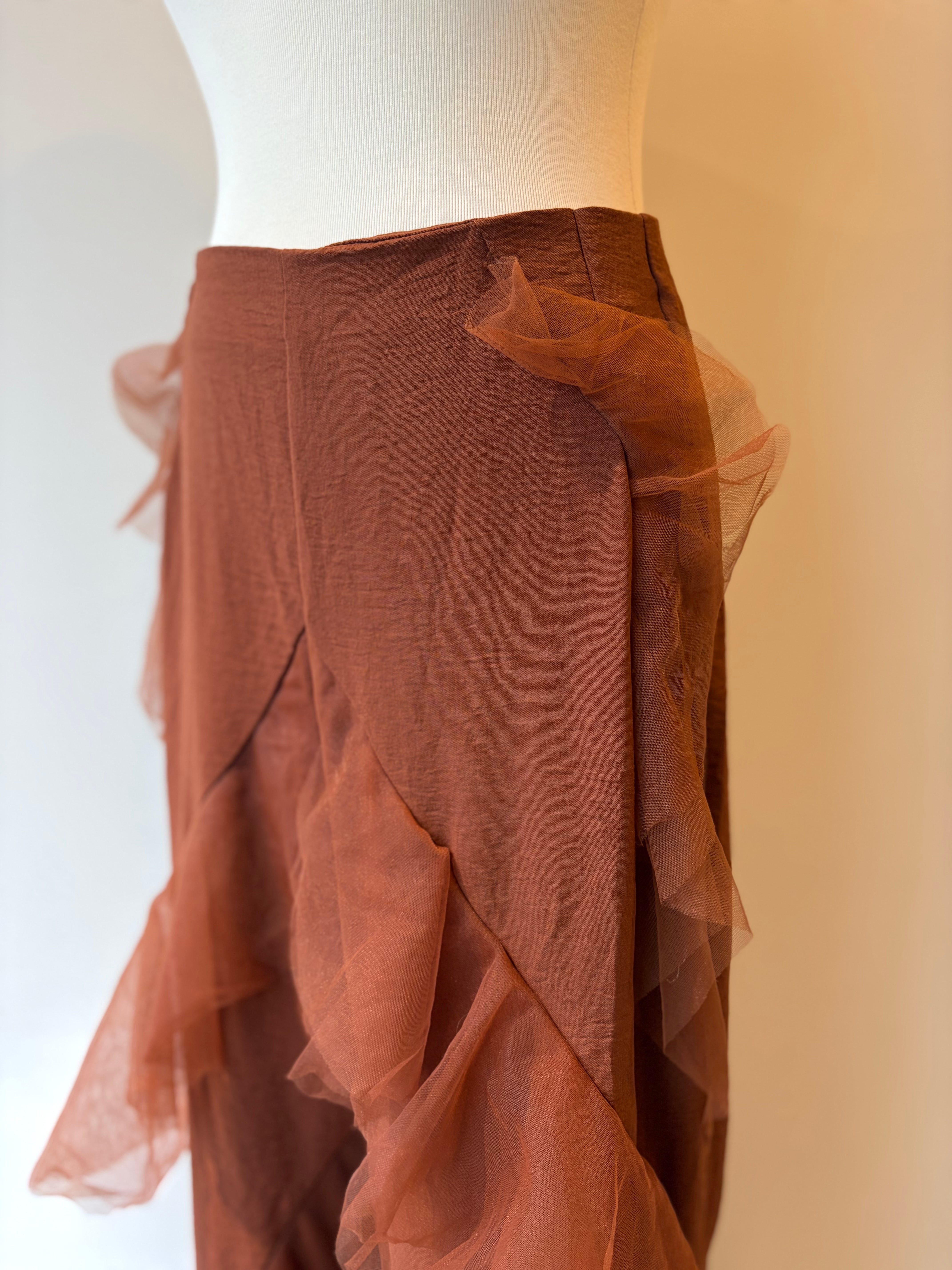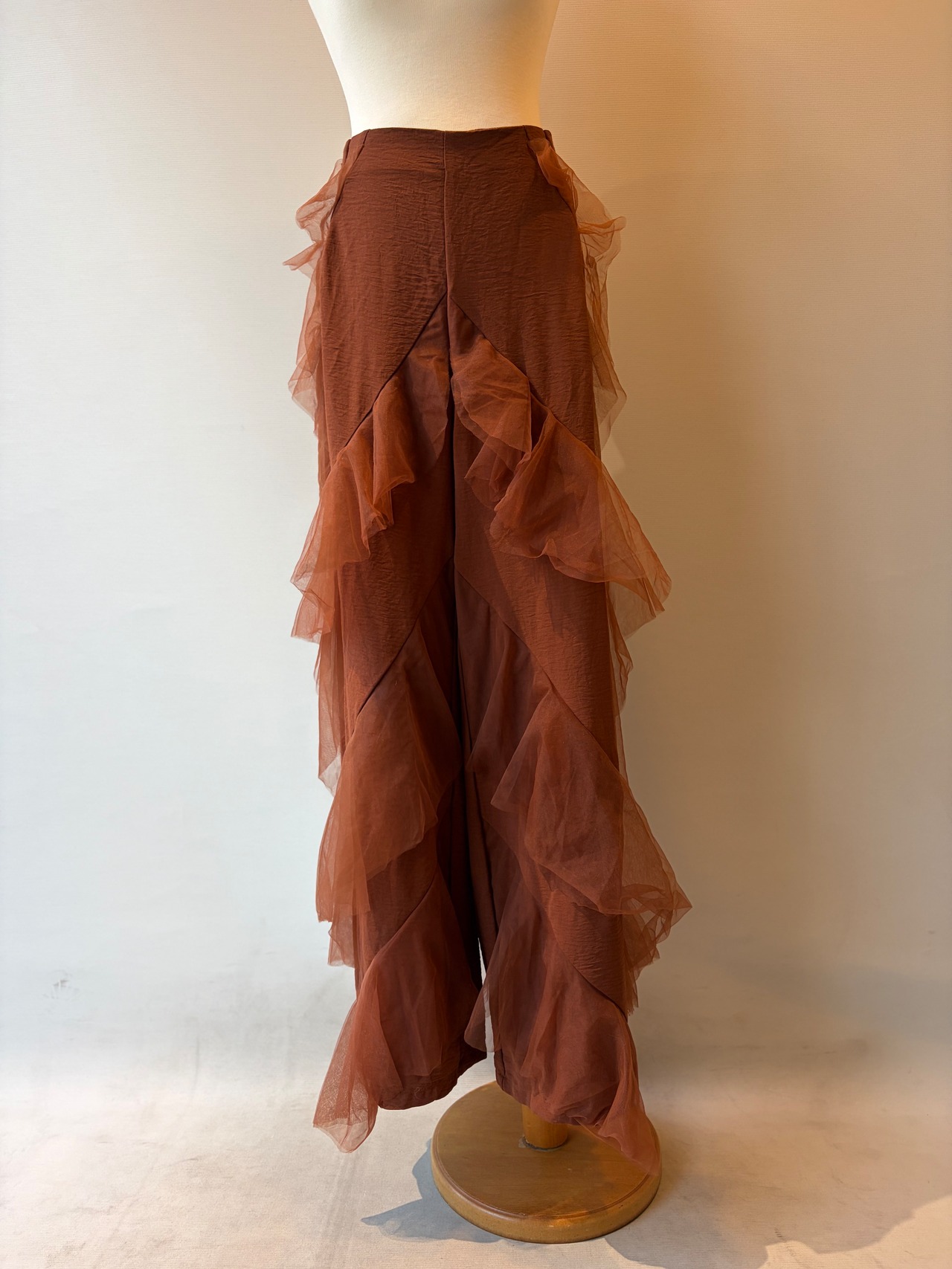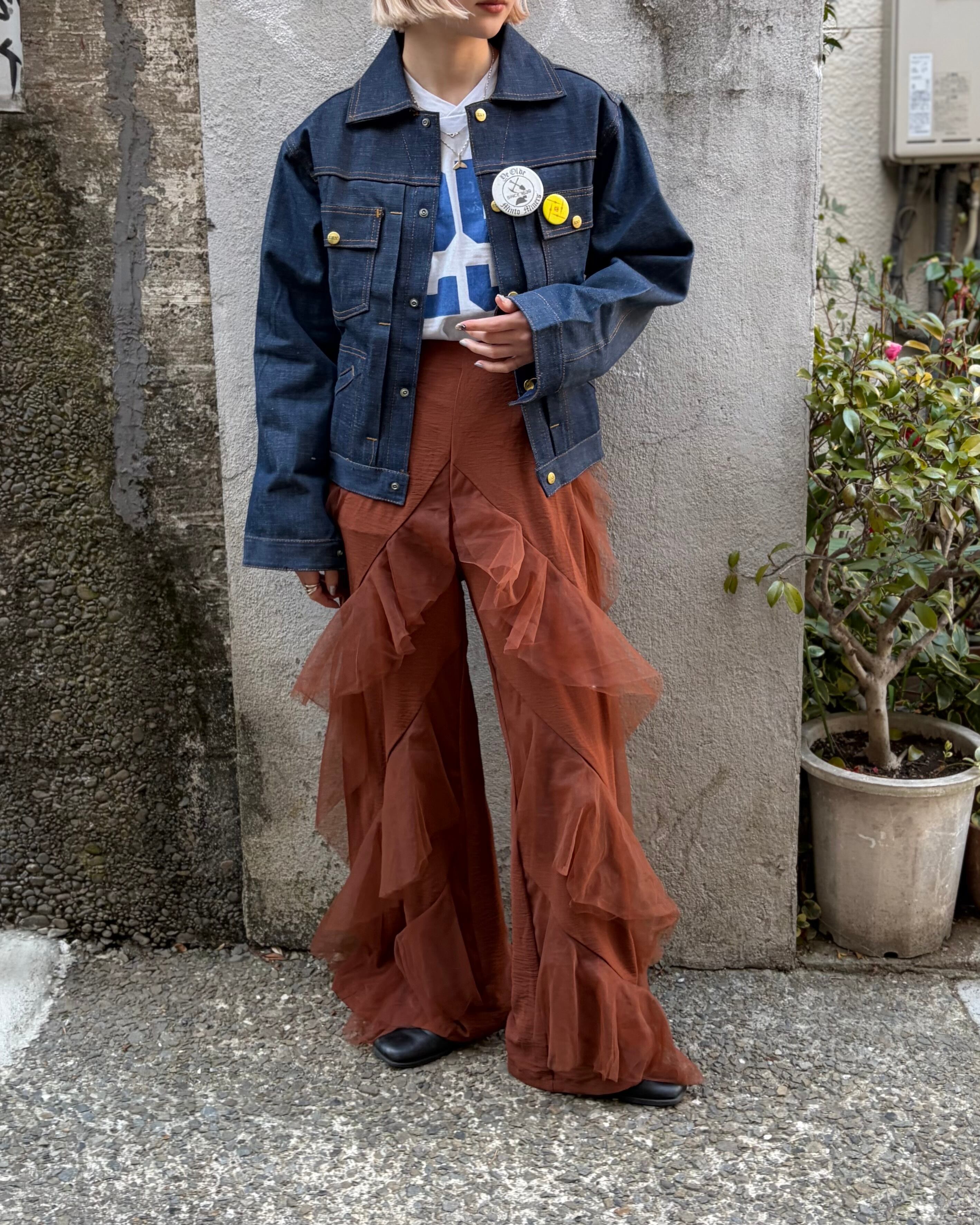 チュールが規則的に仕立てられたレディースらしいパンツ。