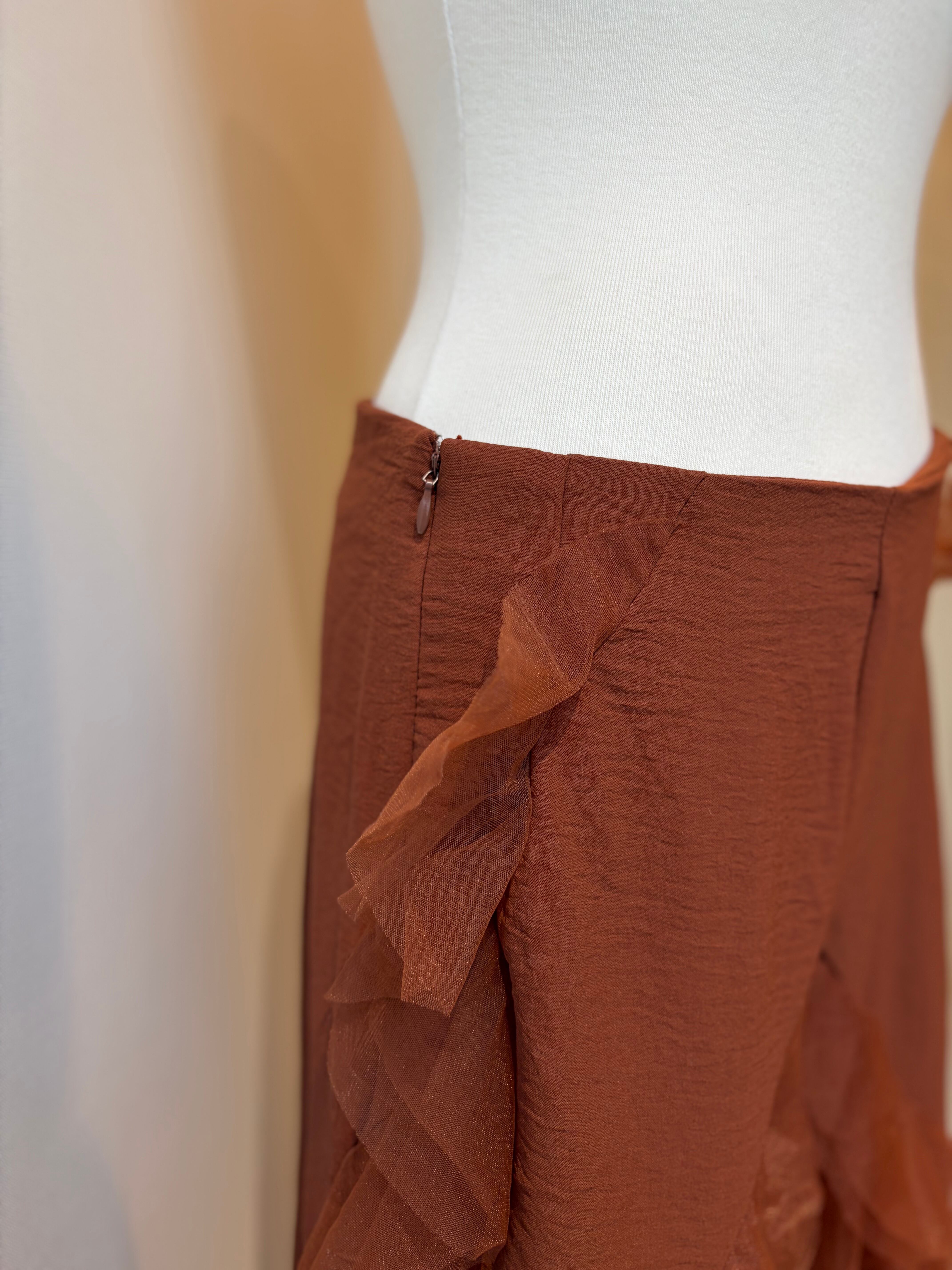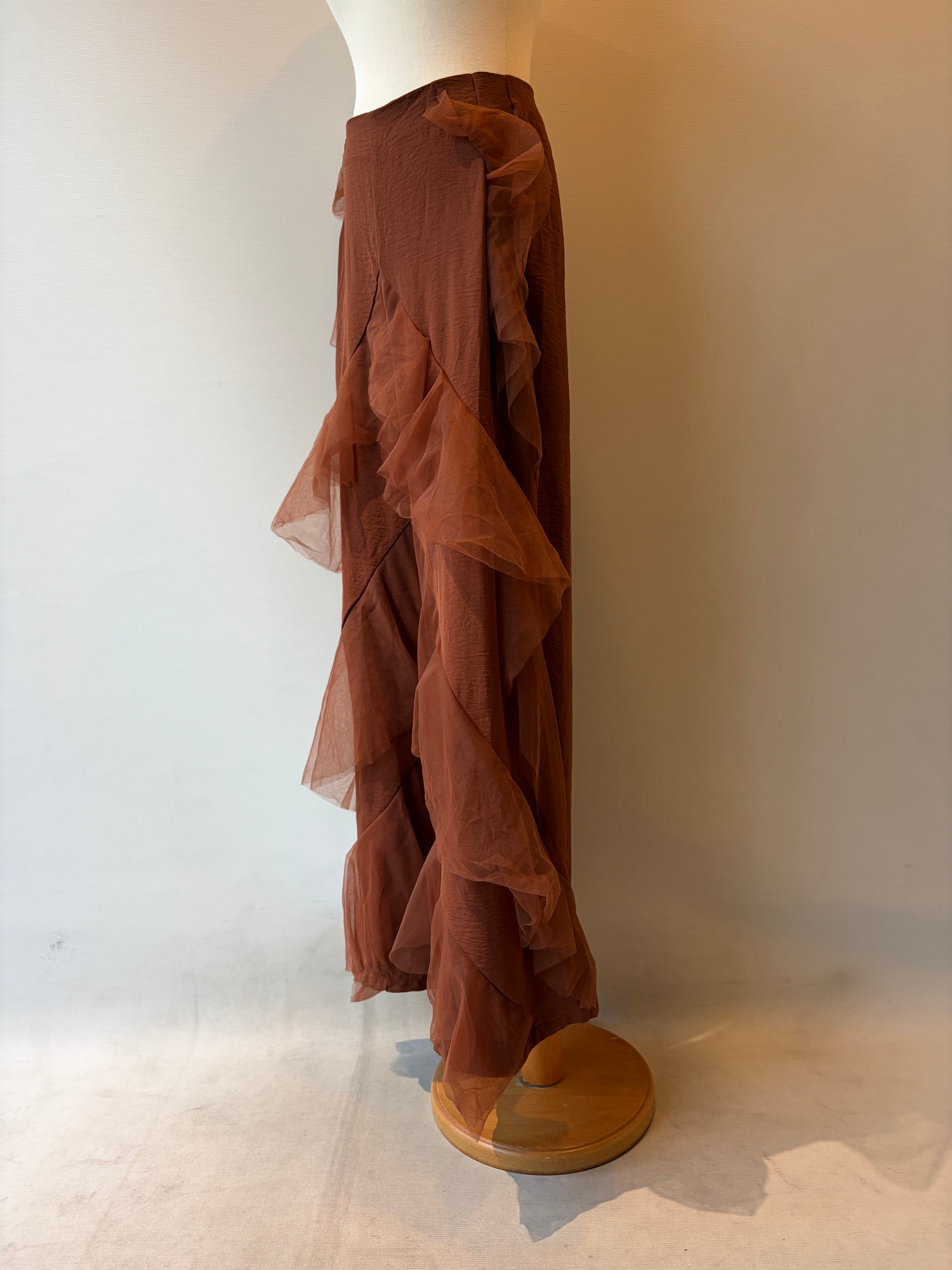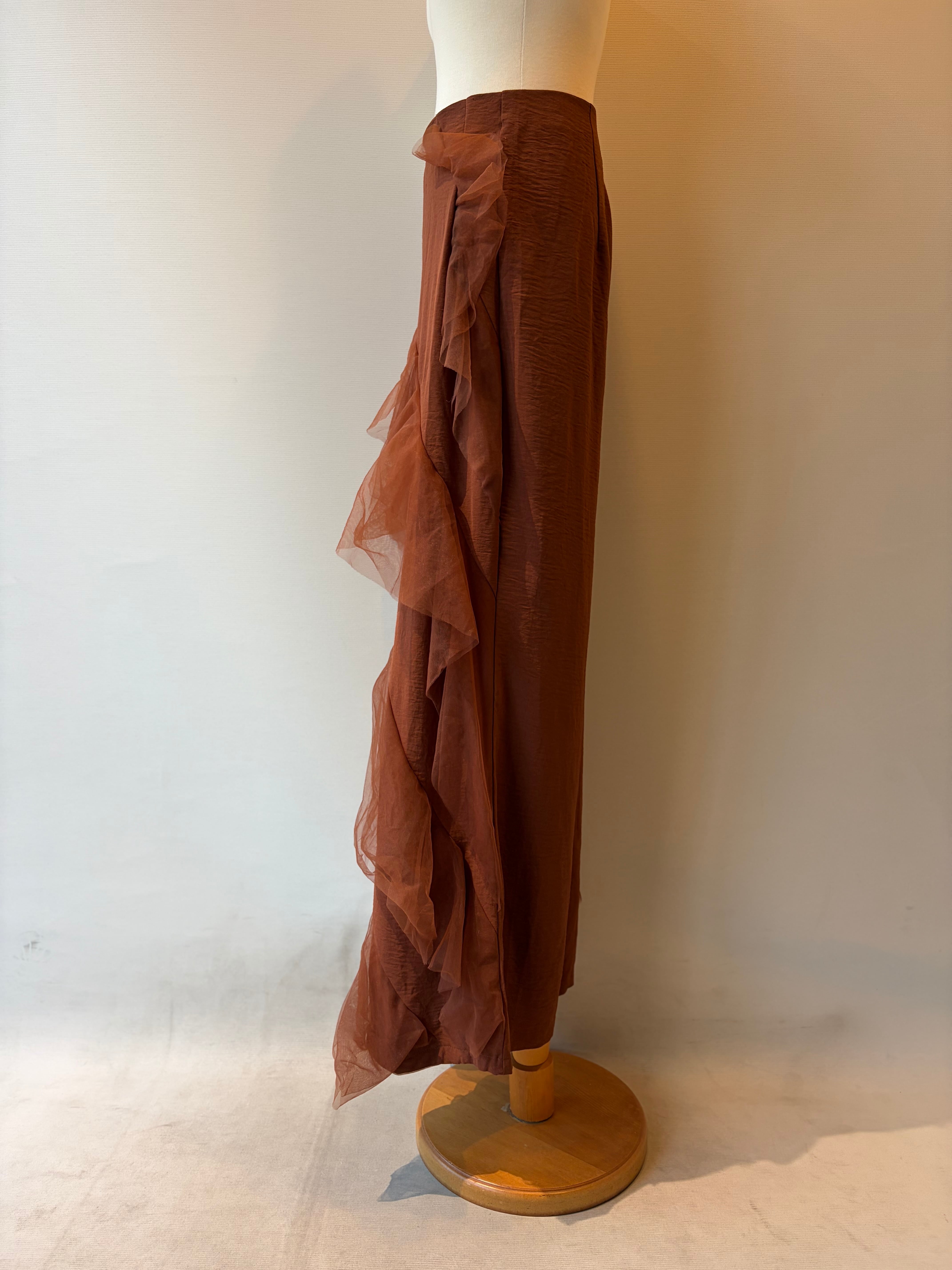 チュールが規則的に仕立てられたレディースらしいパンツ。