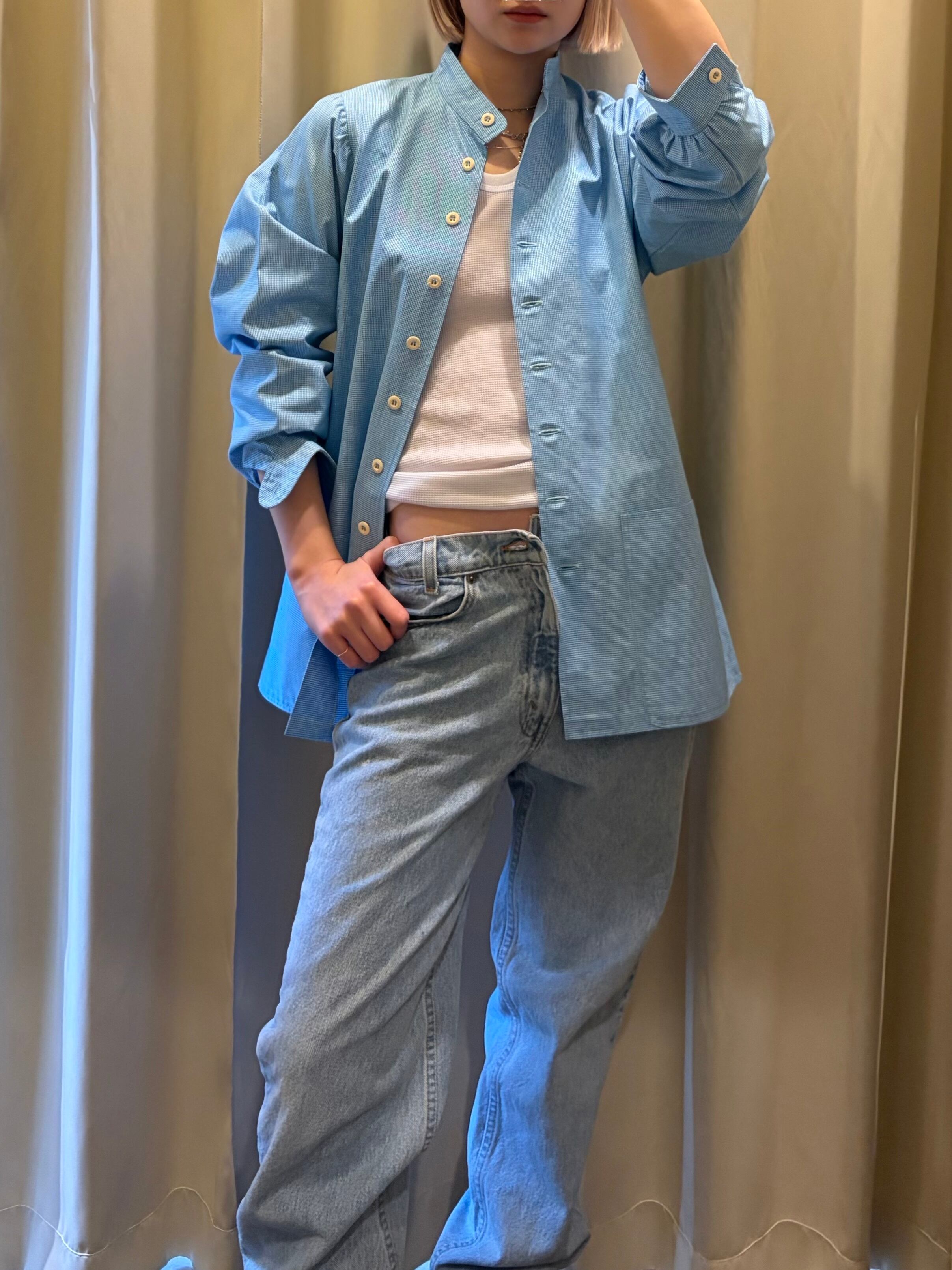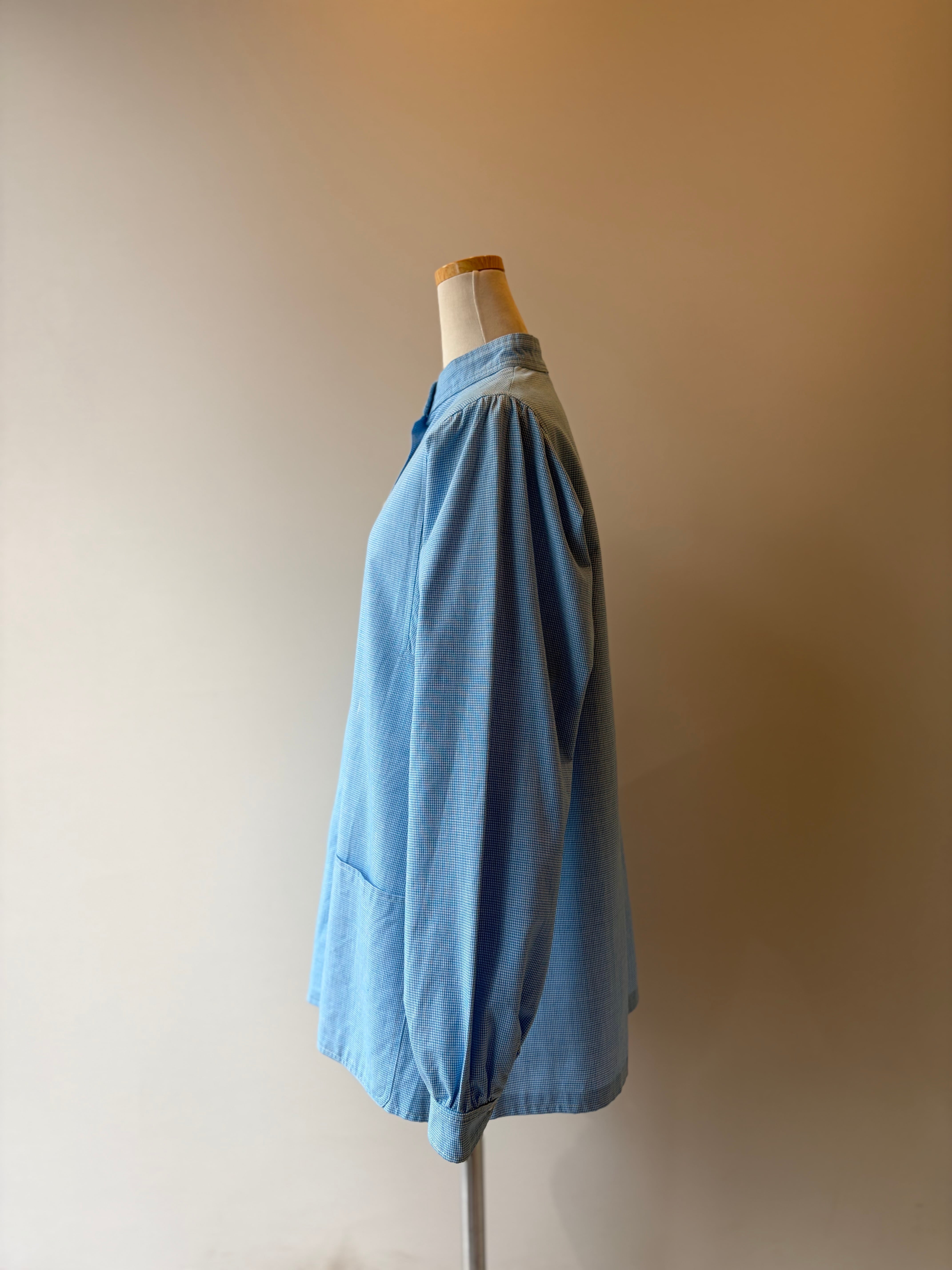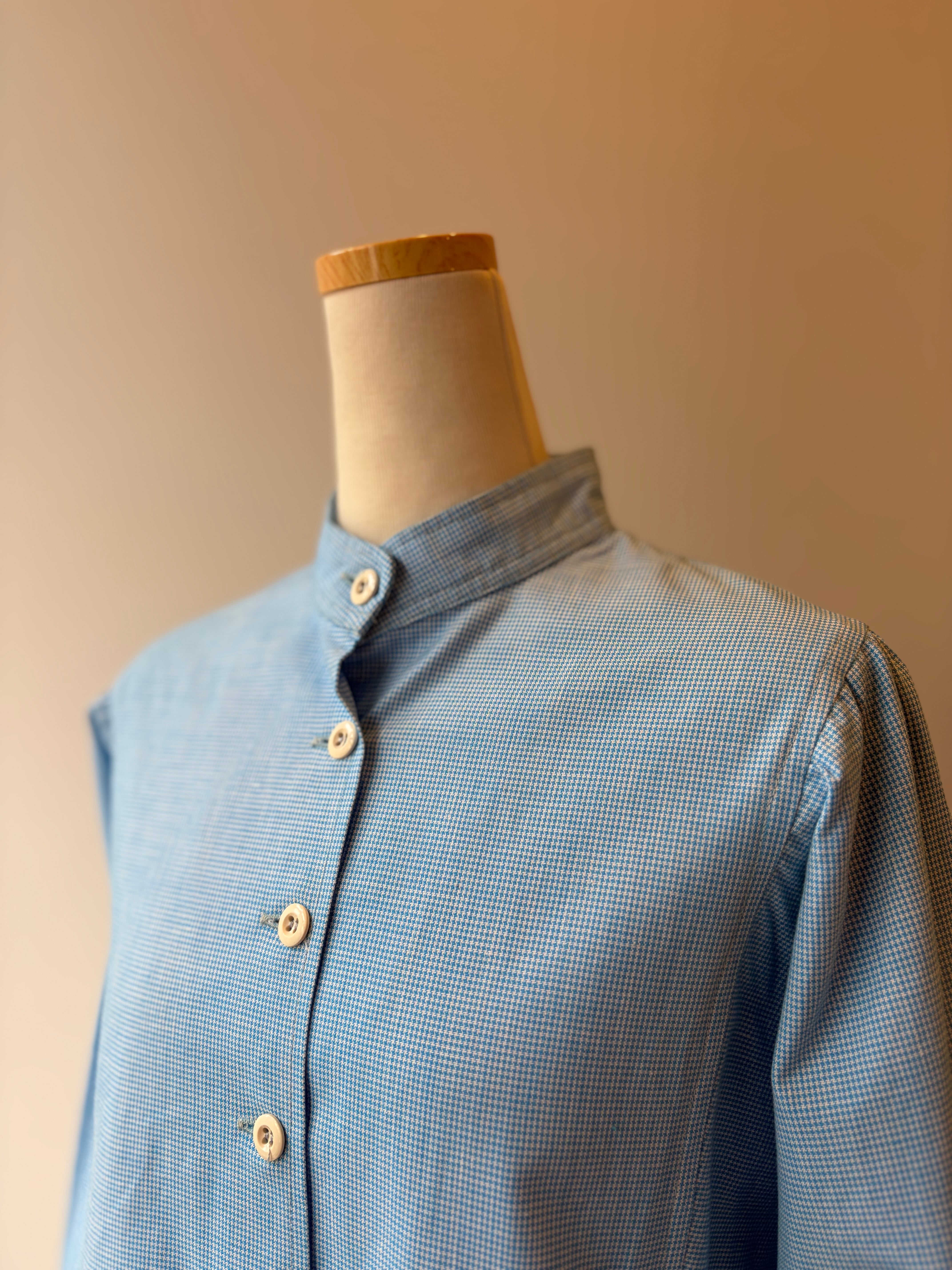 70-80s artal hound's-tooth band collar shirt