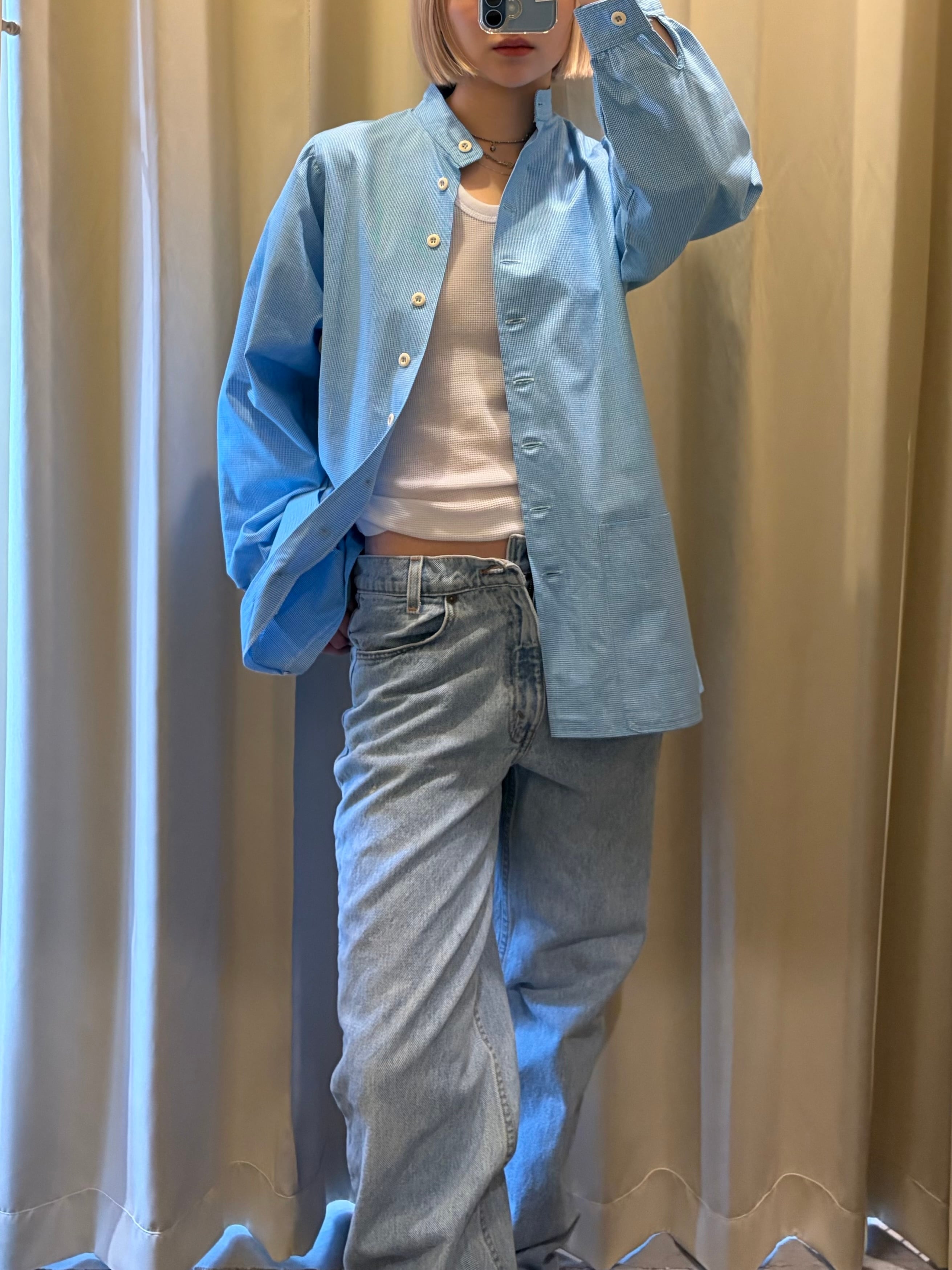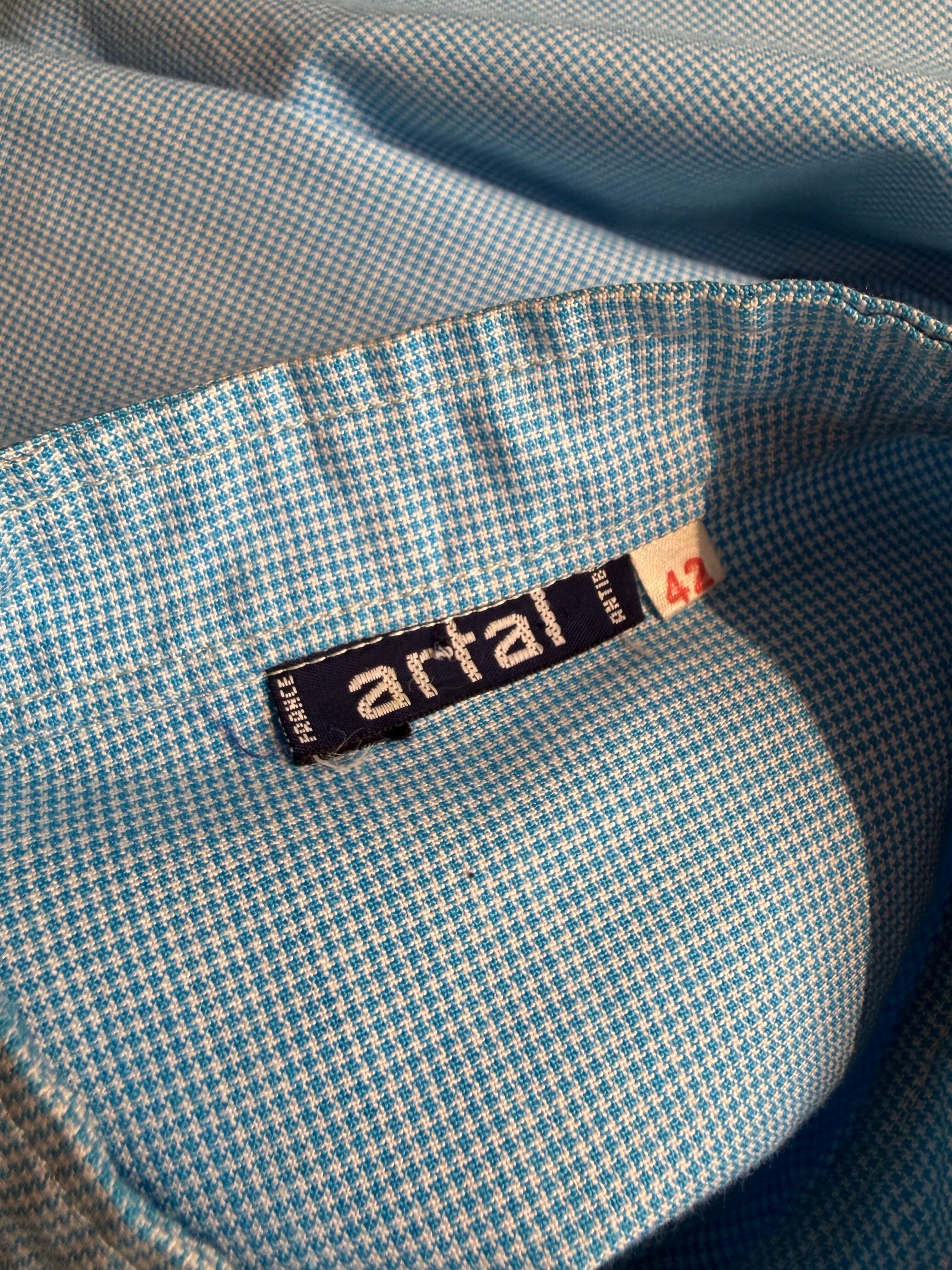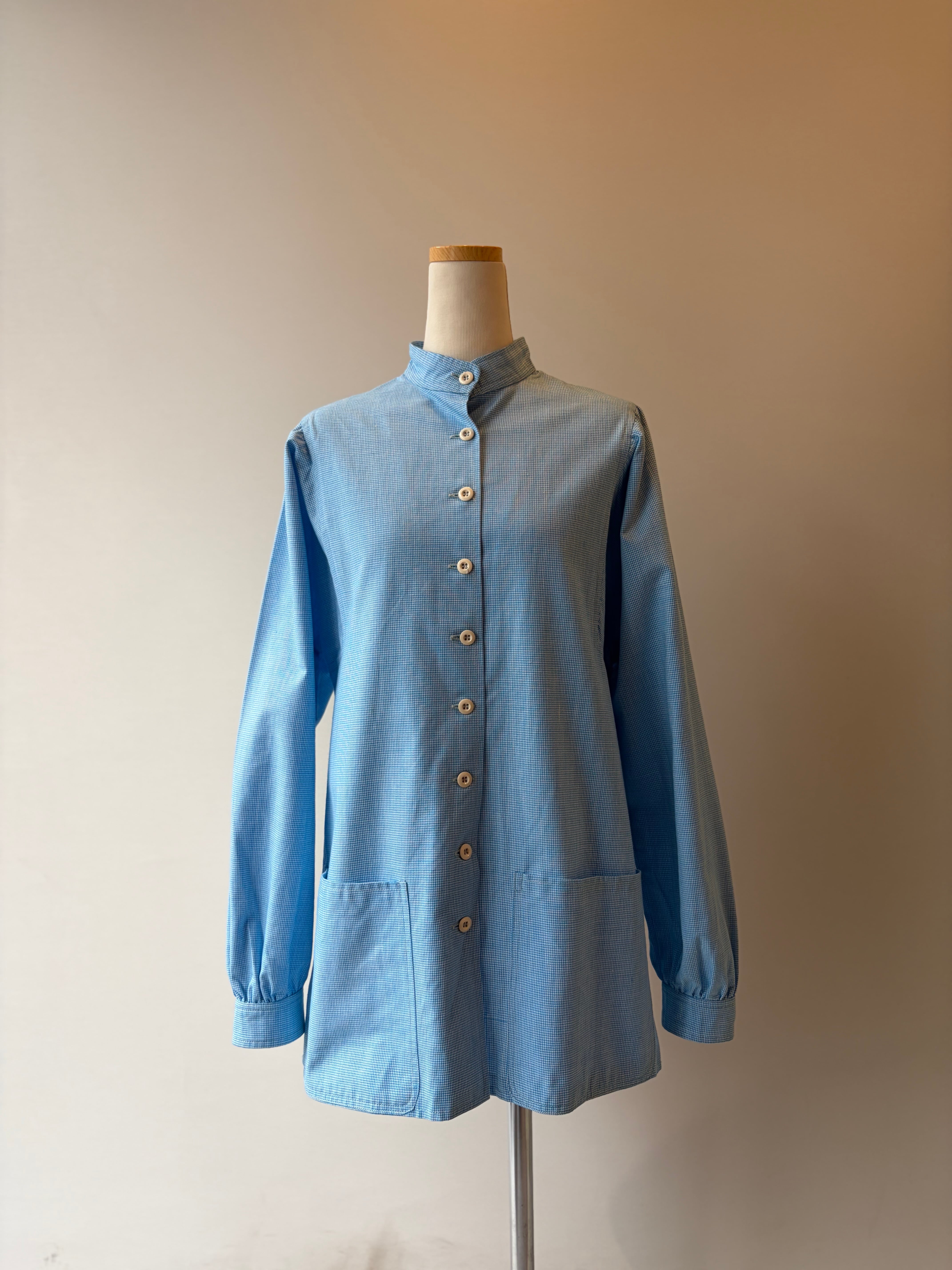 70-80s artal hound's-tooth band collar shirt