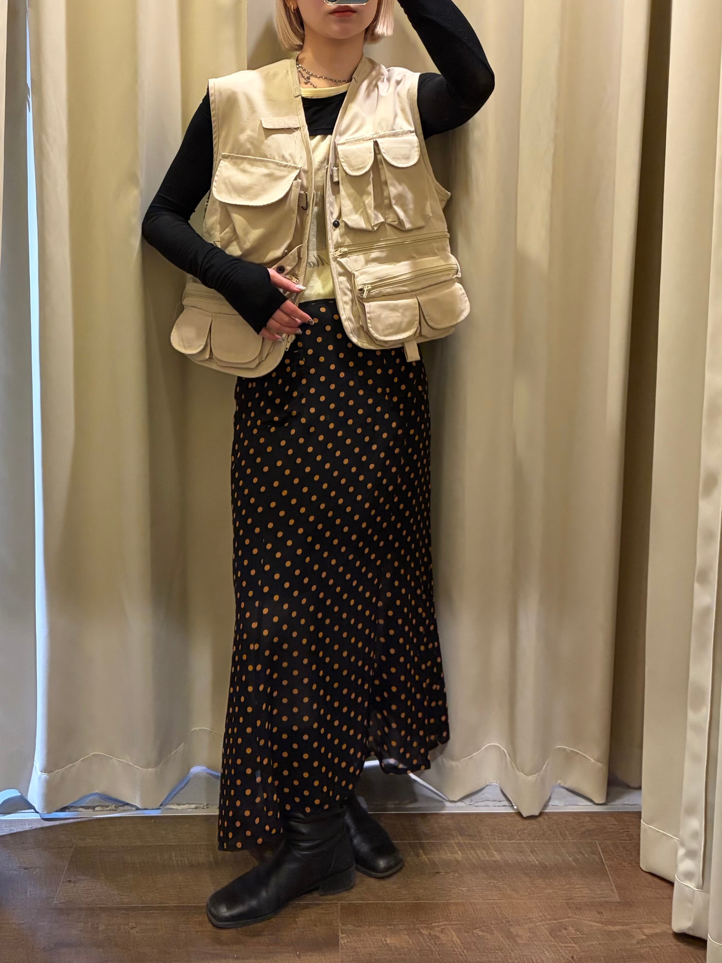 dot pattern see-through flare skirt
