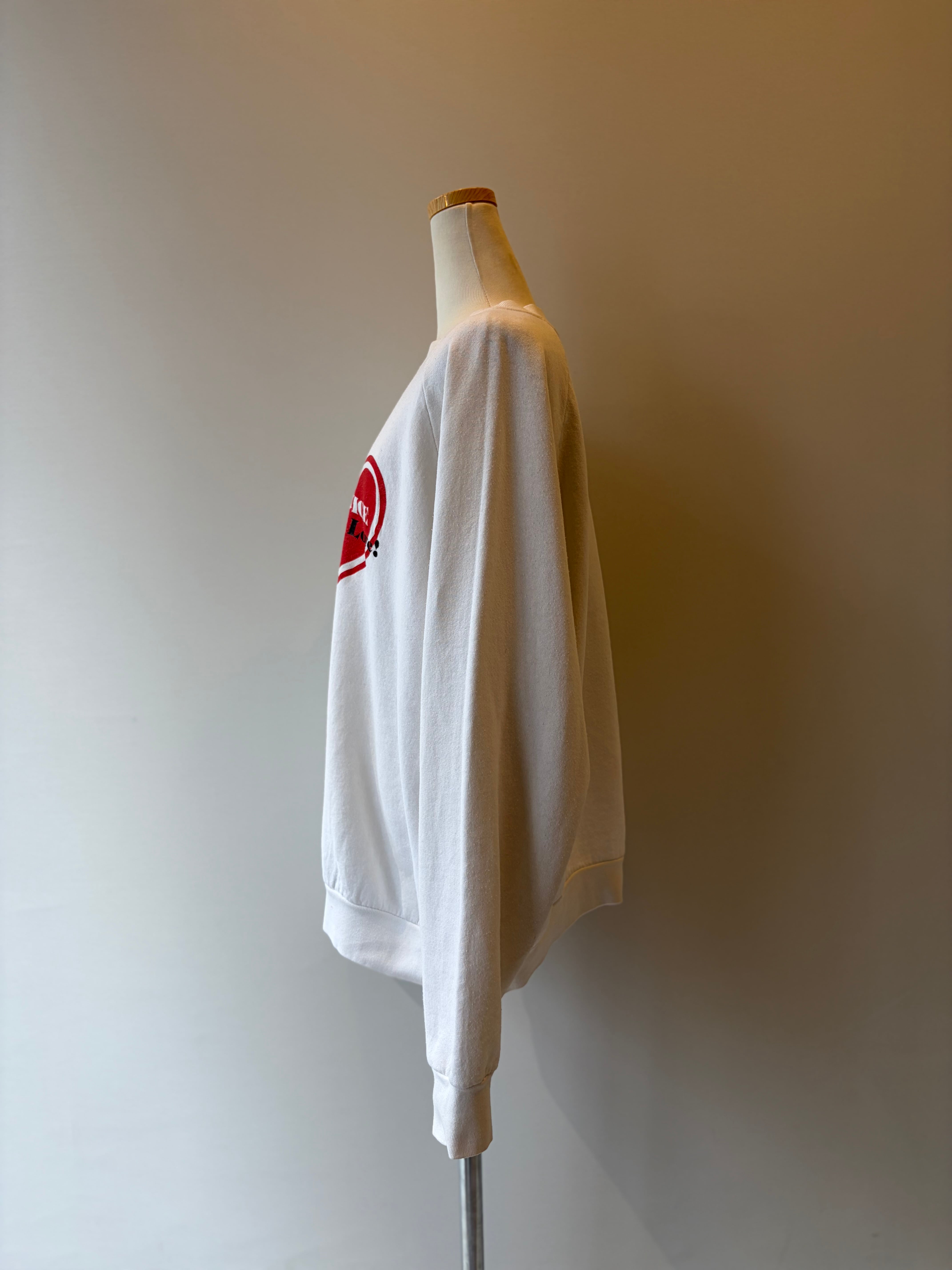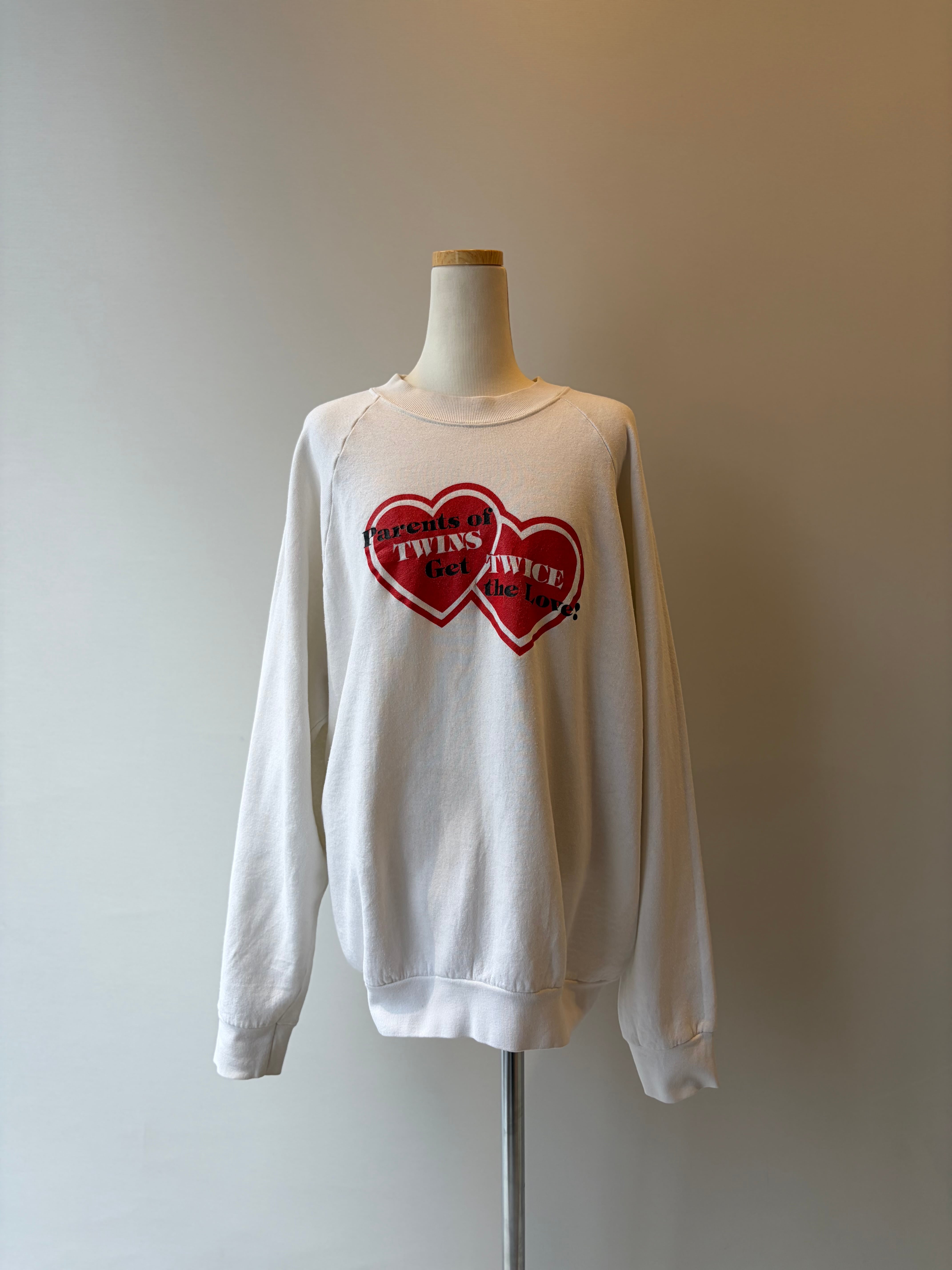 ハート型にメッセージのプリントがされた愛らしいスウェット。