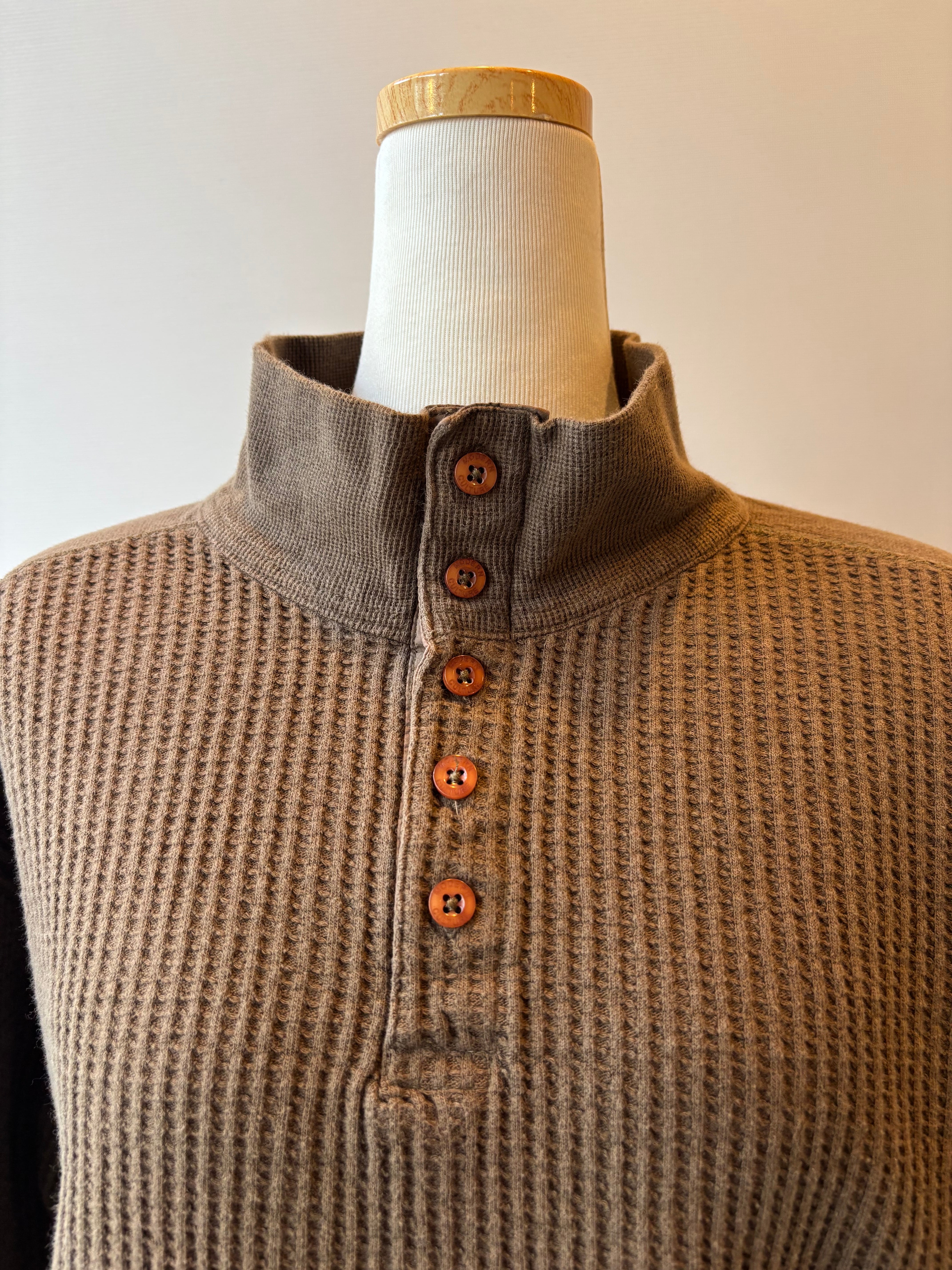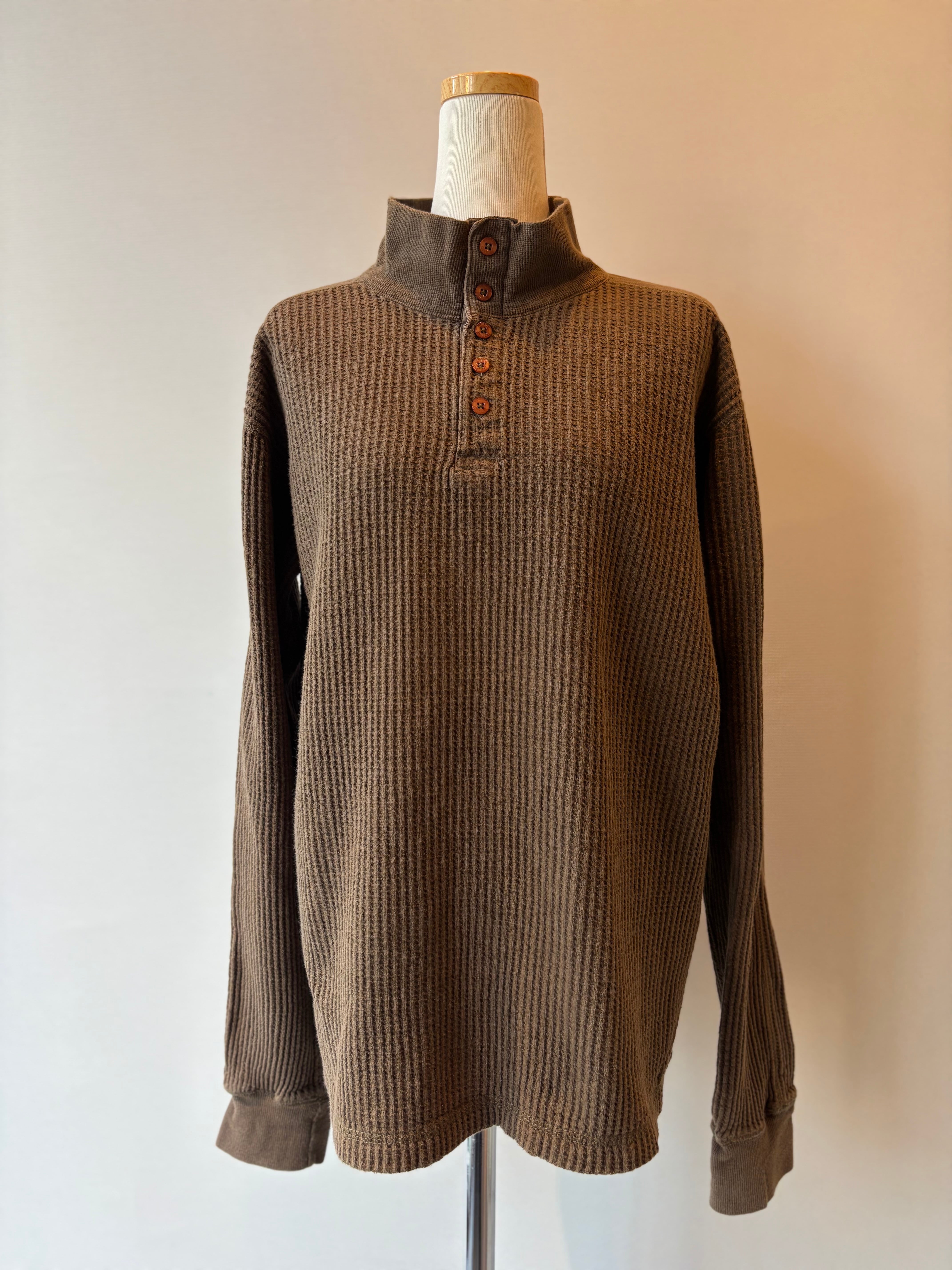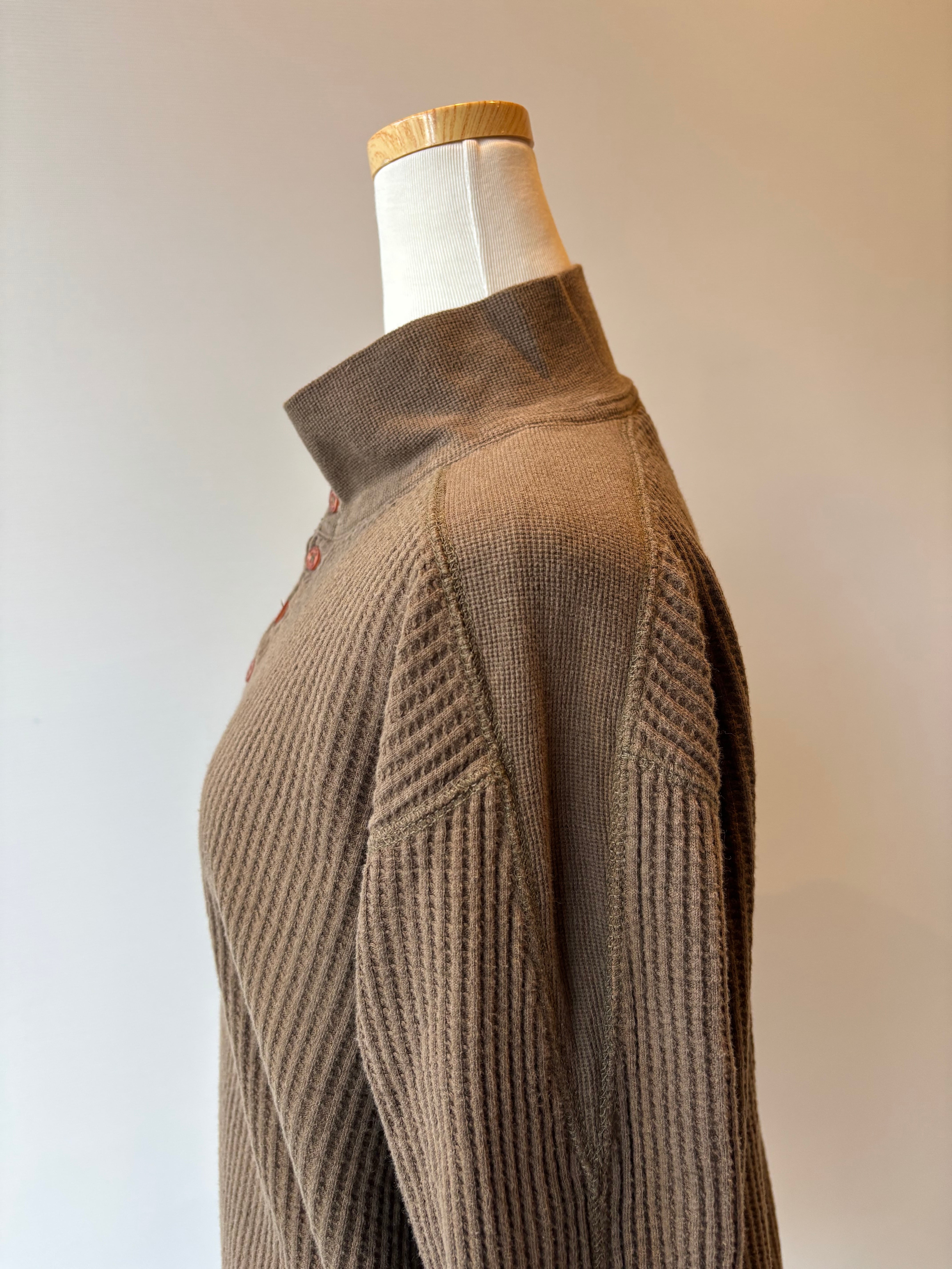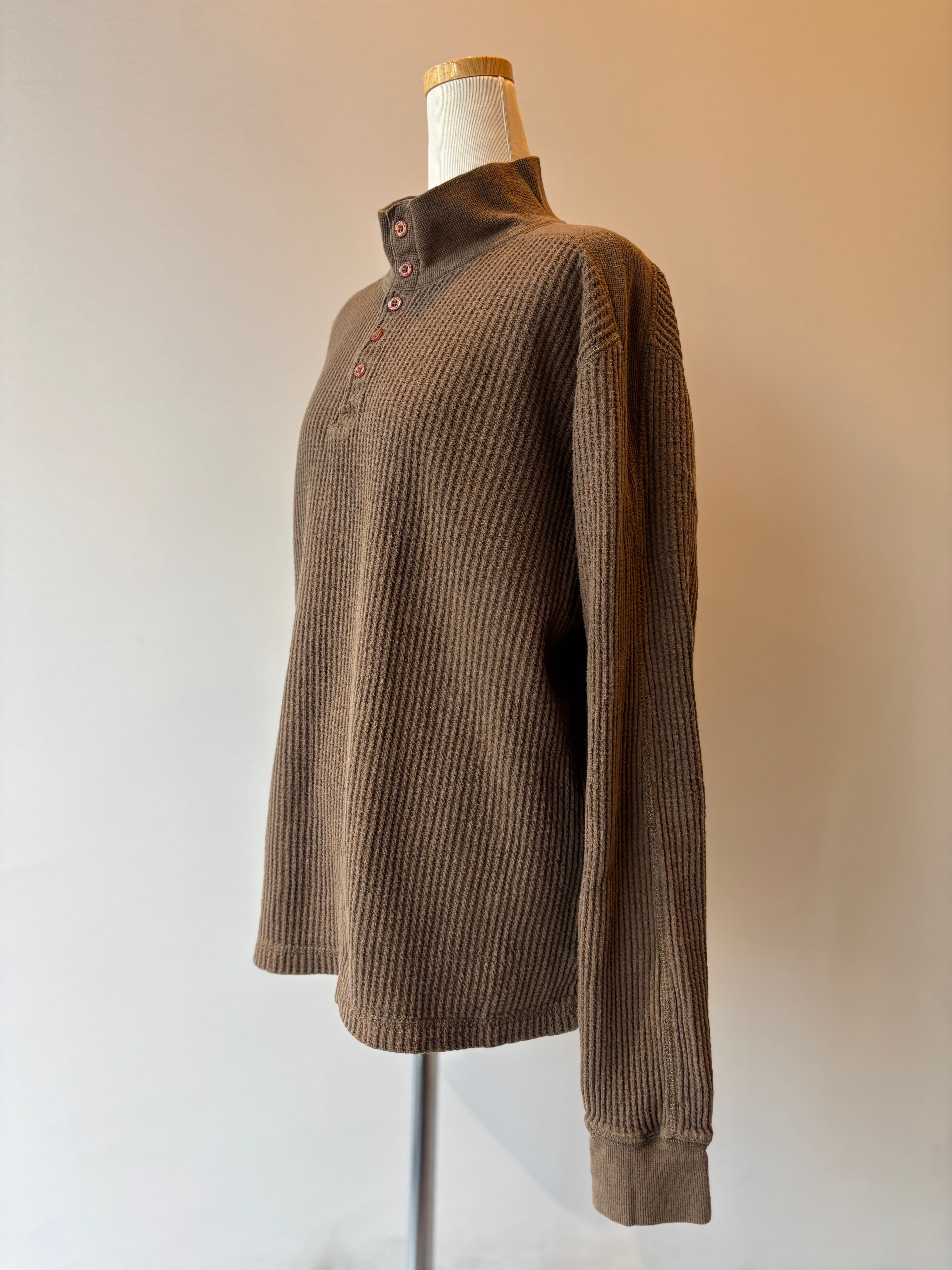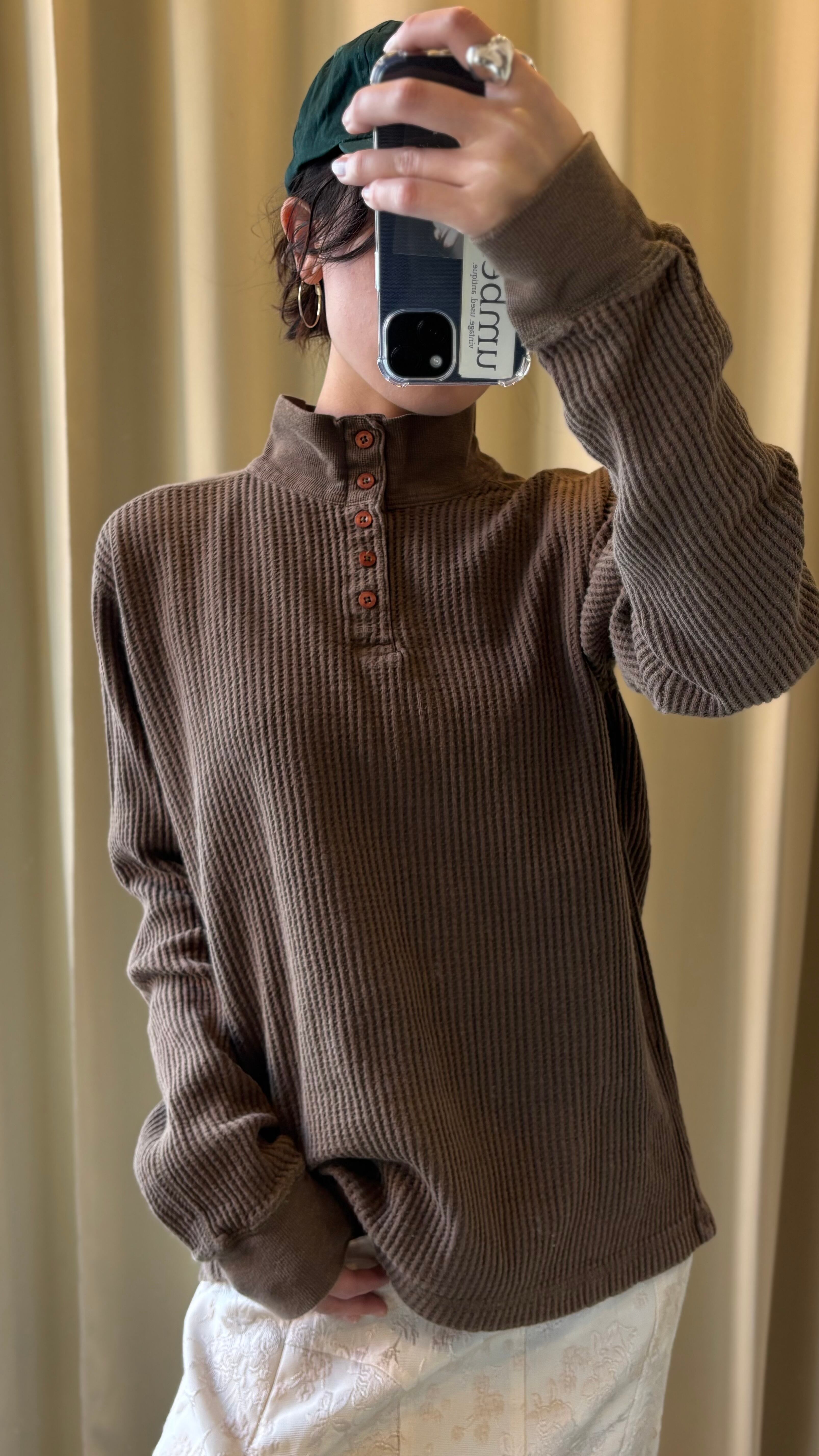 waffle knit half botton high neck long sleeve top