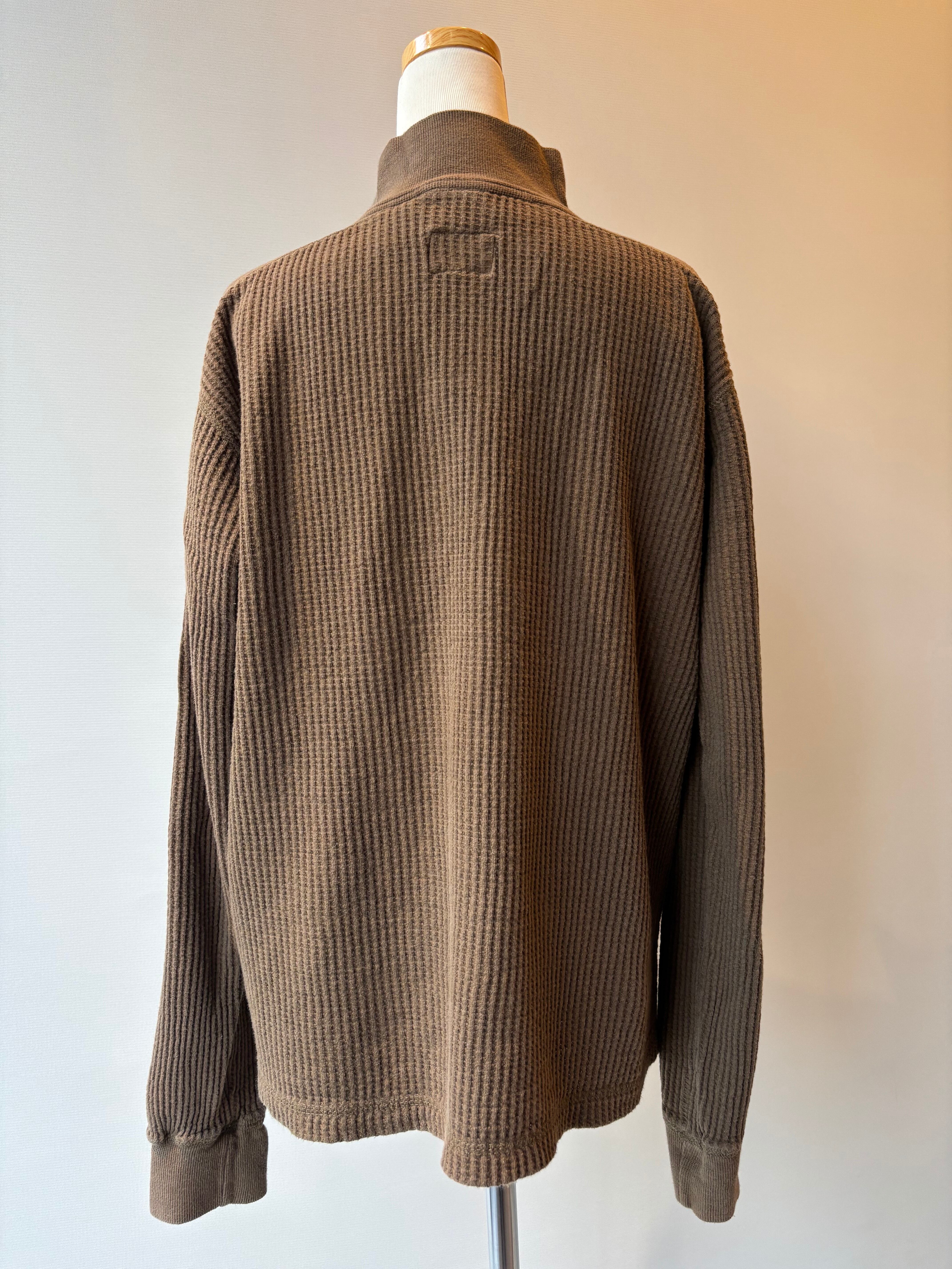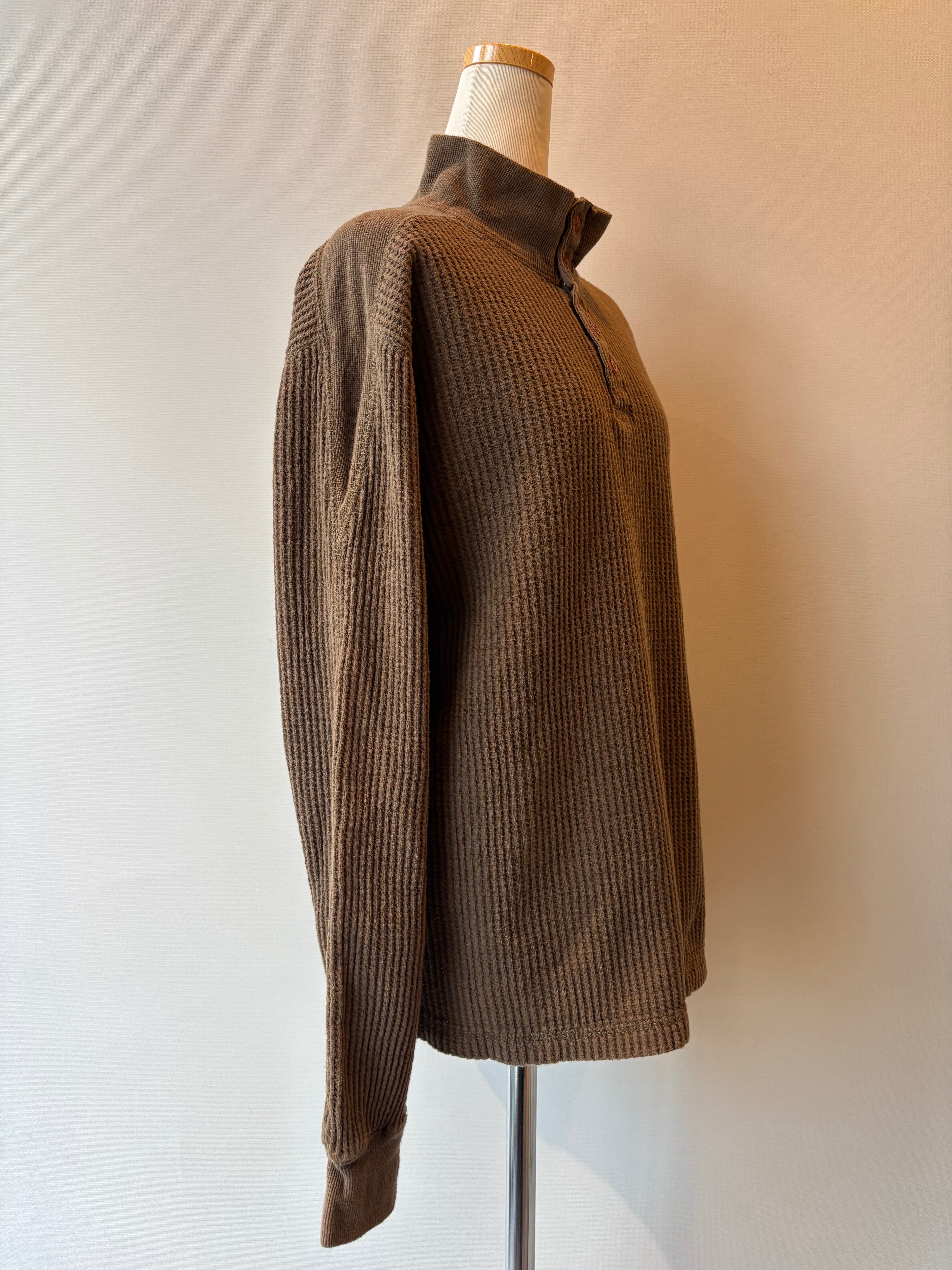 ワッフル素材のロングスリープトップス。