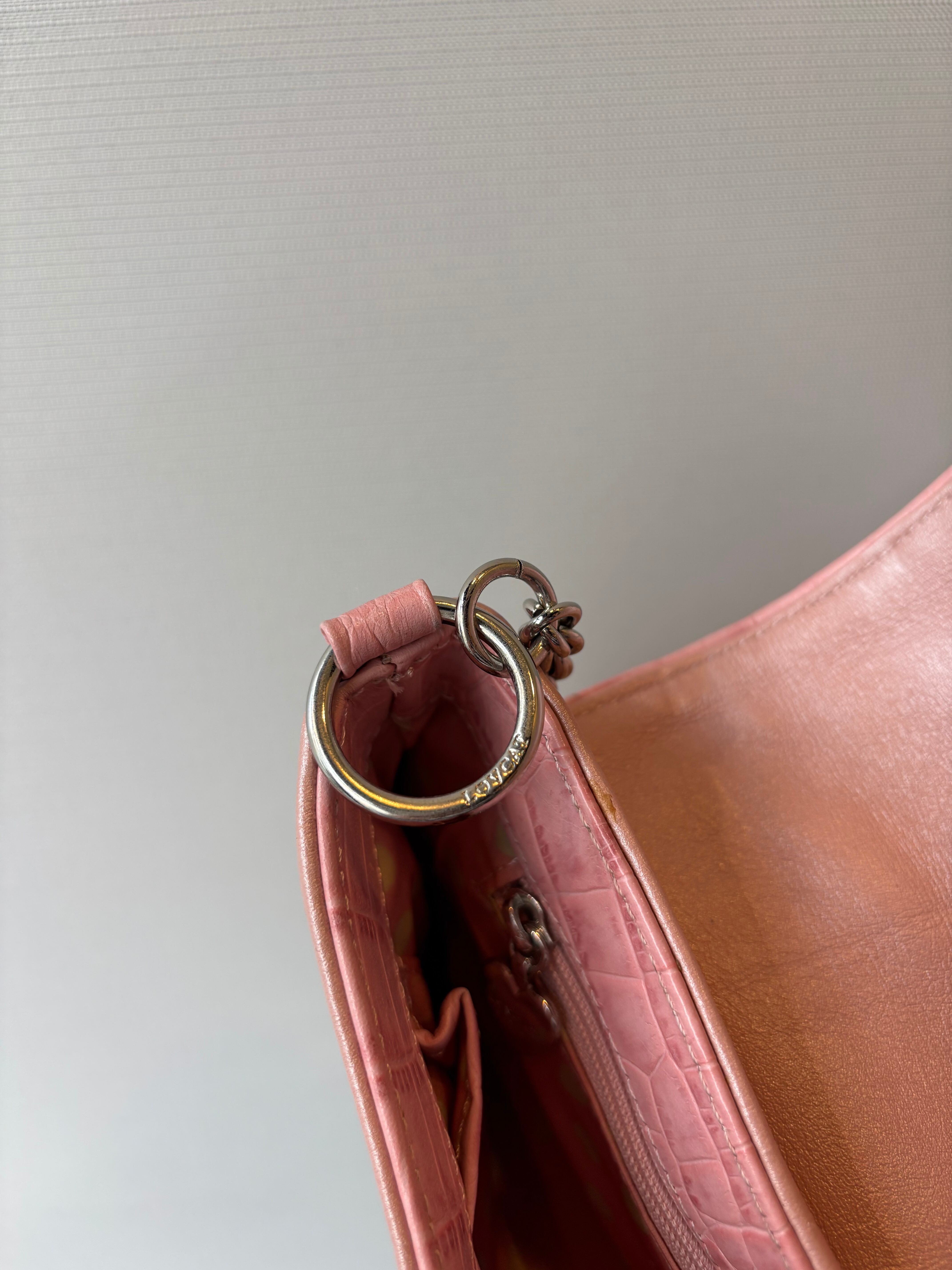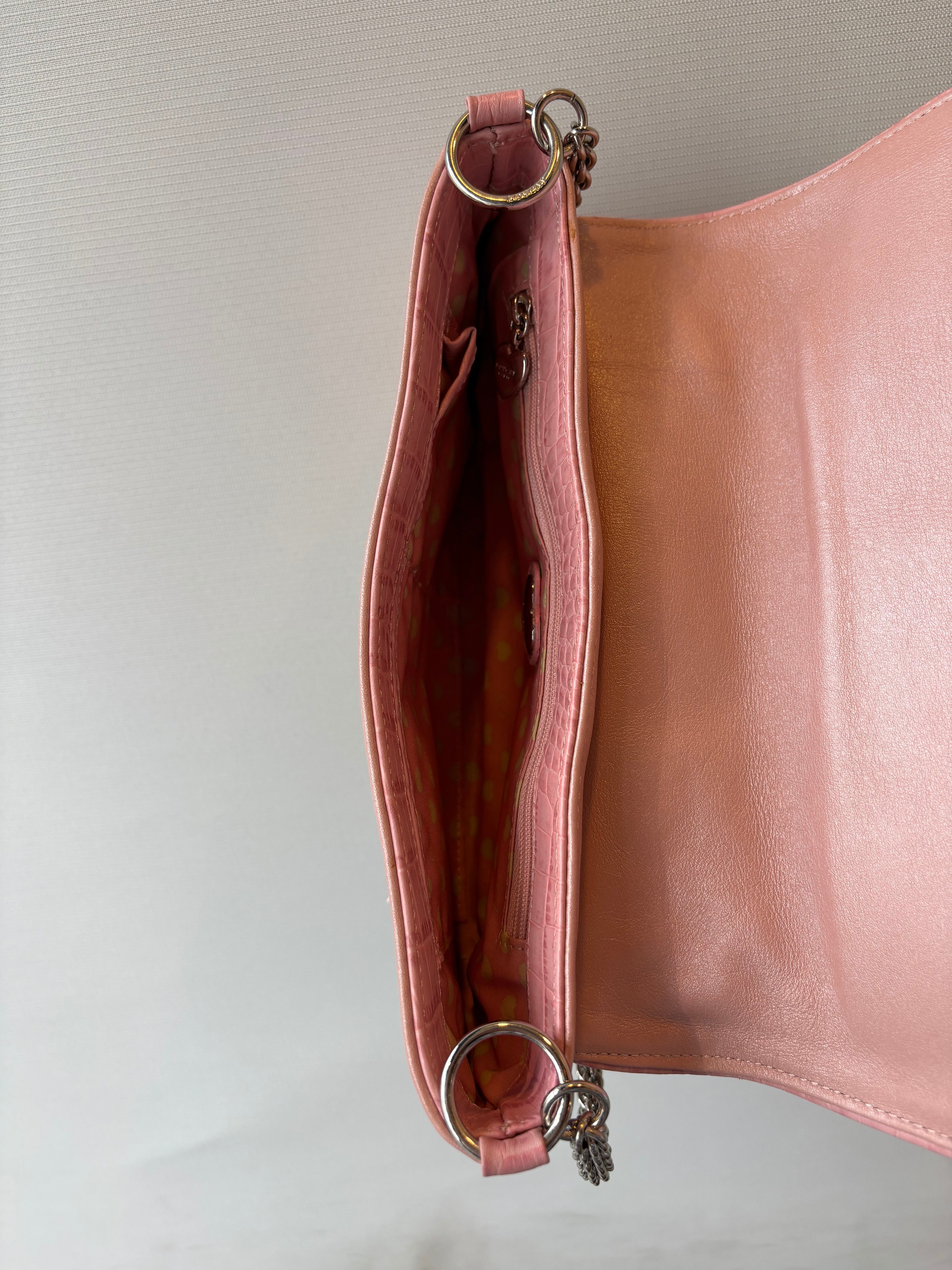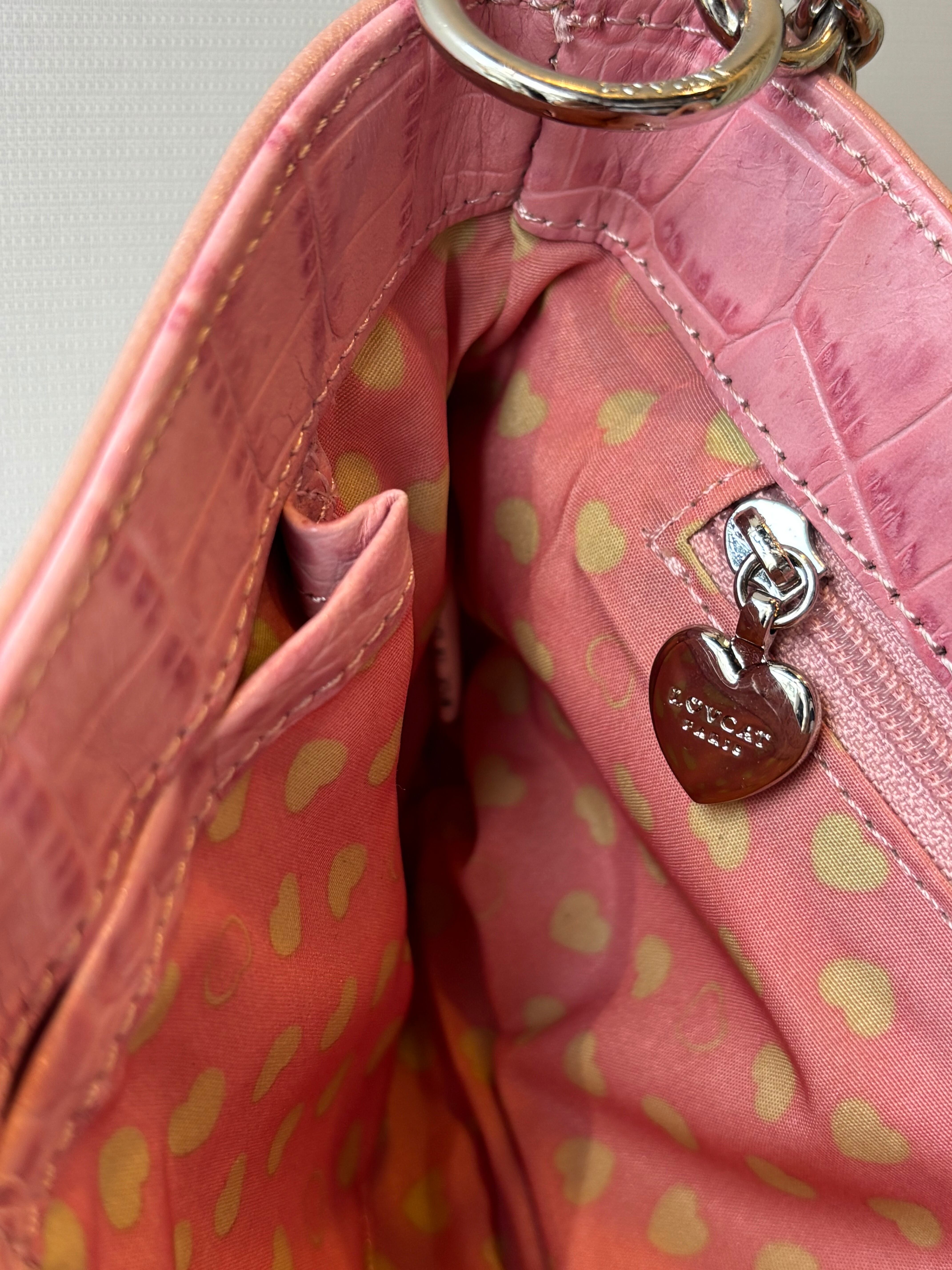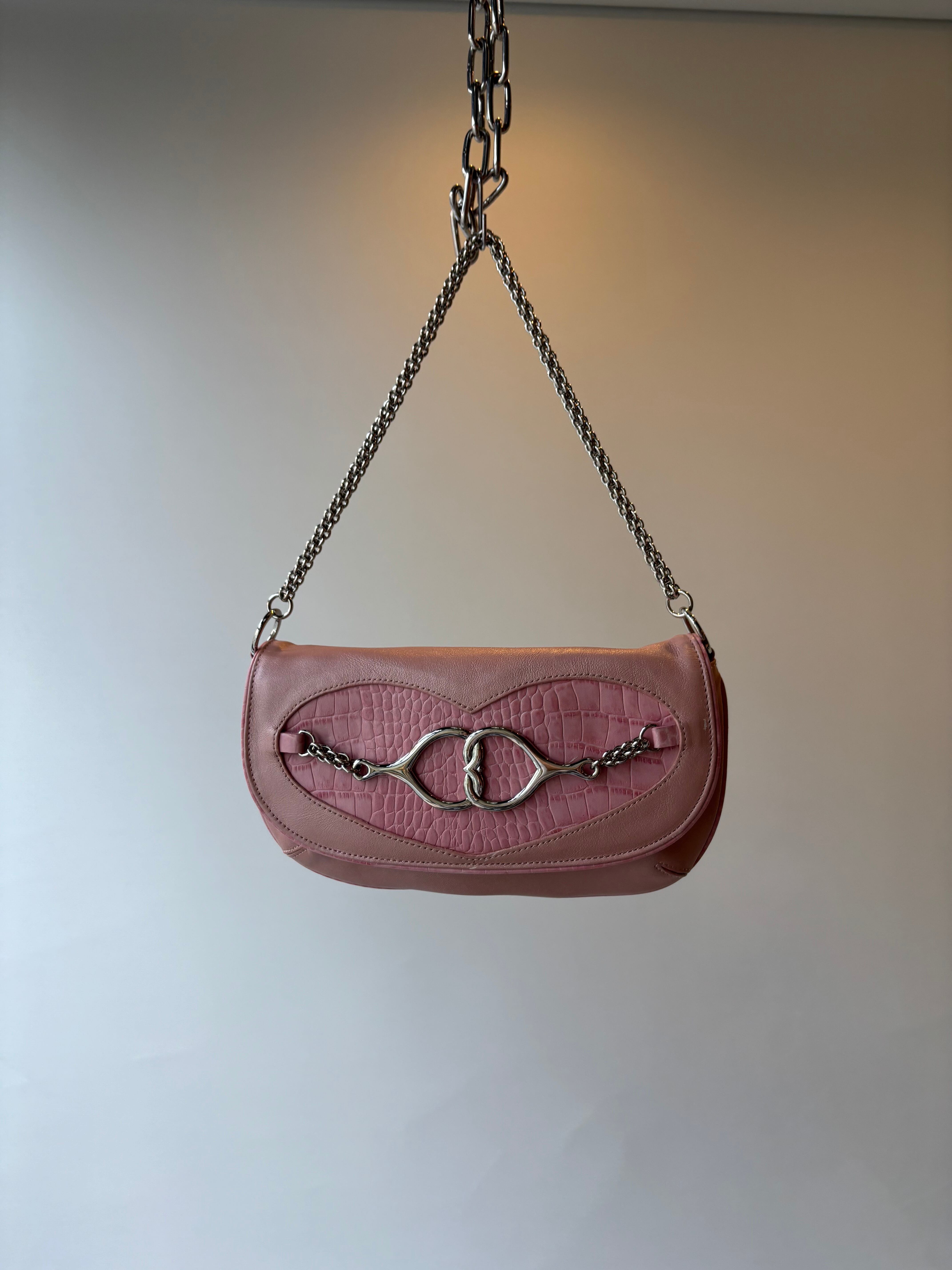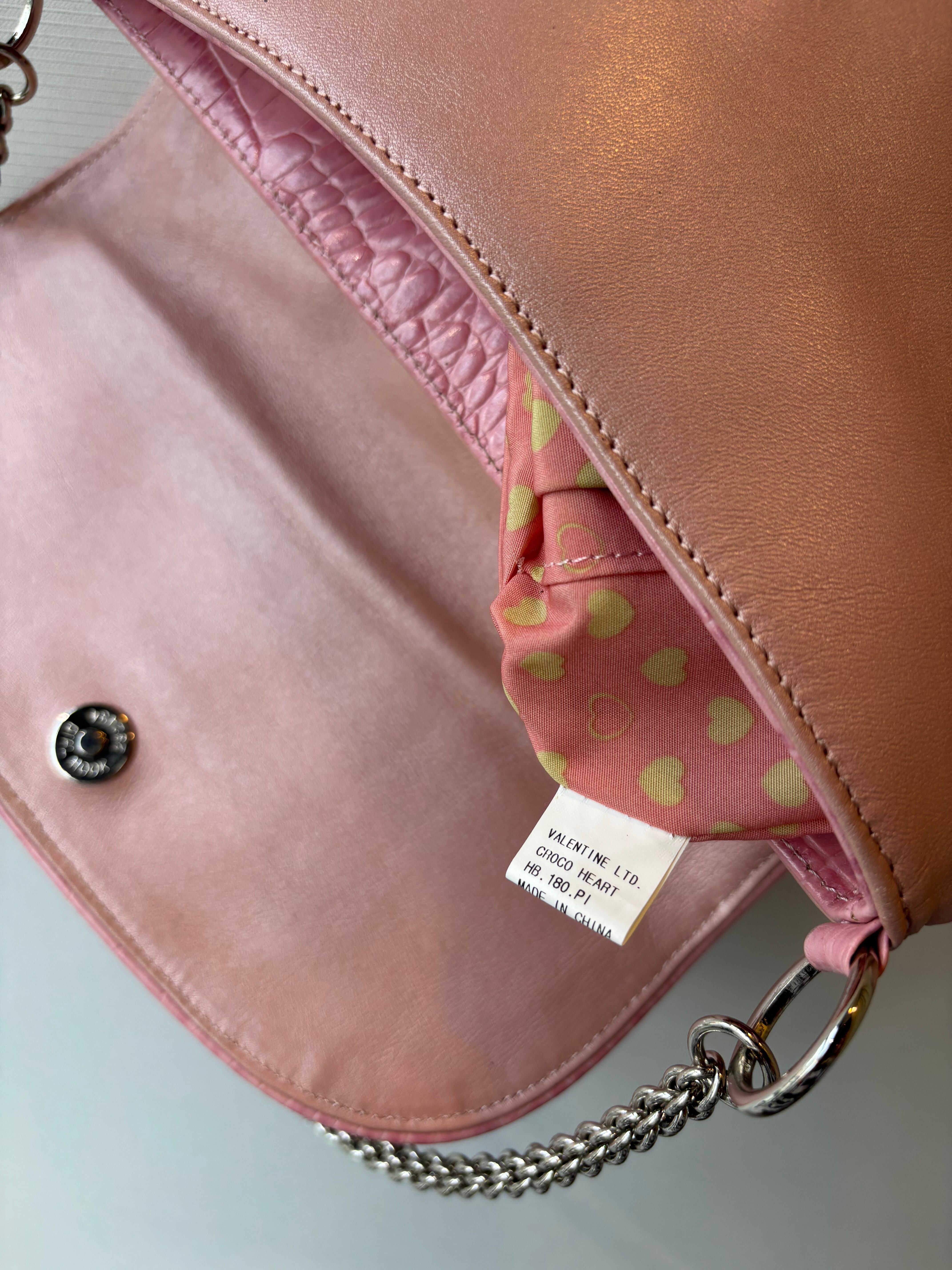 croco embossed heart chain shoulder bag