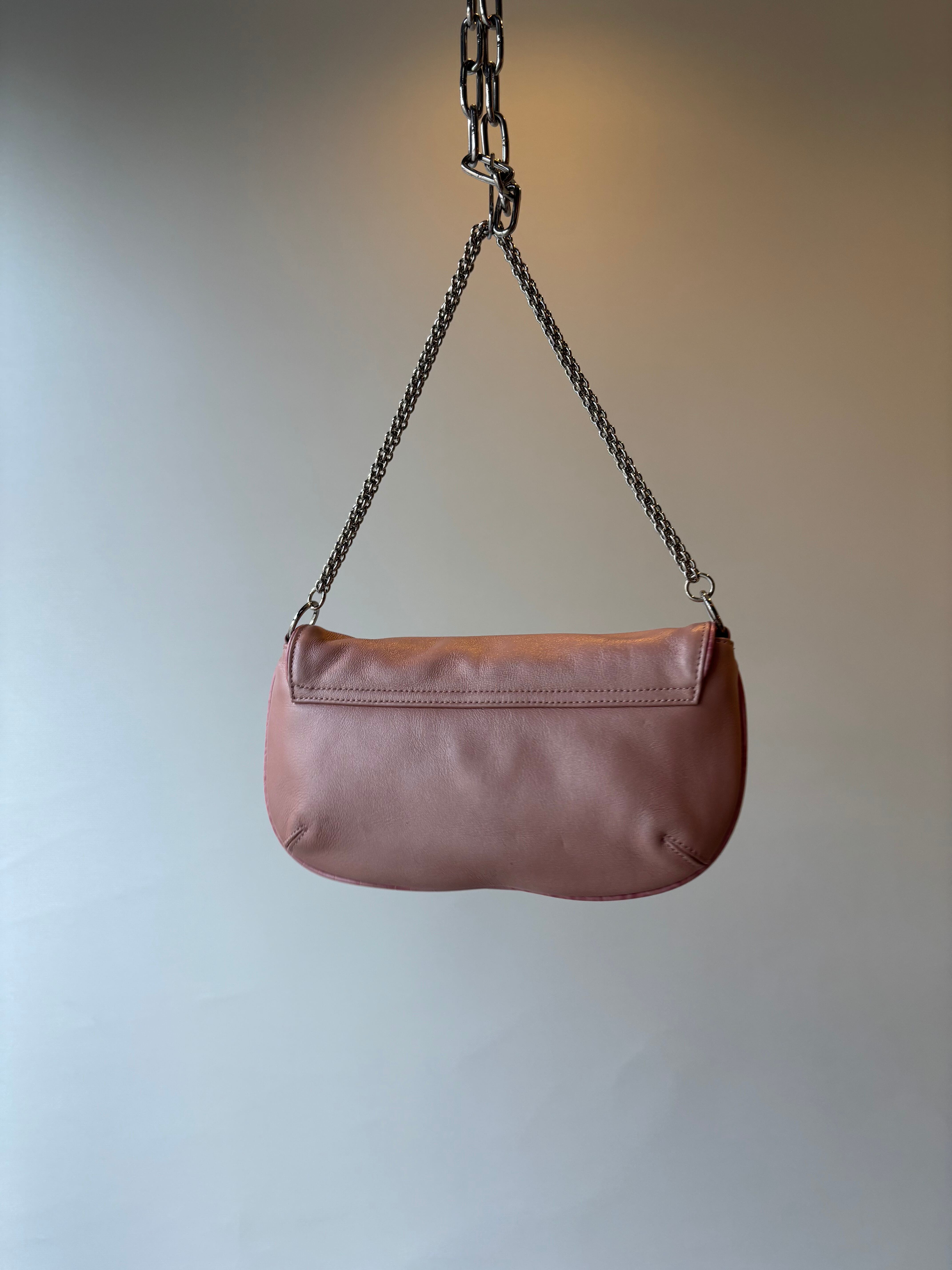 ピンクが映えるY2Kショルダーバッグ。