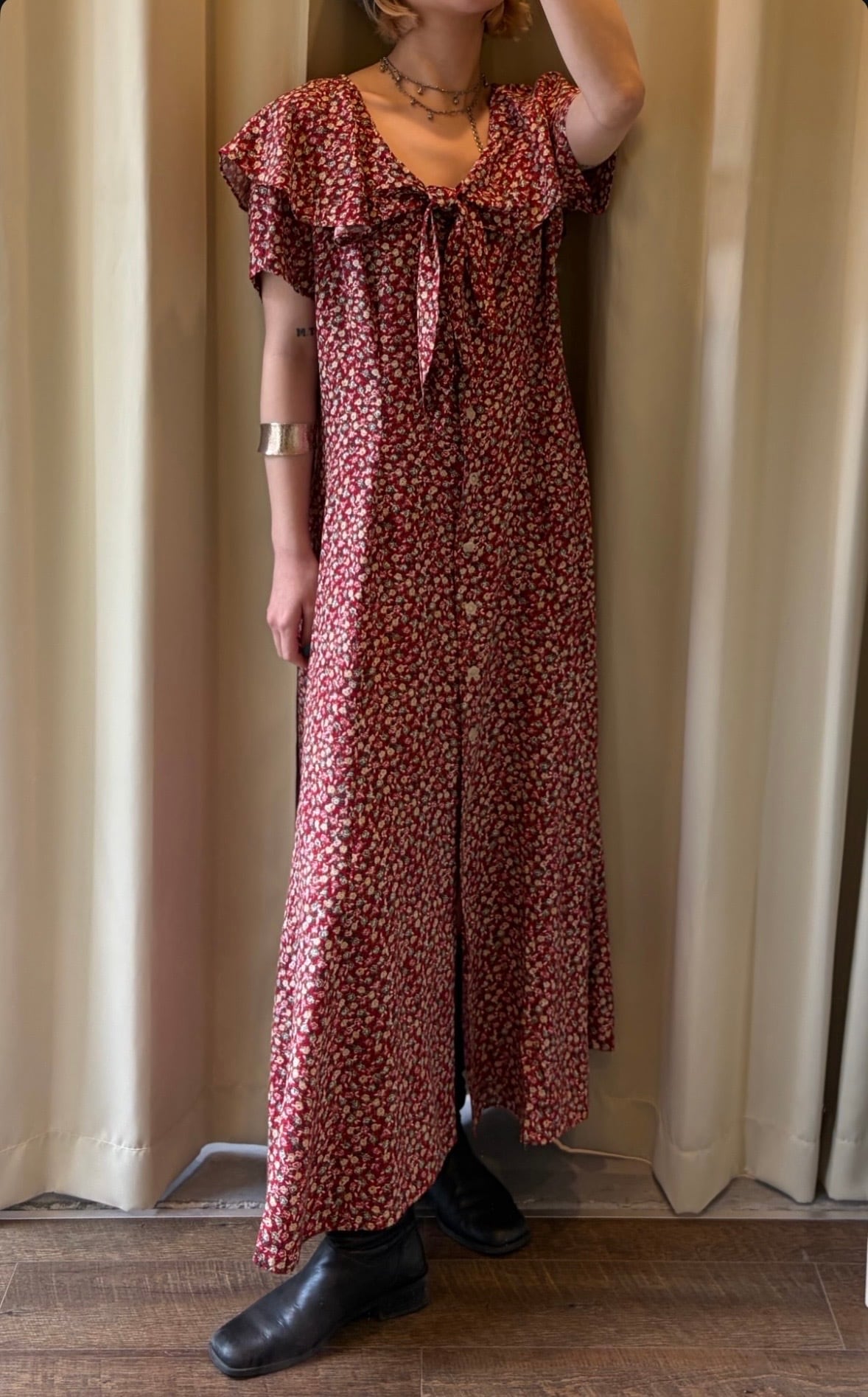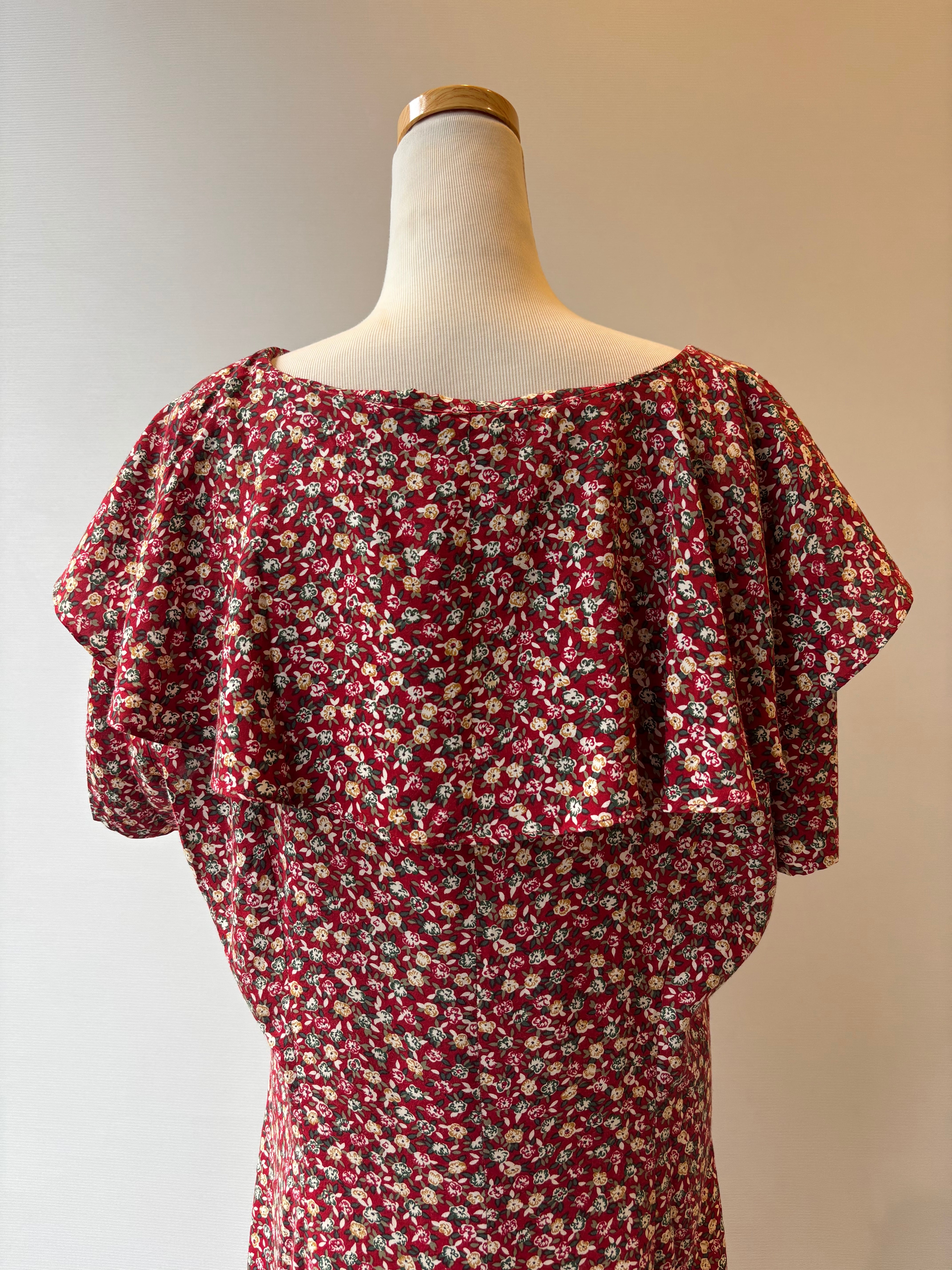 80s flower pattern rayon one piece