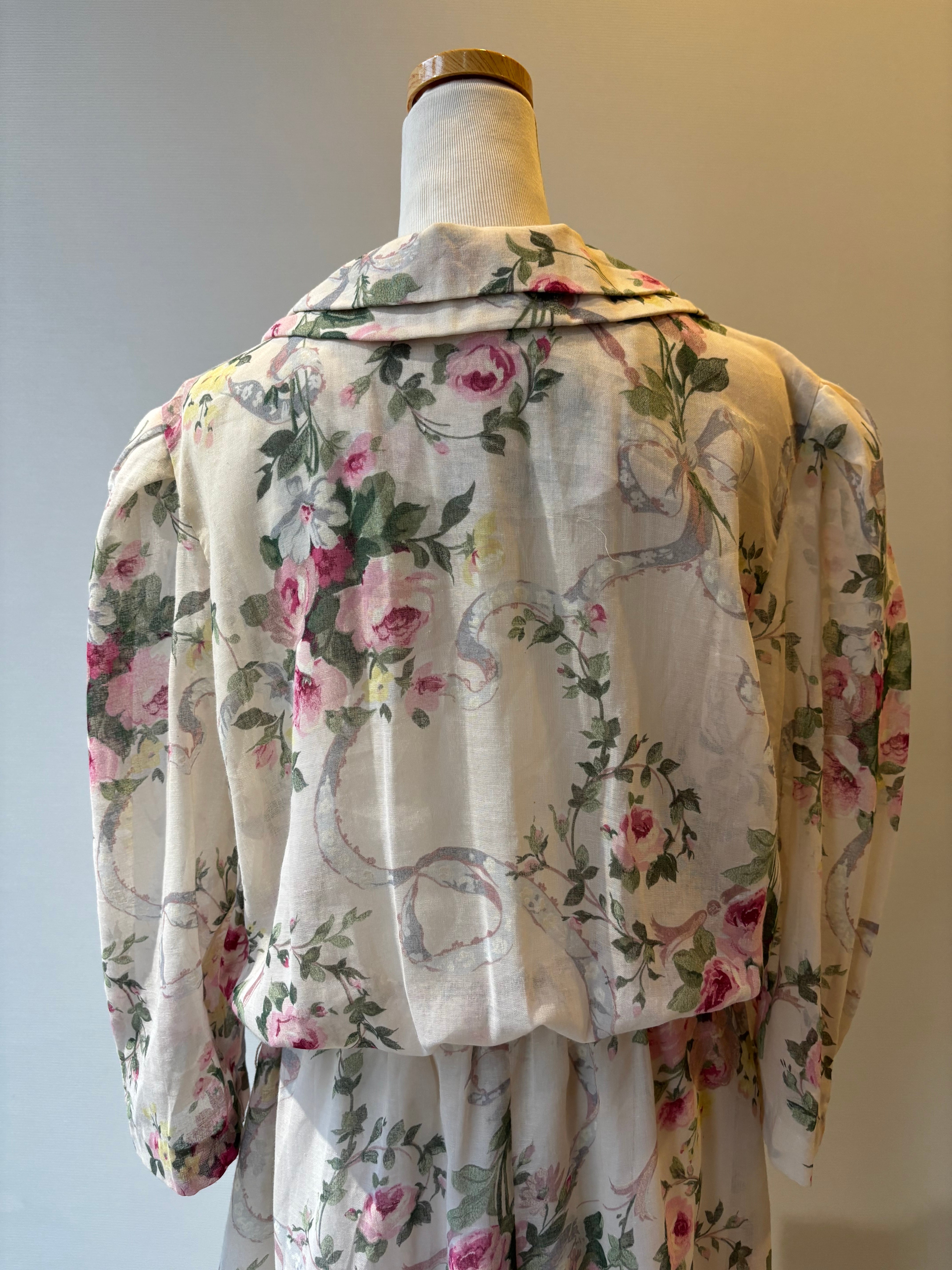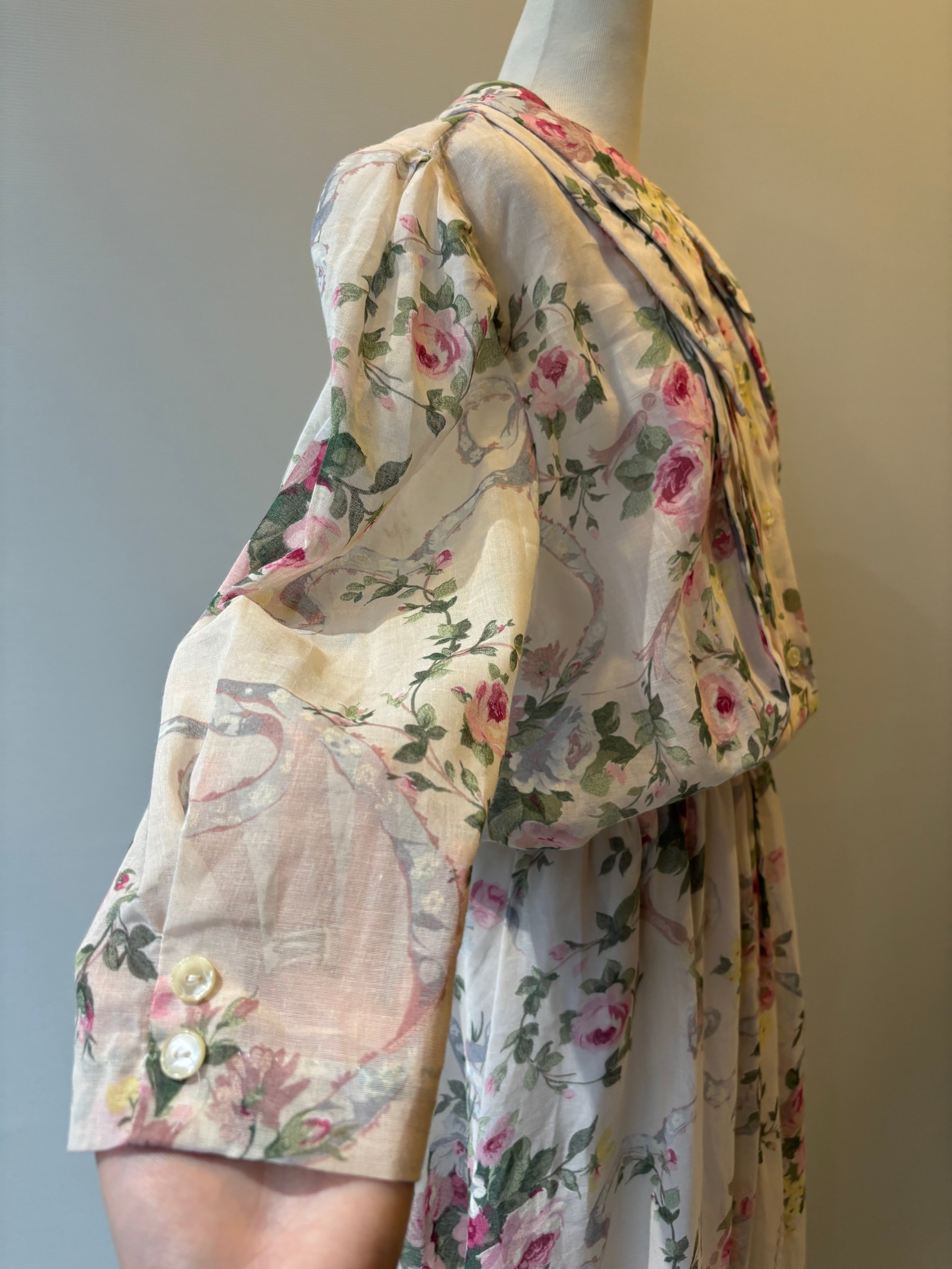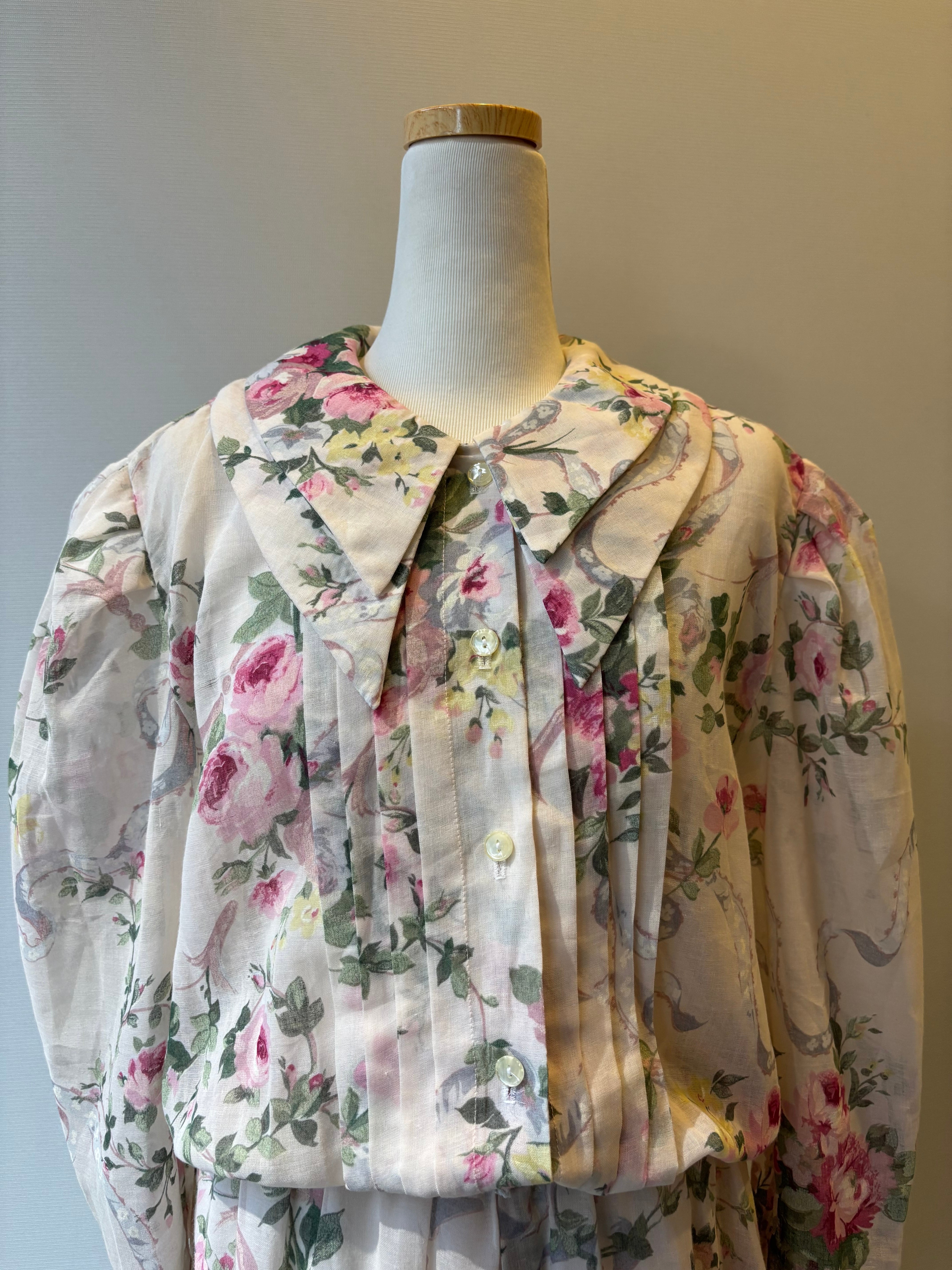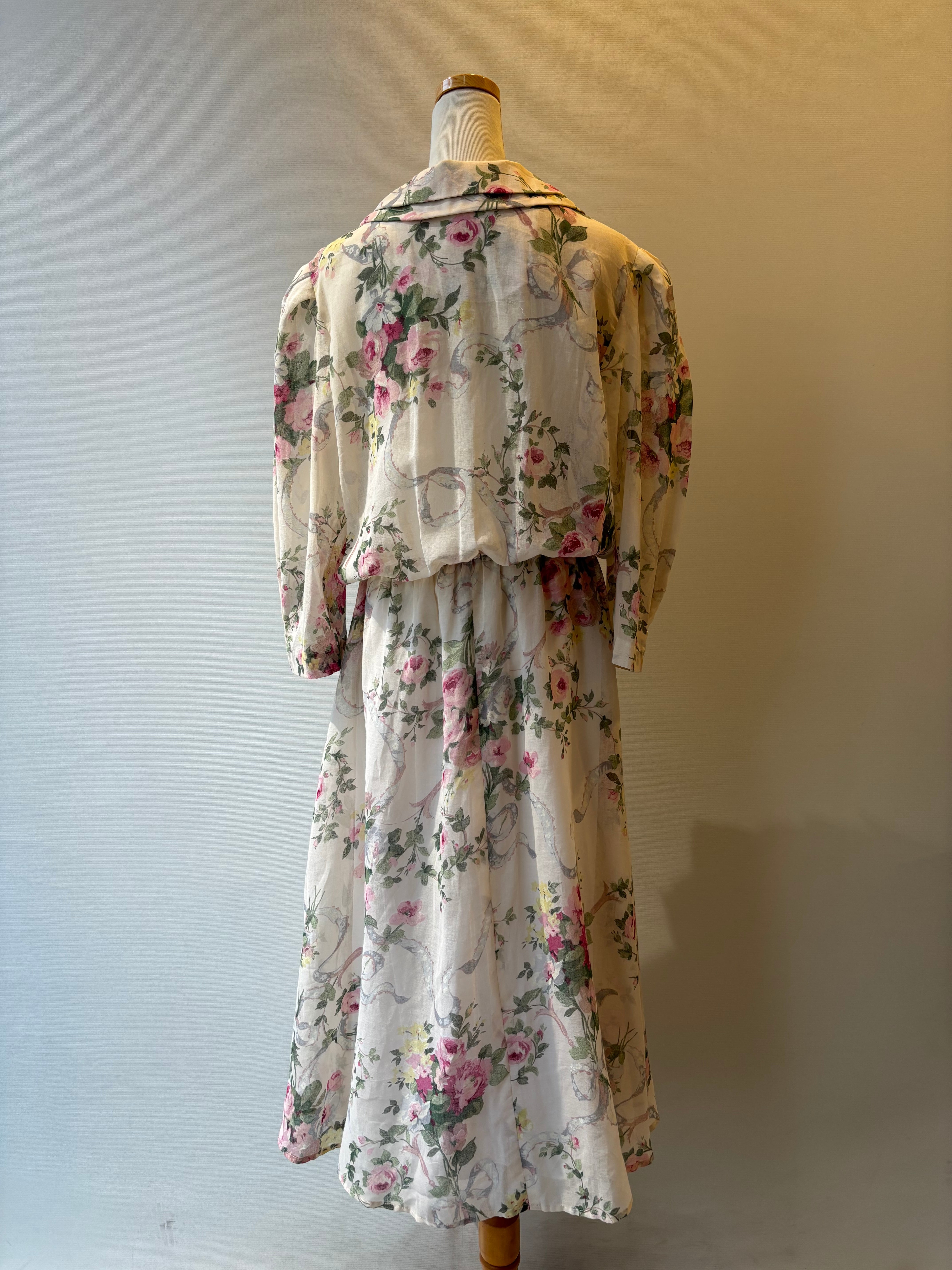 透け感のあるシアー素材にフラワープリントが映えるドレス。