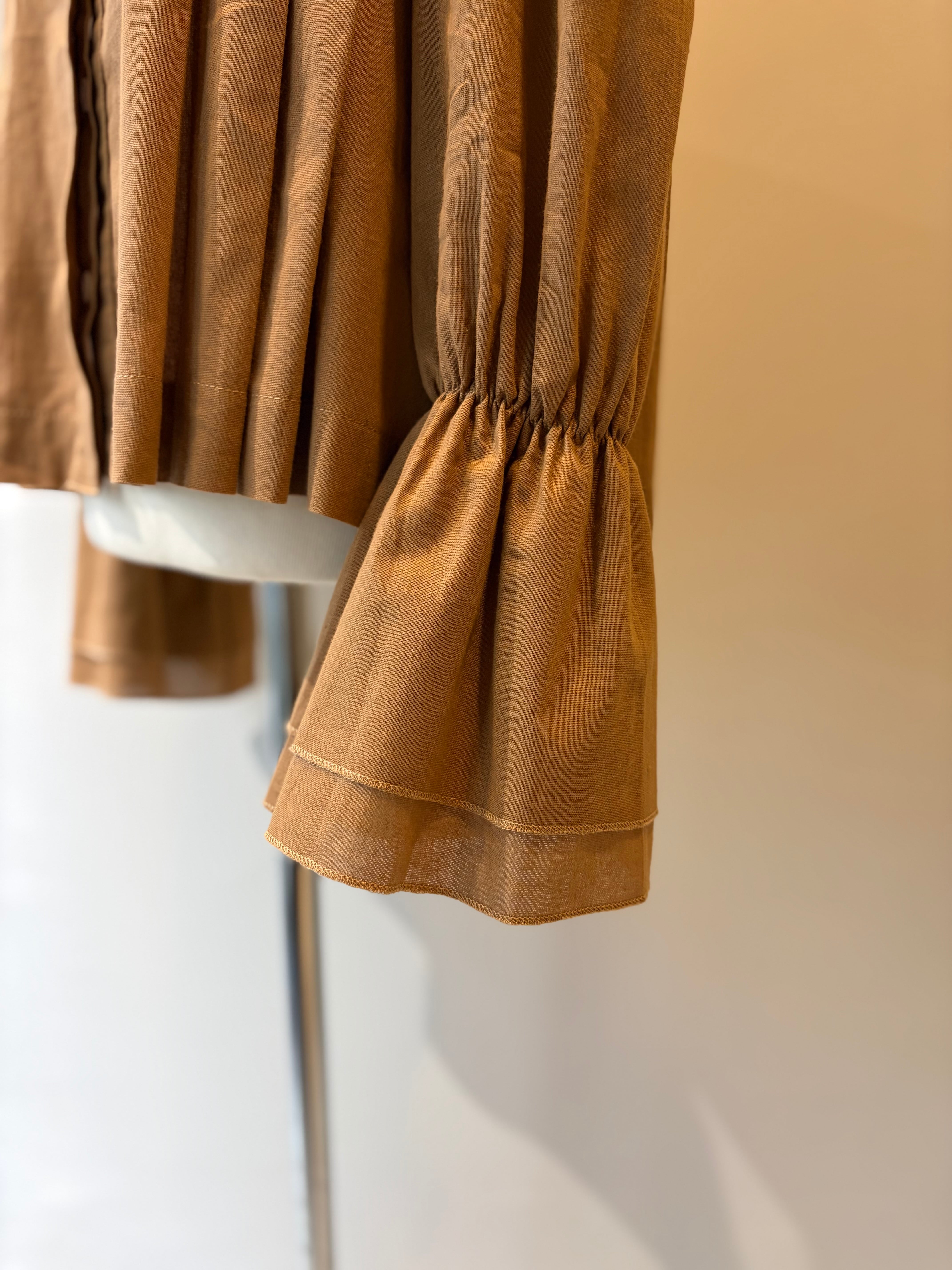 袖部分もフレアシルエットで愛らしいディテールながらも、大人っぽいワンカラー。