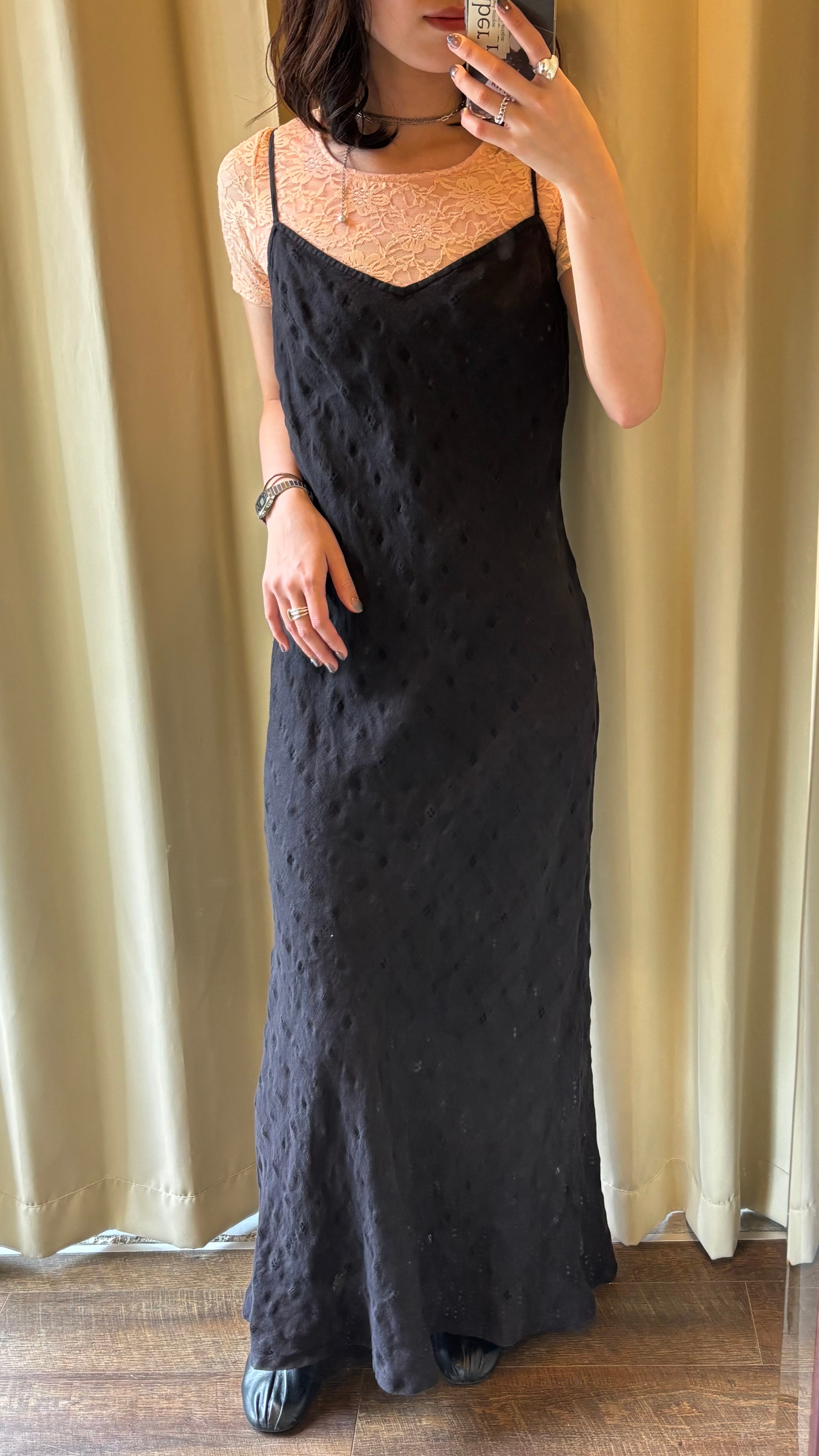 90s natural textured sheer check camisole dress