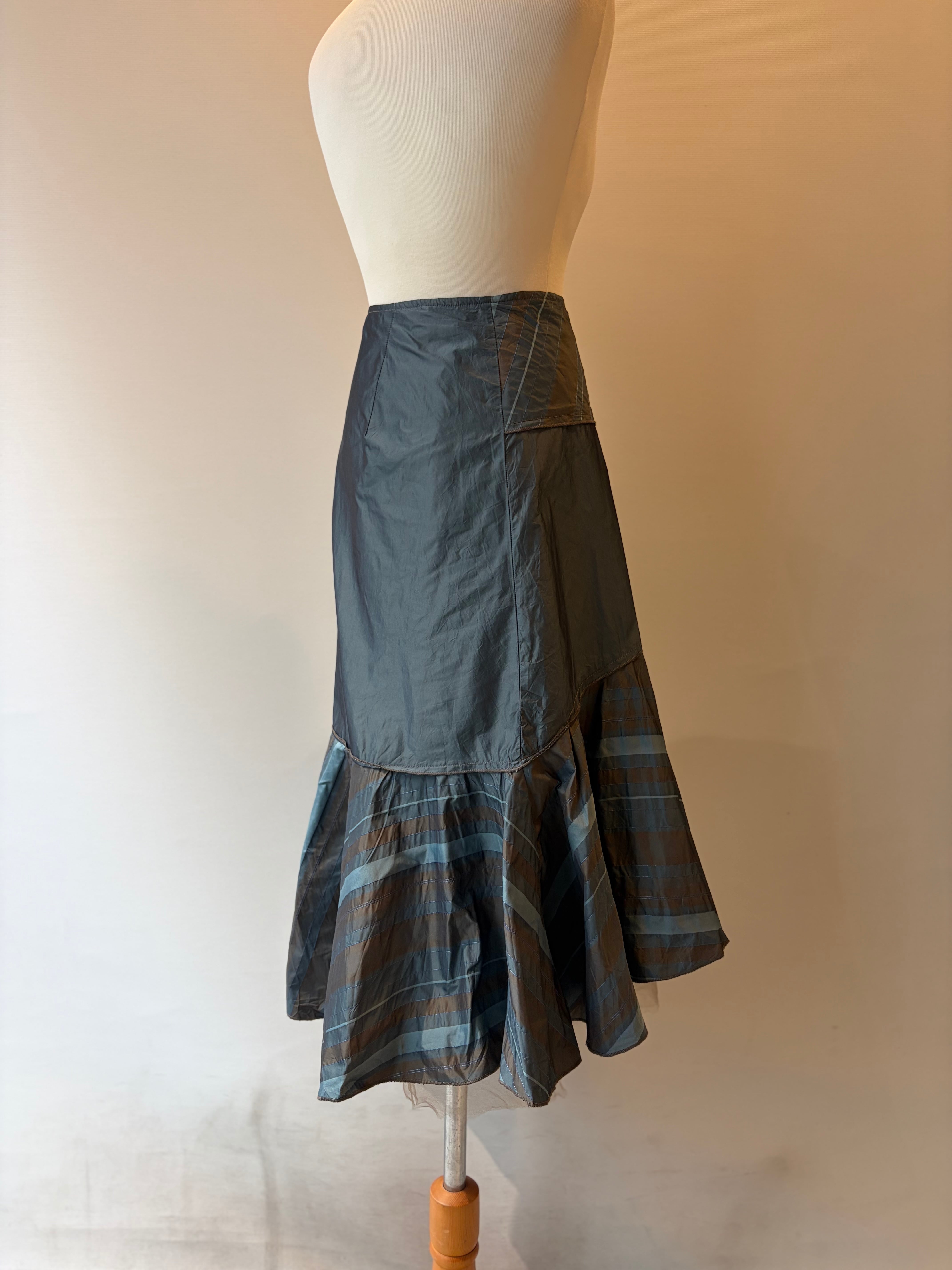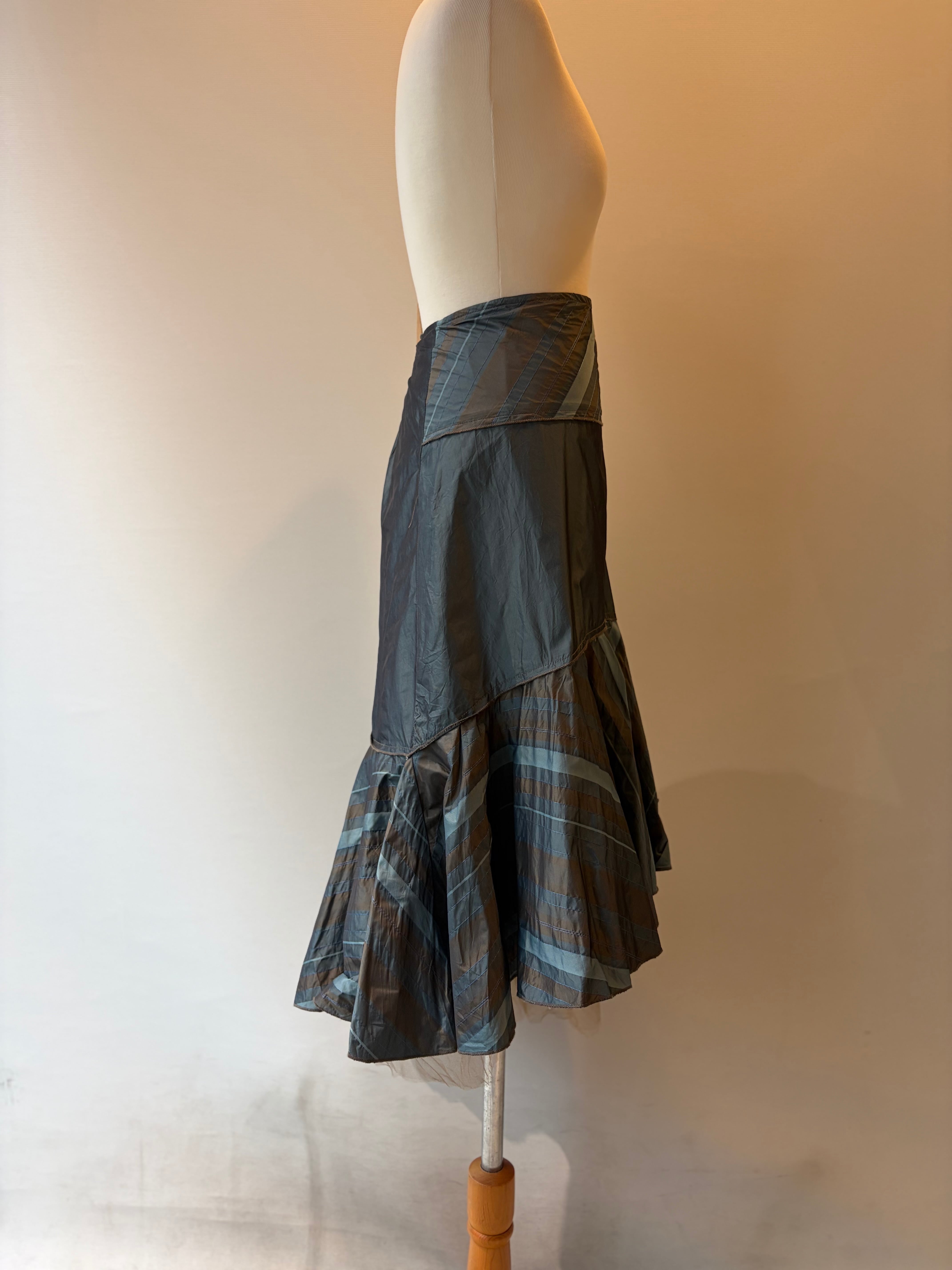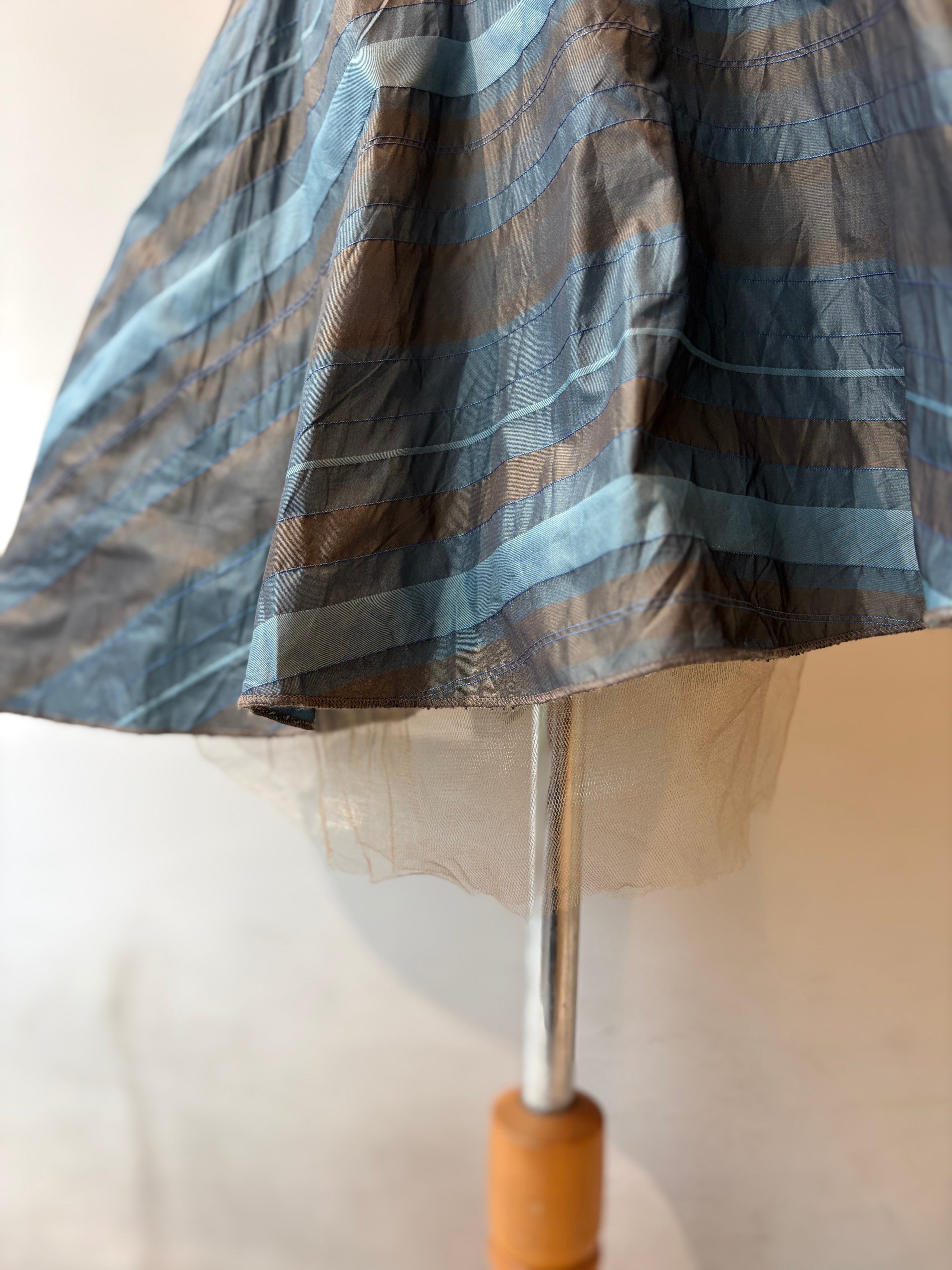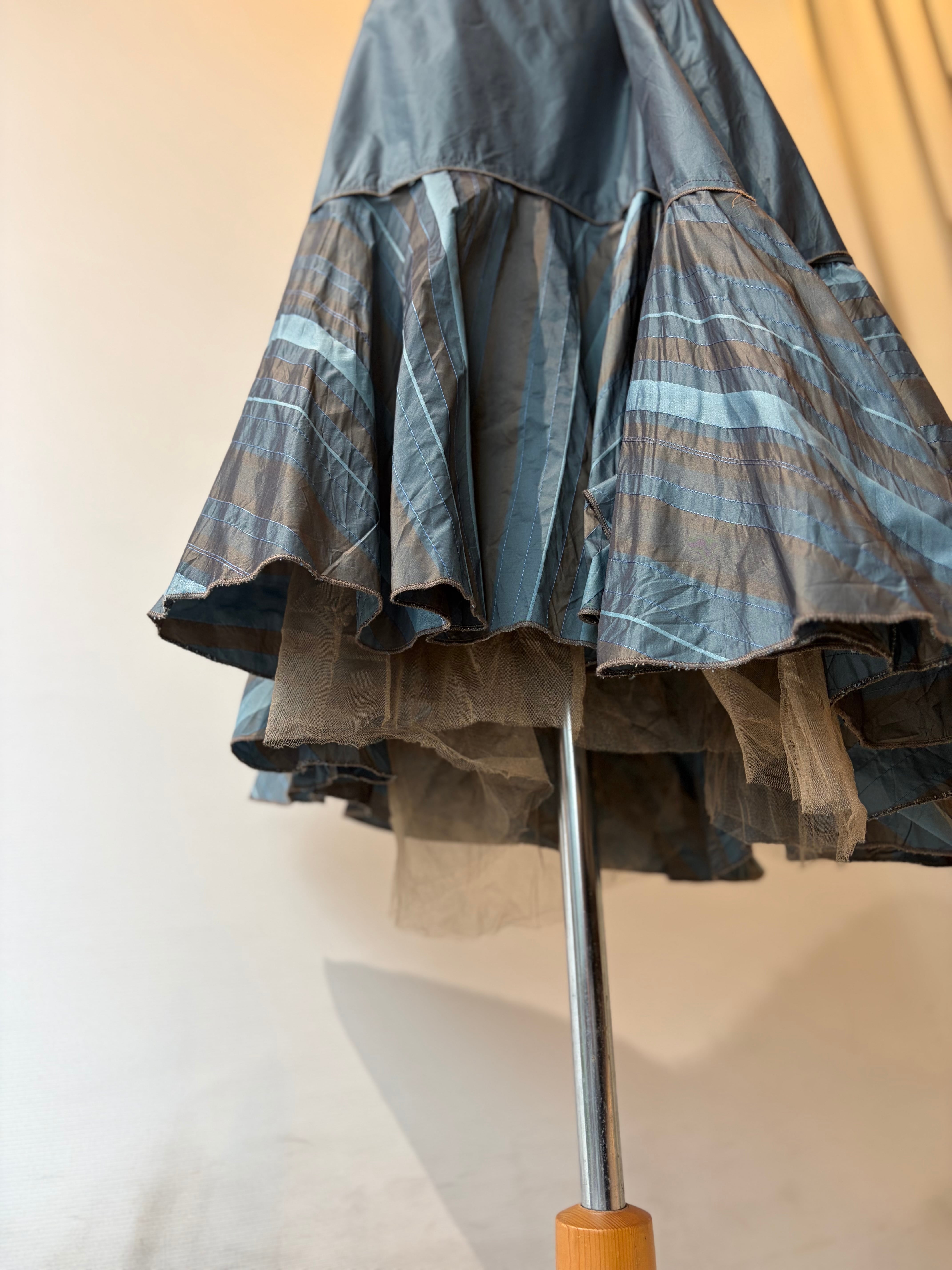 光沢のある素材感で裏地にはチュール素材でボリュームを出したスカート。