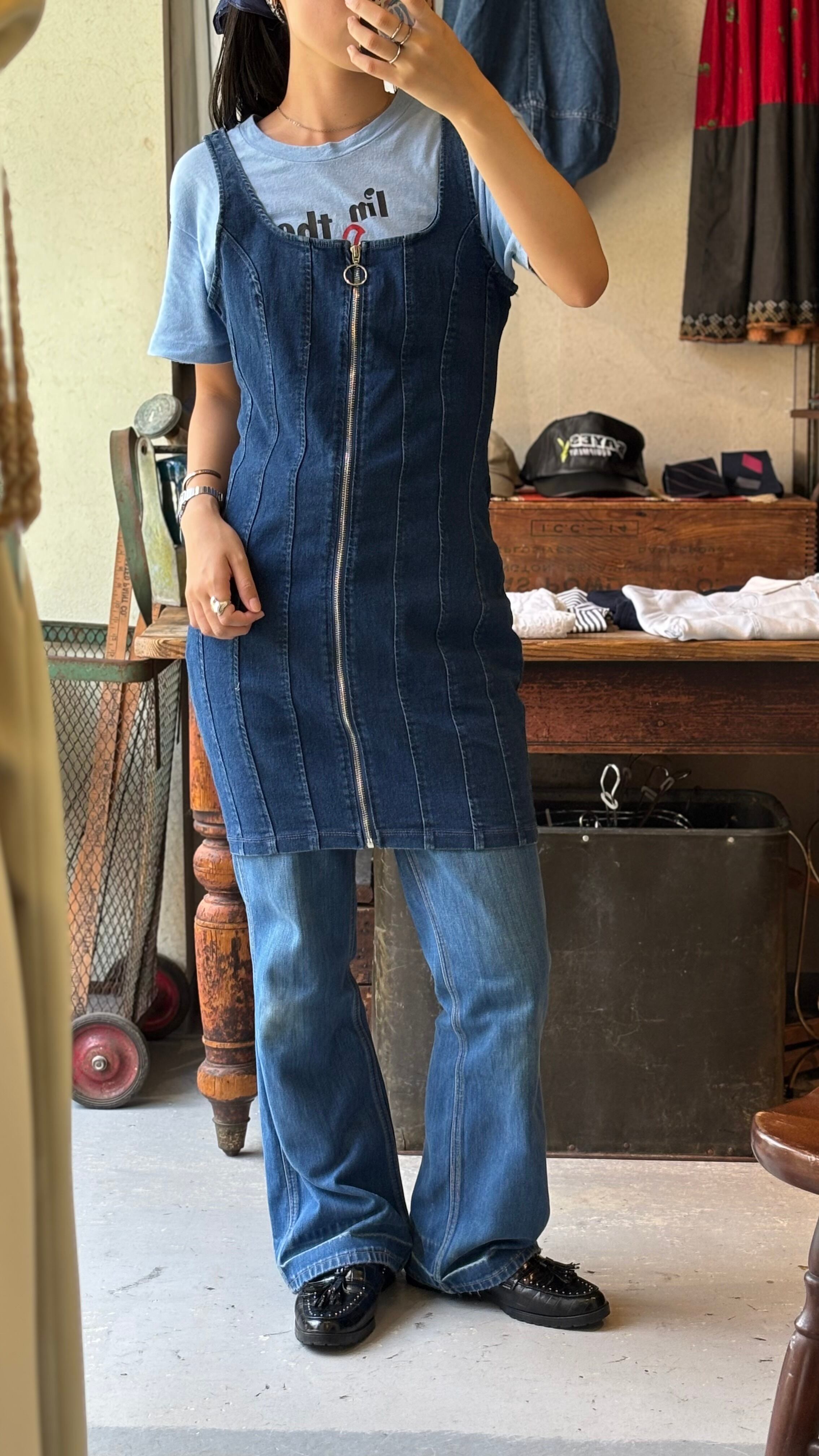 ファスナーが全部開くタイプのデニムワンピース。